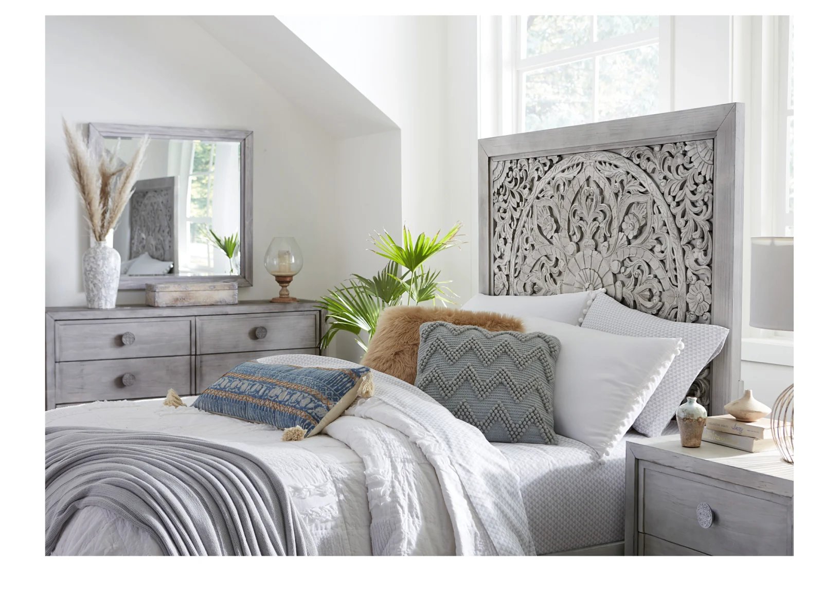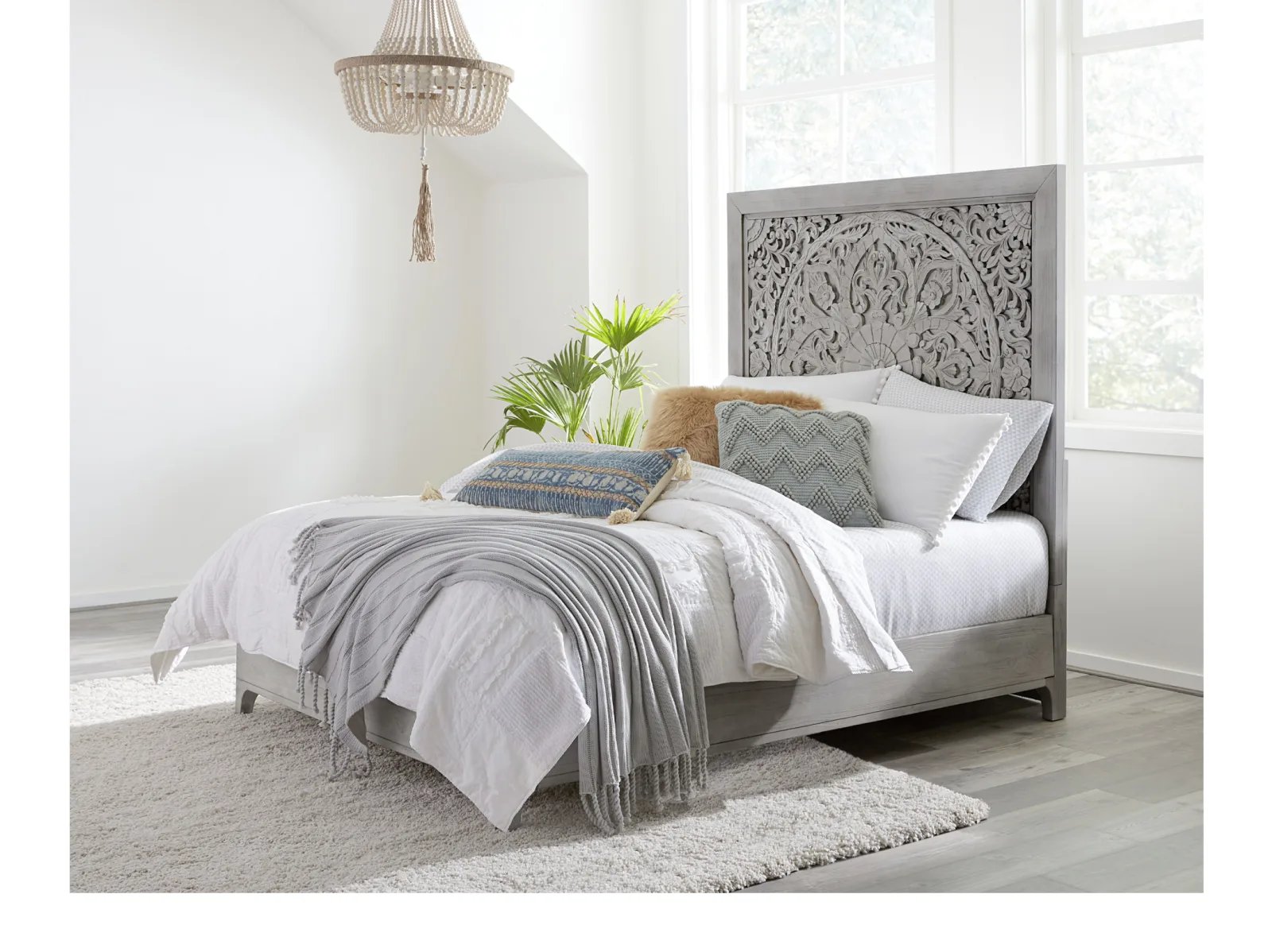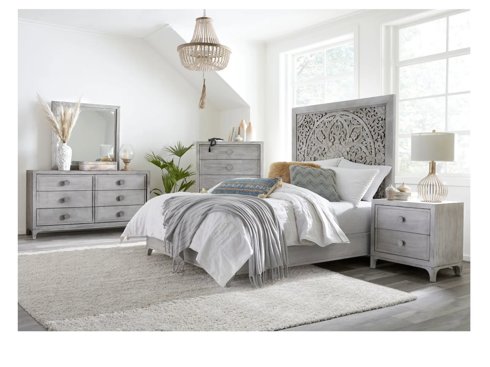 & Free ShippingAdd a Bohemian style to your bedroom with the globally inspired Bohemia collection. The high headboard and gentleman’s chest are intricately carved with a mandala pattern, a spiritual symbol that is said to establish a sacred space. Crisp edges, delicately curved feet and carved drawer pulls complete the look.