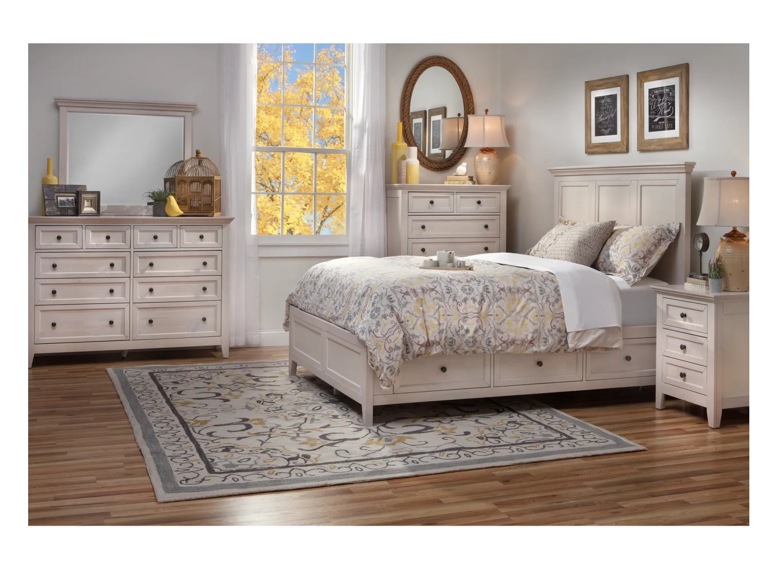 & Free ShippingFor a classic collection that will never go out of fashion, bring home the Bonn Storage Bedroom Set. With clean lines, Shaker styling, and wooden tops arranged in a butcher-block pattern with a whitewashed finish, this timeless furniture brings simple elegance to any space. Framed drawer fronts, a paneled headboard and footboard, and underbed storage give this bedroom set a unique edge that sets it apart from the rest. This group is available as a three-piece set featuring the Bonn Storage Bed and two Bonn Nightstands, or as a four-piece set featuring the Bonn Storage Bed, Bonn Dresser, Bonn Mirror, and Bonn Nightstand. The bed is available in queen and king sizes.