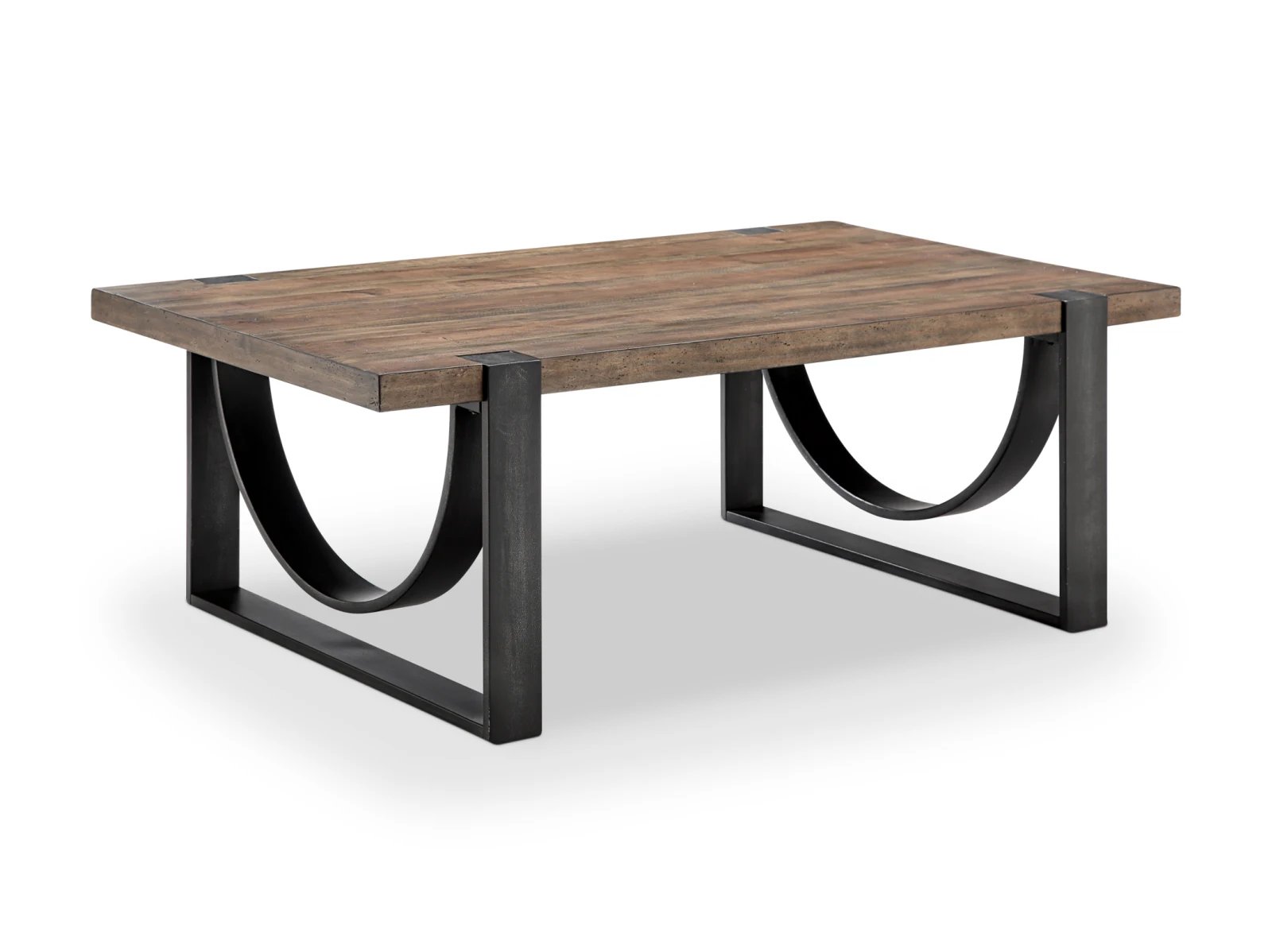 & Free ShippingWith echoes of equestrian inspired fashion, Brazen extends rustic hospitality with upscale appeal. Distressed iron has been artfully forged into a stirrup like 'U' shape and rests inside squared bases to uniquely support aged looking Rustic Honey wood tops on the rectangular end table, cocktail table and sofa table. Mirror image interlocking 'U's' create the exceptionally striking round accent table base to complete a great room with that perfect accessory piece.