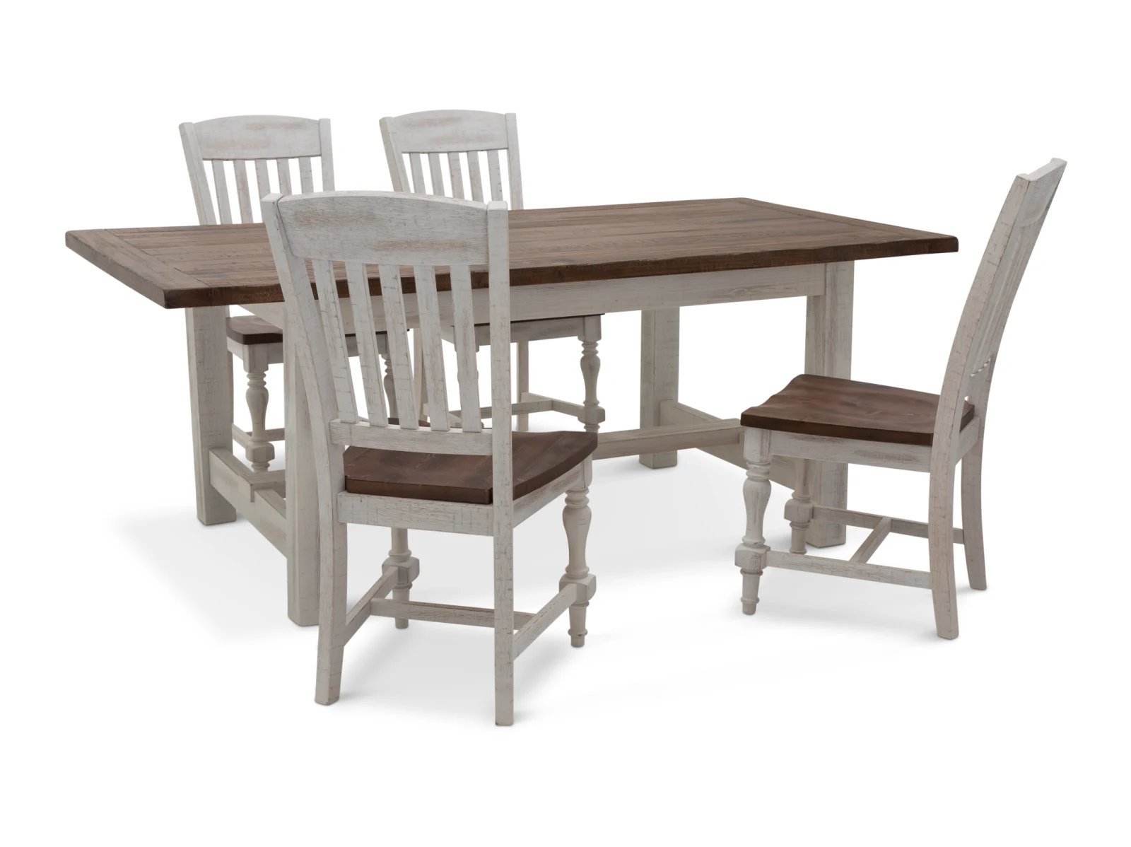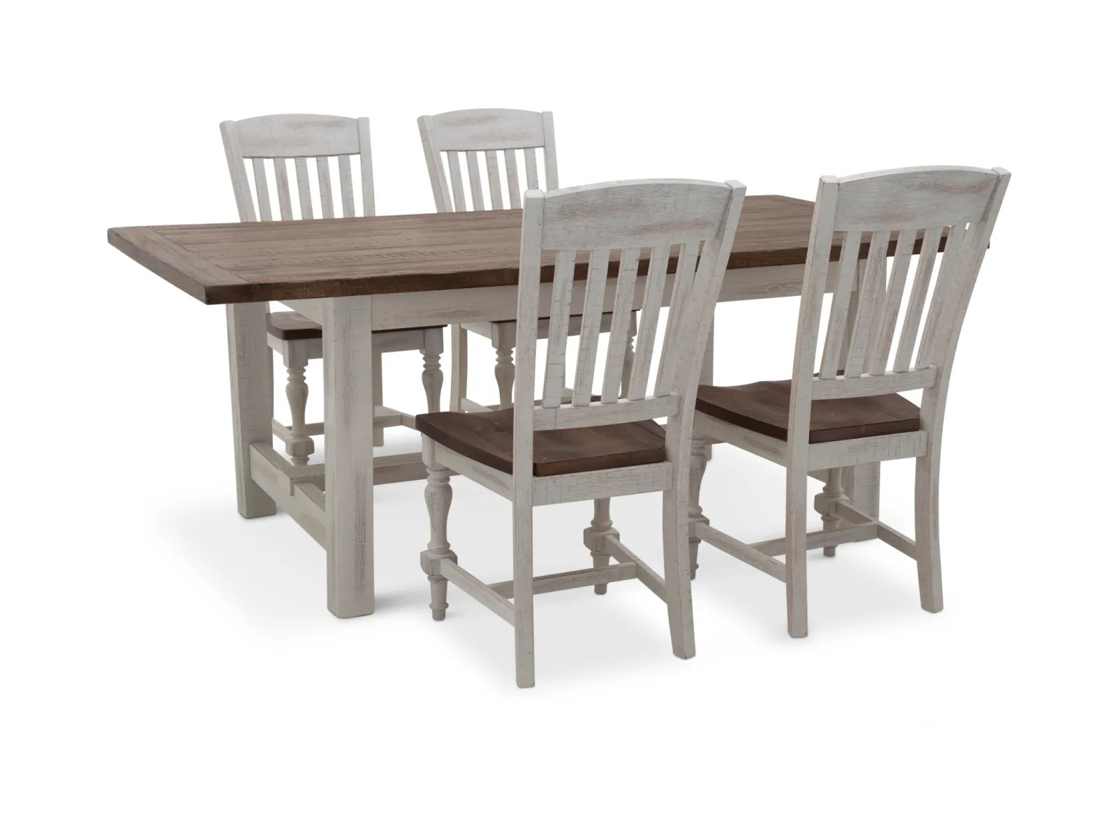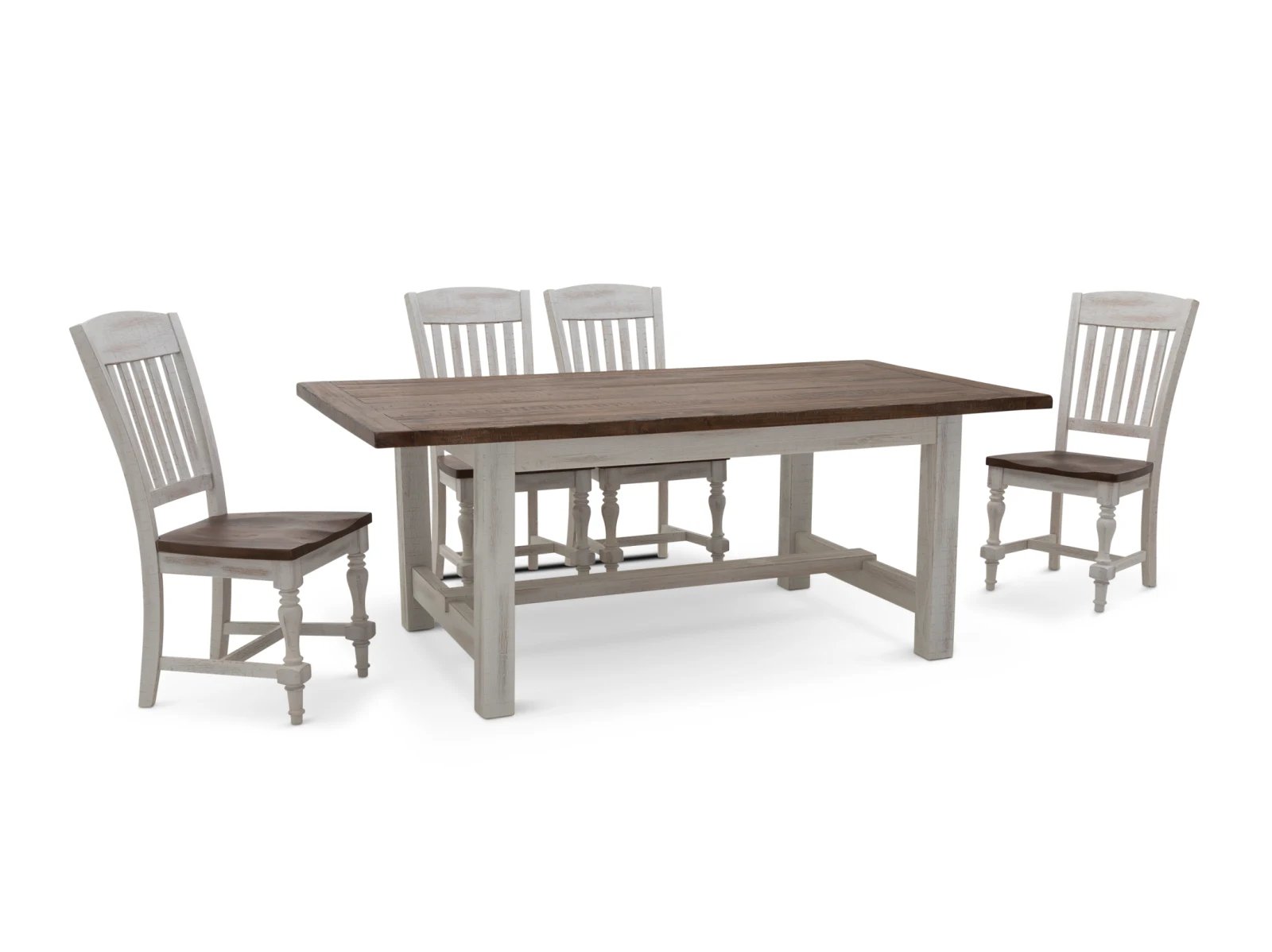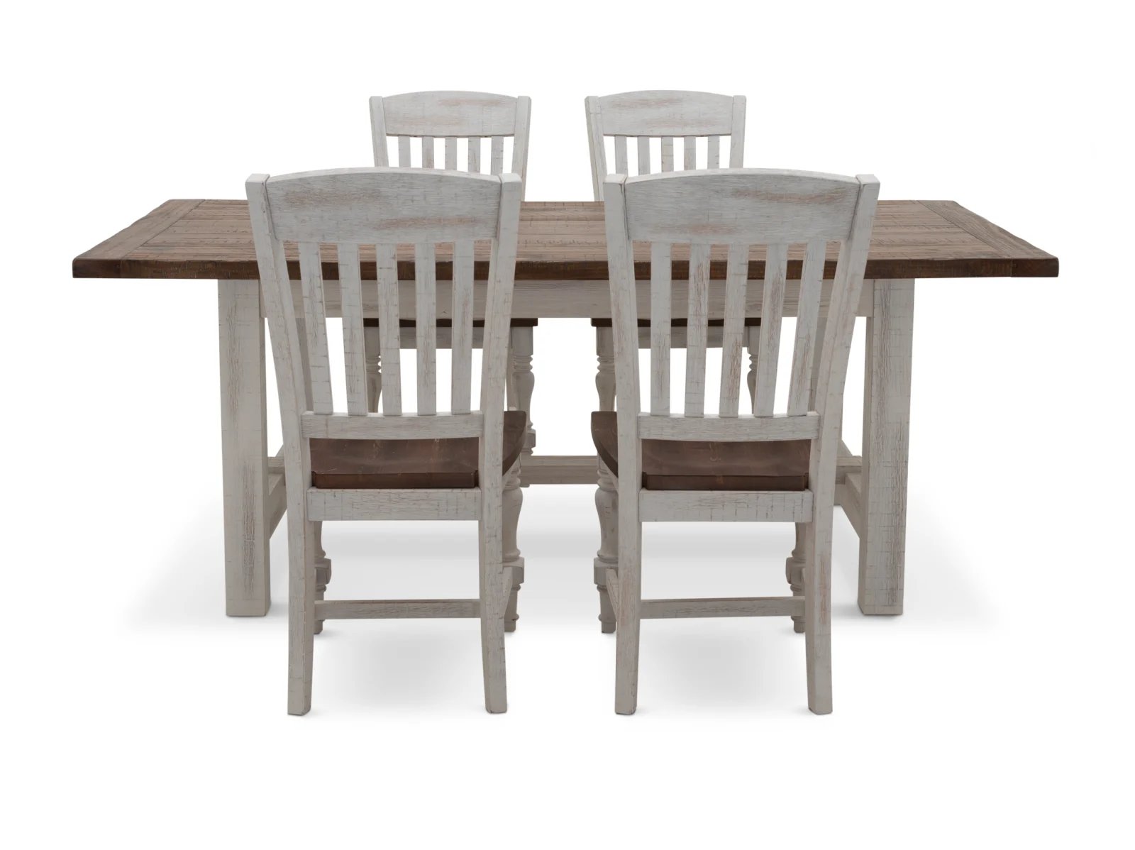 & Free ShippingThe Briar Fork 5 Pc. Dining Set brings together simple classic styling and rustic wooden tones to create a setting that’s both relaxed and refined. This inviting set is crafted from pine solids and pine veneers, and it showcases a distinctive two-toned finish accented with homespun distressed detailing. Rustic without being old-fashioned, the Briar Fork’s rectangular dining table is crafted with clean straight lines while the four dining chairs boast timeless slatted backrests, contoured wooden seats, and artfully turned front legs. Style your dining room with confidence with the Briar Fork 5 Pc. Dining Set.