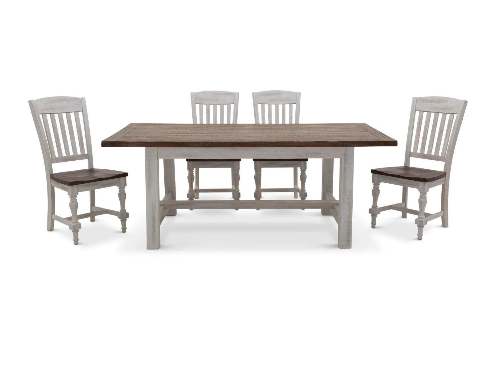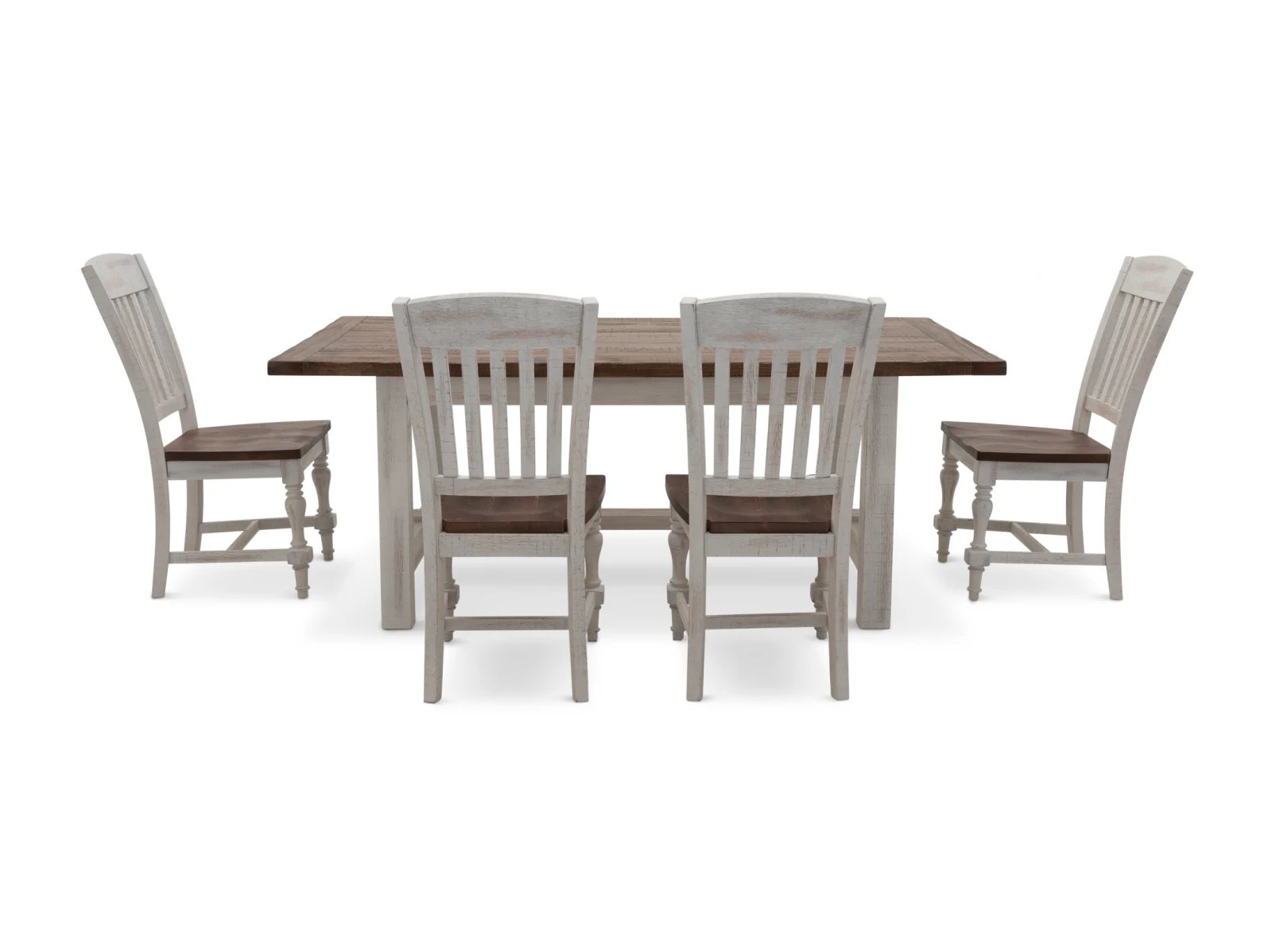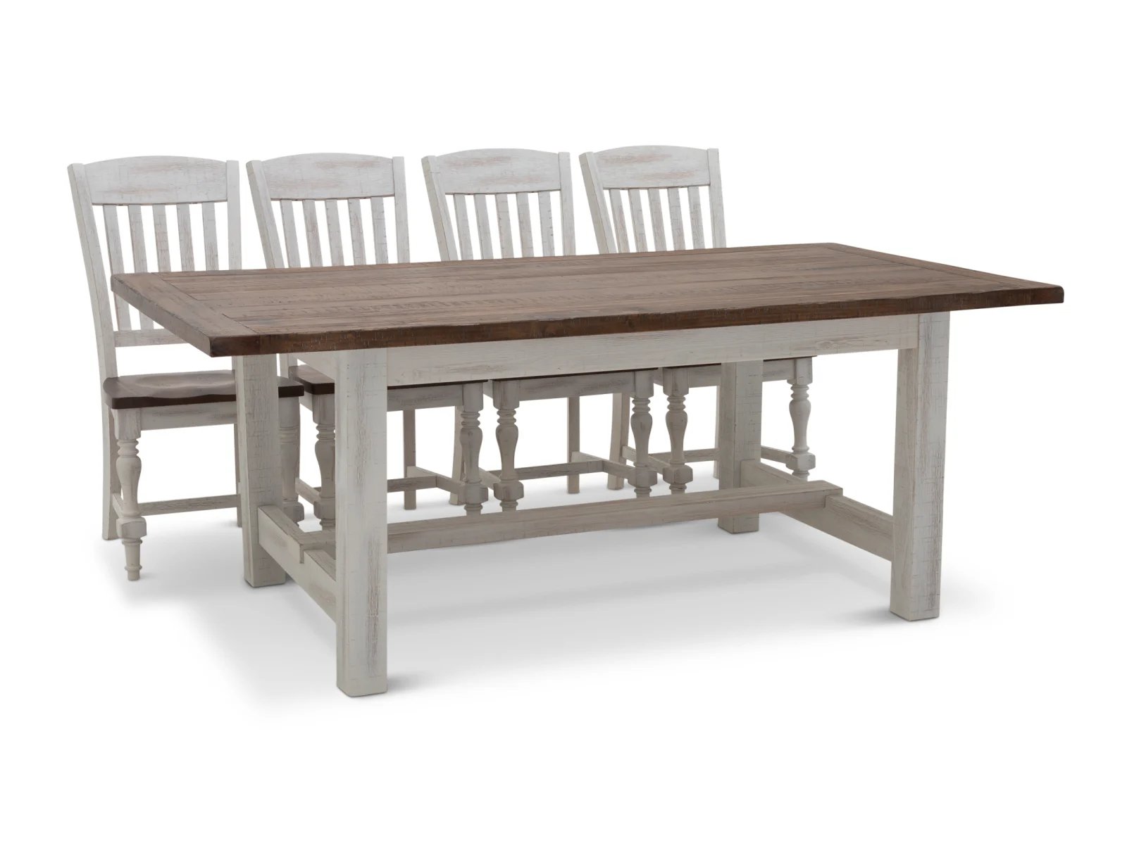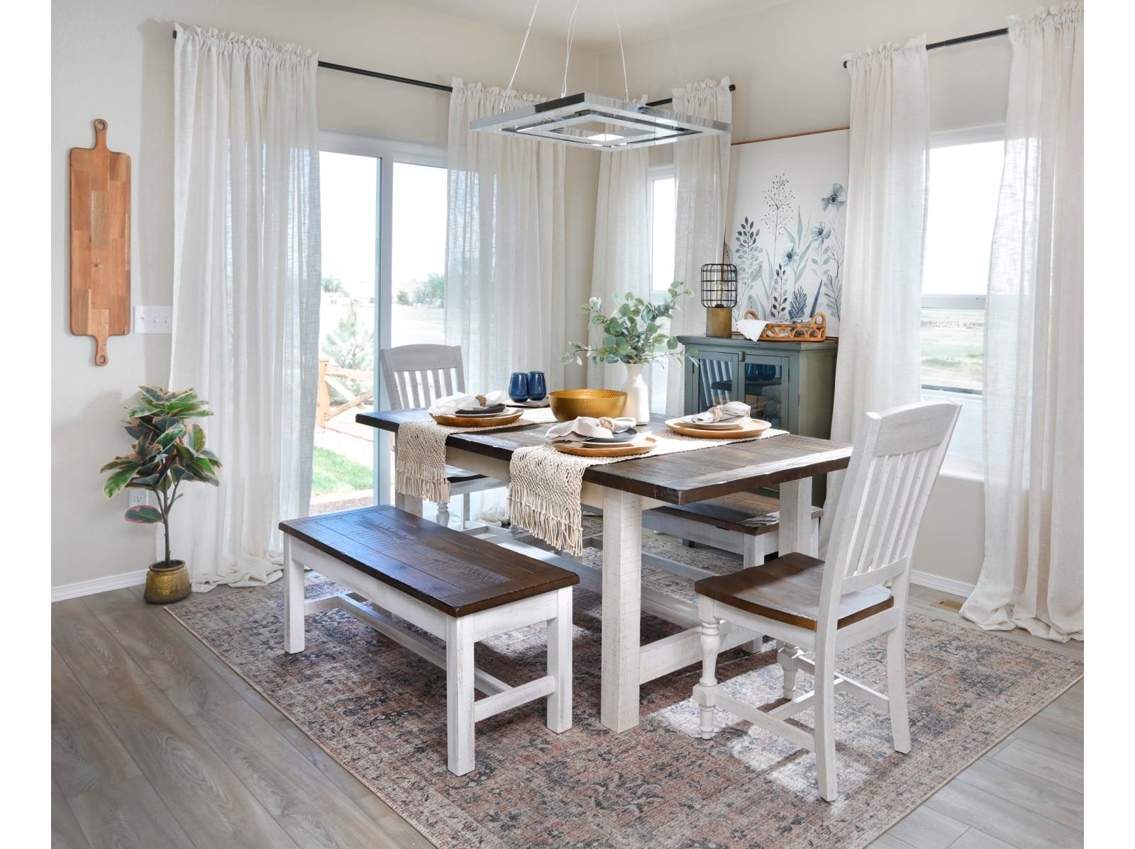 & Free ShippingThe Briar Fork 5 Pc. Dining Set brings together simple classic styling and rustic wooden tones to create a setting that’s both relaxed and refined. This inviting set is crafted from pine solids and pine veneers, and it showcases a distinctive two-toned finish accented with homespun distressed detailing. Rustic without being old-fashioned, the Briar Fork’s rectangular dining table is crafted with clean straight lines while the four dining chairs boast timeless slatted backrests, contoured wooden seats, and artfully turned front legs. Style your dining room with confidence with the Briar Fork 5 Pc. Dining Set.