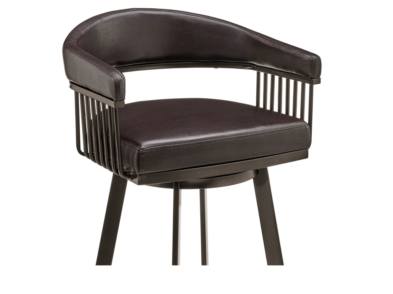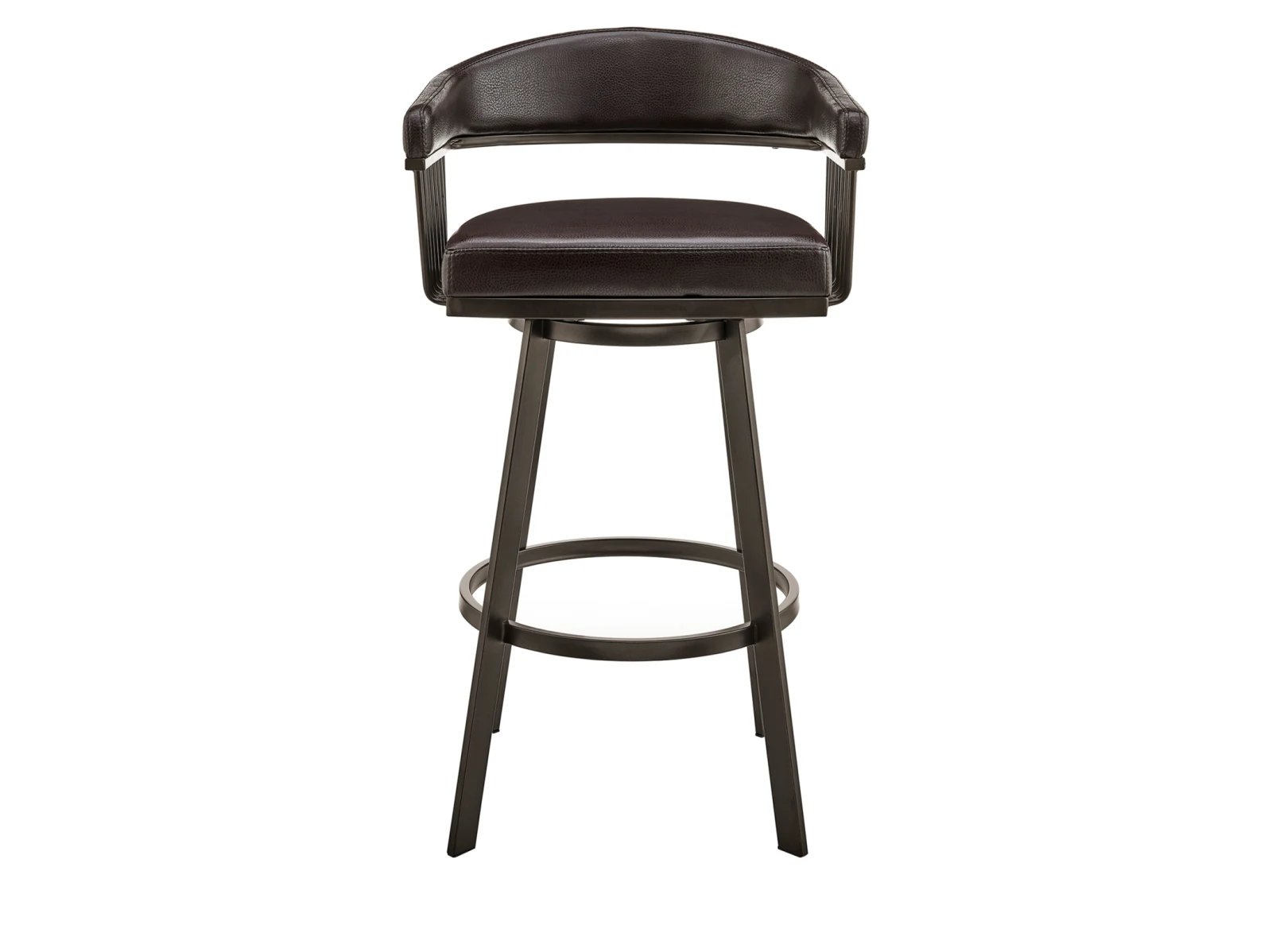 & Free ShippingBring the Briggs Swivel Bar Stool from Armen Living into your beautiful home! It is the best choice to bring in another seating option and does so without compromising on comfortability. The wonderful faux leather and metal accents give the Briggs a look of refinement, making you proud to show it off in your home. The high-density foam-padded seat cushion offers you the most comfort available to you! This curved open-back stool will keep you relaxed while enjoying dinner with your friends and family. The Briggs also features a convenient metal footrest, for additional support and stability as well as 360-swivel capability. The Briggs comes in a variety of color and finishes; black, gray, and white faux leather with brushed stainless-steel finish, black or vintage gray faux leather with black finish, chocolate faux leather and java finish, and white or grey faux leather with silver finish. All color options are available in your choice of 25″ counter height and 29″ bar height, and the Briggs can support up to 250lbs per stool.