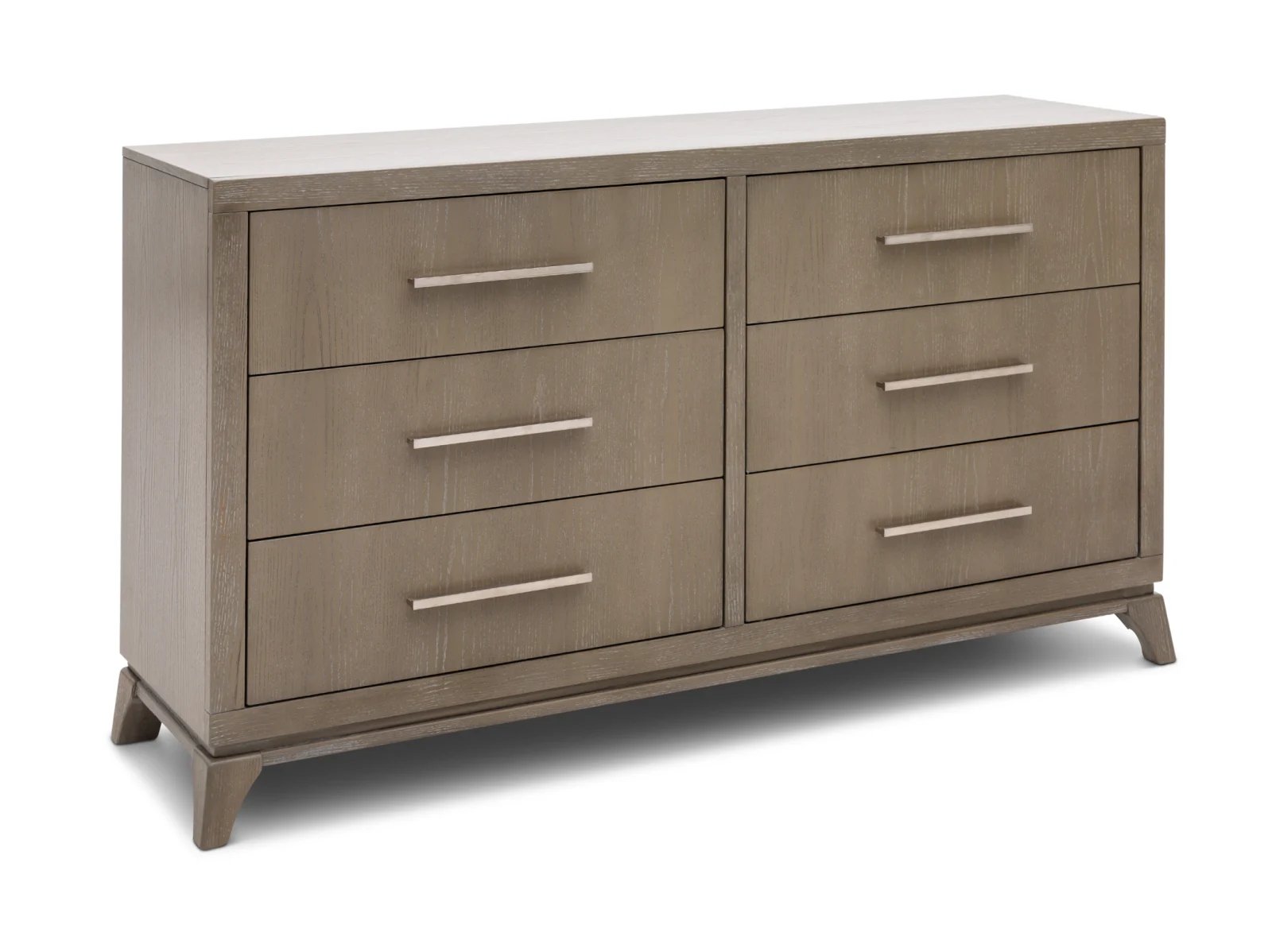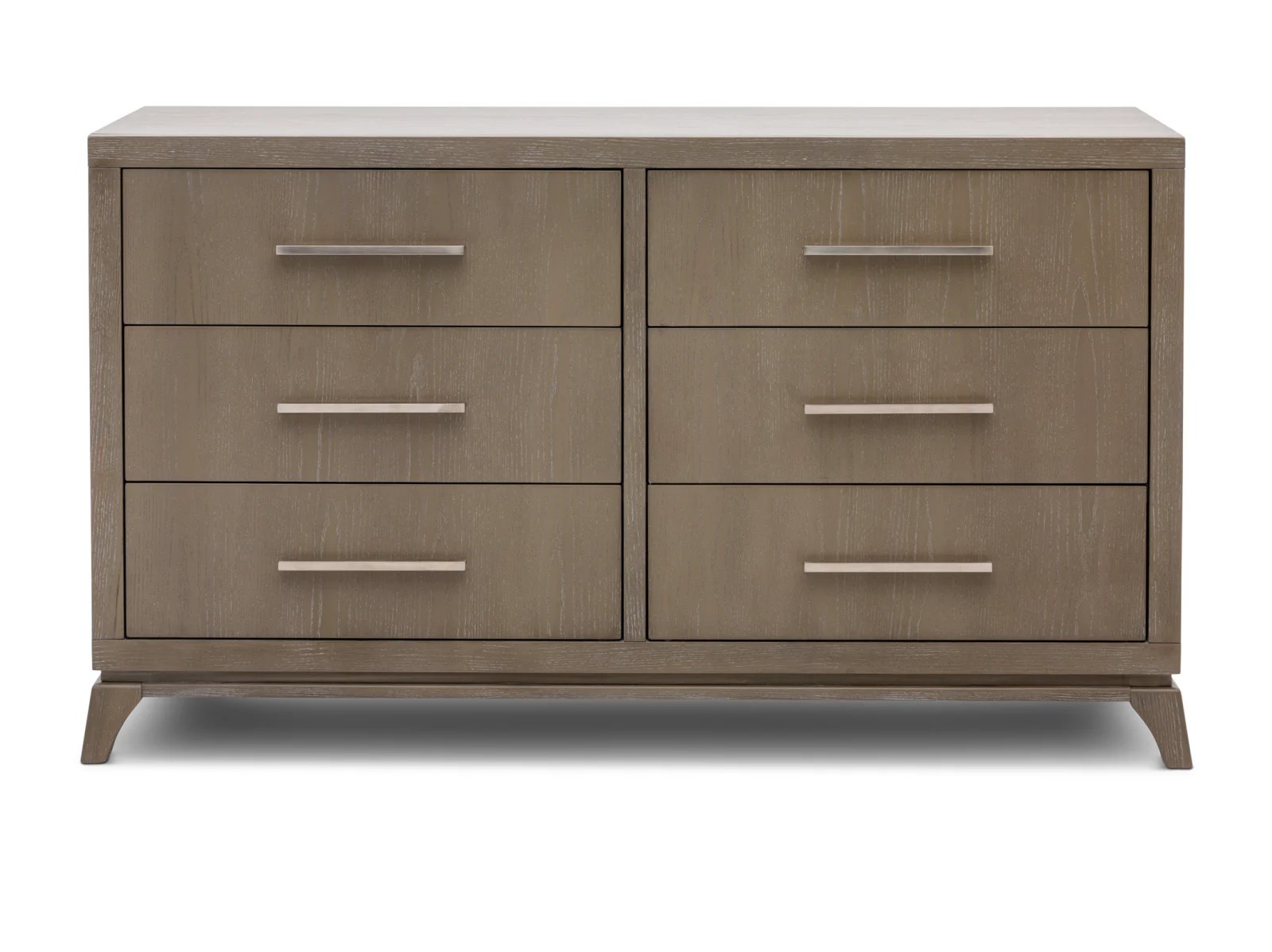 Storage has never looked so stylish with the Brighton Dresser. Built from sturdy oak and birch veneers, this sprawling storage piece showcases a sleek rectangular profile to lend room to its six spacious drawers. These English dovetail drawers are atop metal center glides for a seamless pull mechanism, making bedroom and wardrobe storage effortless. Its casual-contemporary style comes together in a beige-toned, embossed oak finish and complete with brush-nickel pull hardware for a touch of elegance. Give your bedroom some personality with the Brighton Dresser!