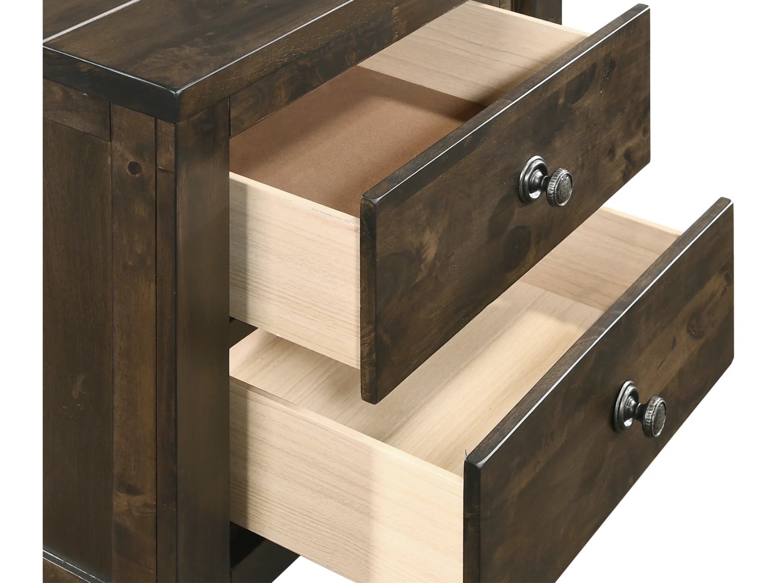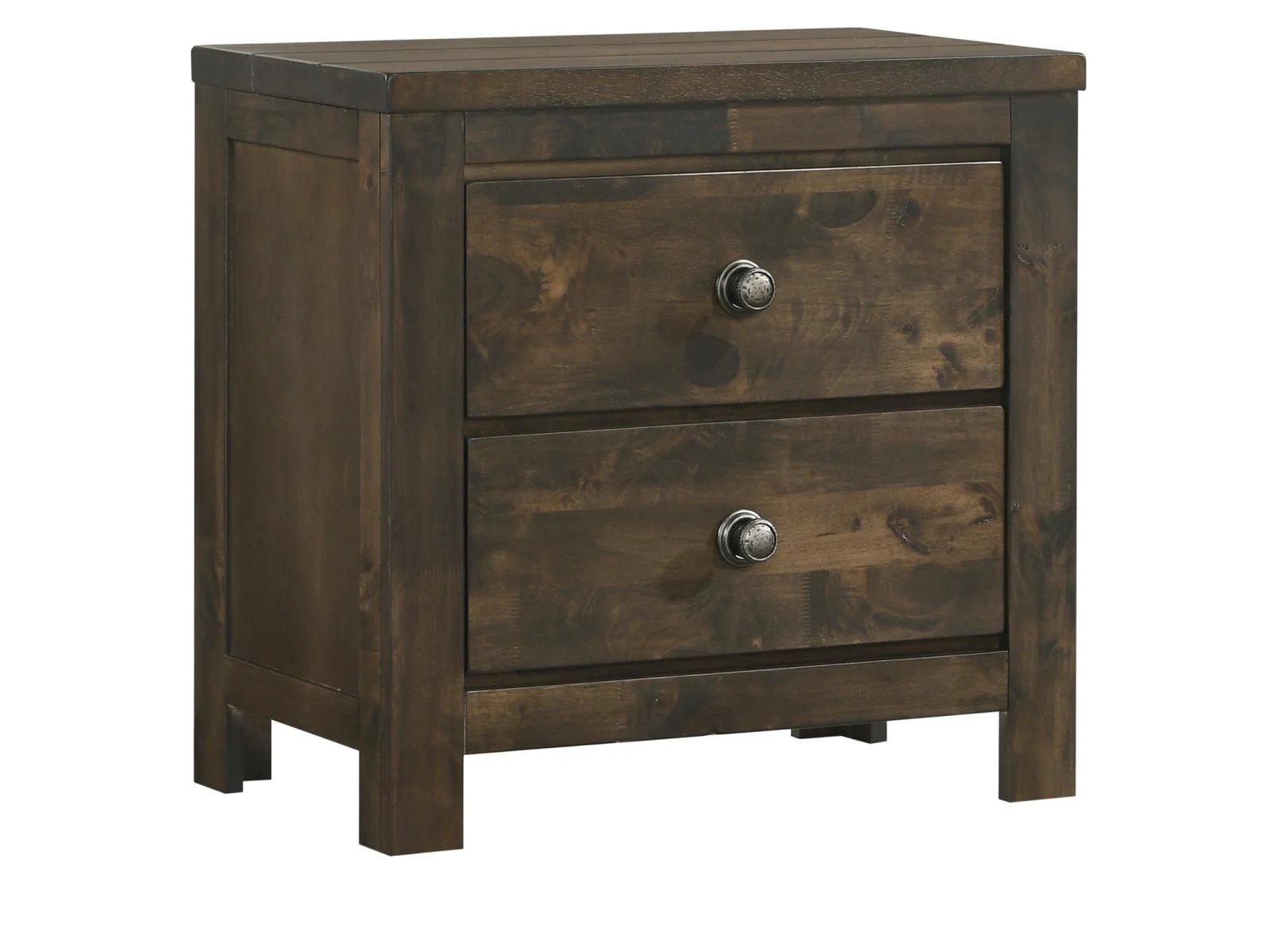 Enjoy the one-of-a-kind comfort of the Buffalo Ridge Sleigh Nightstand. Constructed of reclaimed solid wood, no two pieces are exactly alike, yet all bear the heritage of old, weathered and time tested lumbar that has been reworked into this unique collection. With a rustic brown with gray undertones finish, the nightstand features 2 drawers, with a velvet lining in the top drawer.