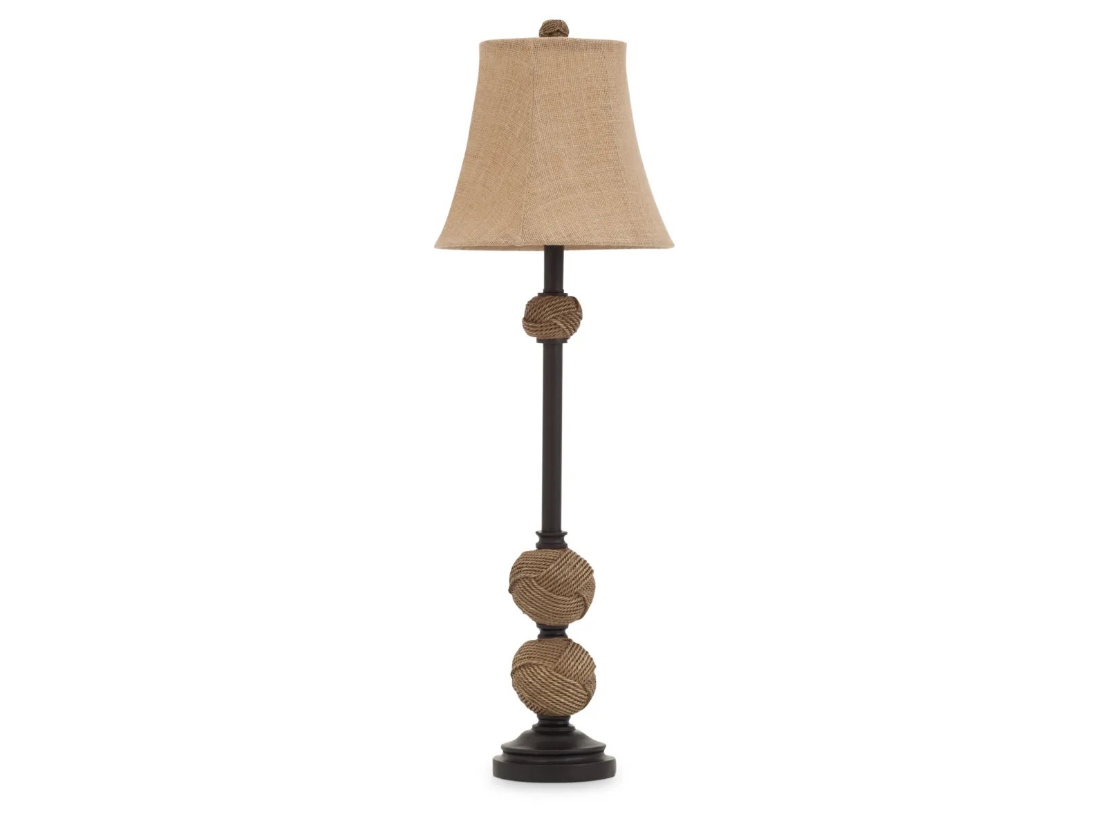& Free ShippingThe Burlap Buffet Table Lamp combines a traditional silhouette with rustic elements for a truly one-of-a-kind look. With an elegantly shaped shade, the carved base features burlap wrapped accents for an elegant, mixed-media design. Place this lamp in your dining room, or in any space needing light and style.