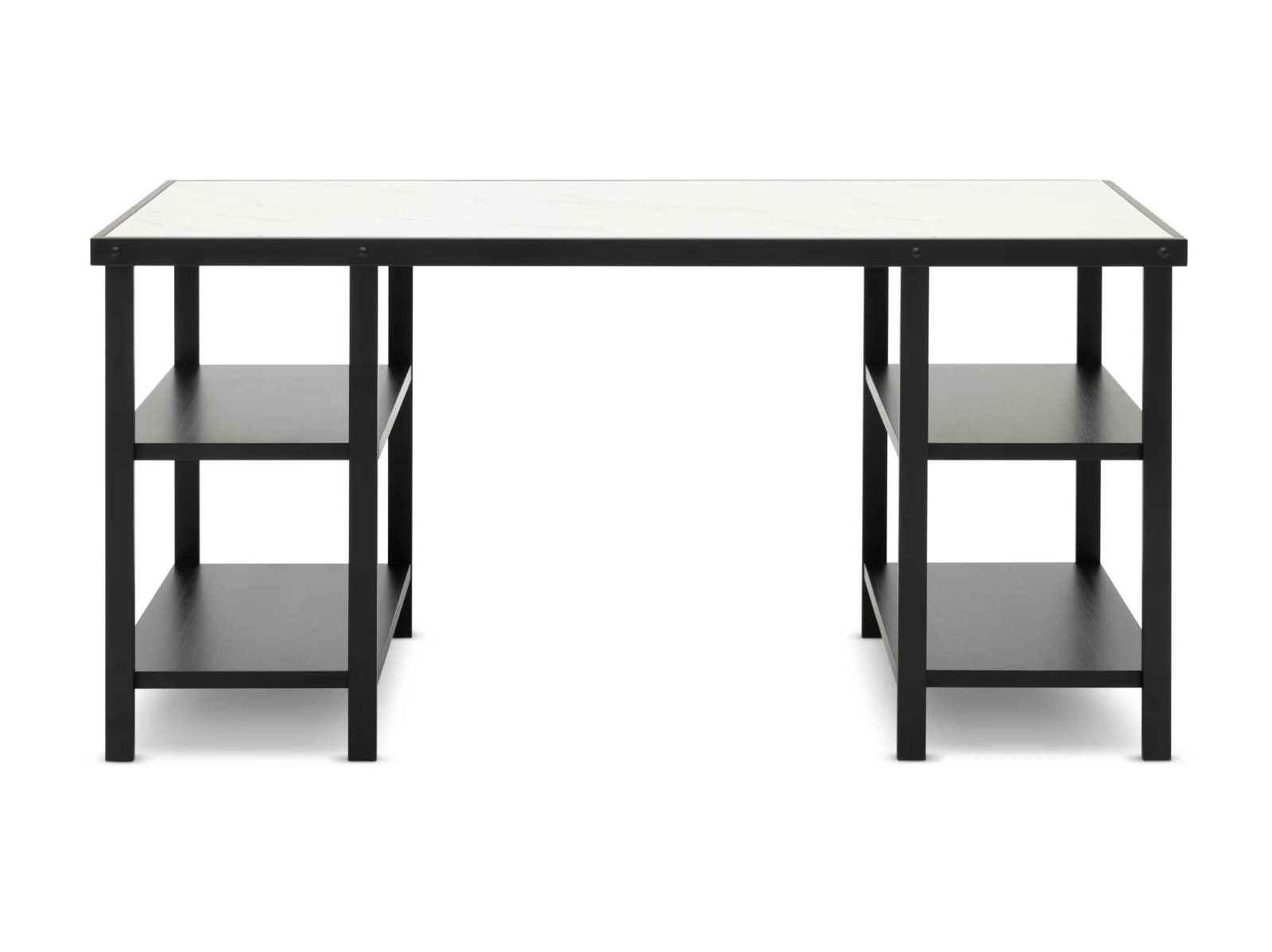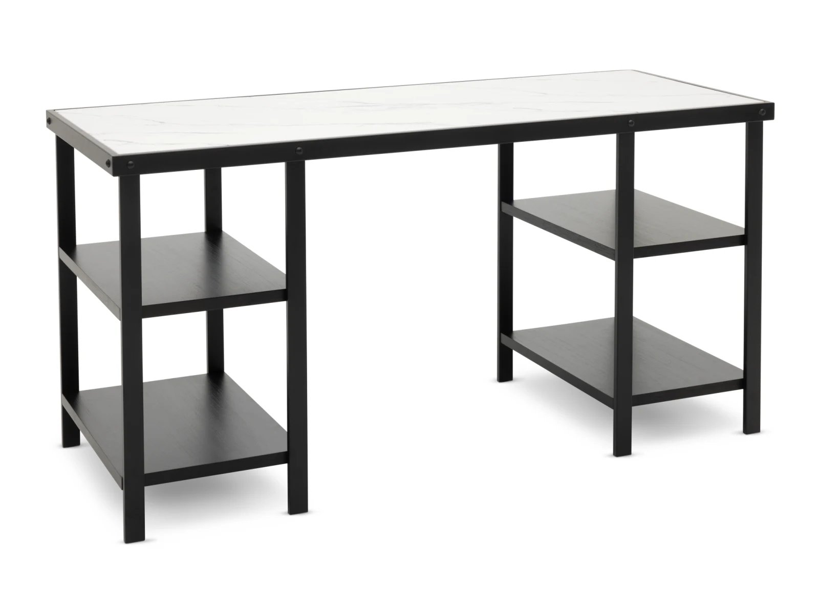 & Free ShippingIntroducing the Burlington Writing Desk—a stylish fusion of rustic charm and contemporary design. Pairing a wood-veneered tabletop with sturdy iron legs, this versatile desk offers both durability and a sophisticated aesthetic. Open shelves on both sides provide convenient storage and easy access to essentials, making it ideal for home offices or creative spaces. With its blend of classic elements and modern flair, the Burlington Writing Desk is as practical as it is eye-catching.