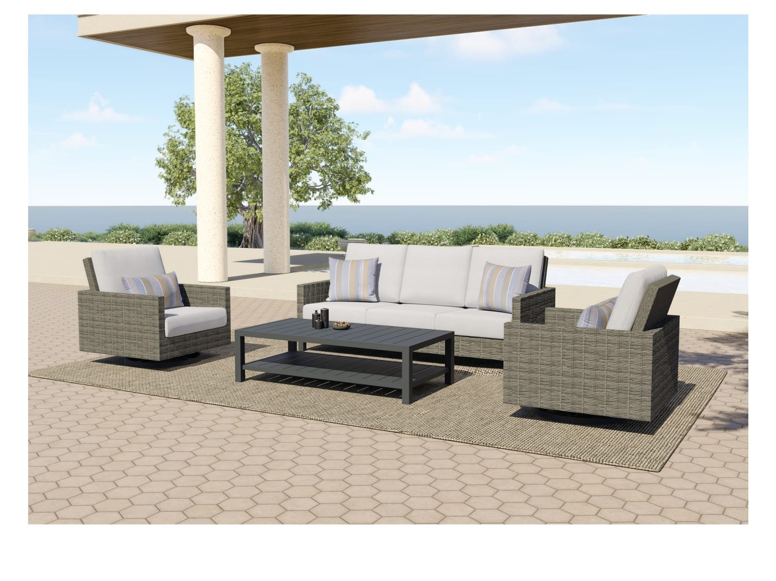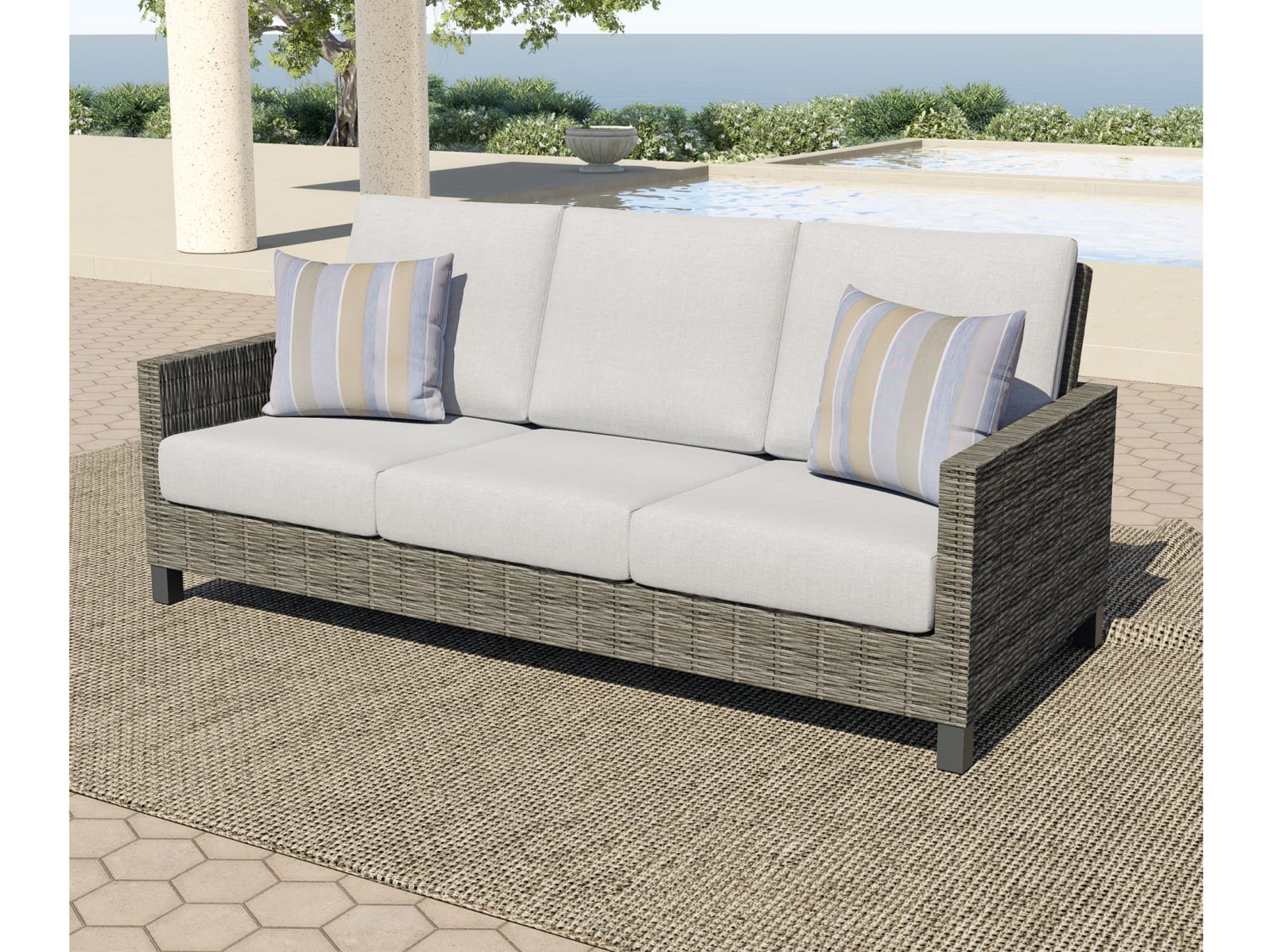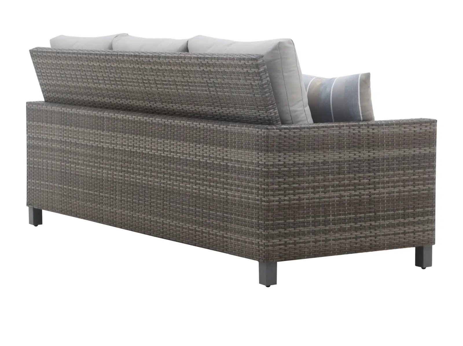 & Free ShippingThe Burnley Sofa with 2 Accent Pillows offers the perfect blend of durability and comfort for your outdoor living space. Built to last, its sturdy aluminum frame is powder-coated for superior scratch resistance, ensuring long-term strength. Wrapped in high-density PE wicker, the eco-friendly synthetic resin is low-maintenance and designed to withstand weather conditions without fading or warping. The fade-resistant Sandura fabric cushions are crafted from 100% solution-dyed polyester, providing moisture and mildew resistance, while retaining their vibrant color season after season. The high-density 12cm foam seat and back cushions deliver exceptional comfort, offering resilient support for relaxation. With its modern design and versatile gray palette, this sofa is a stylish addition to any patio. Enjoy the combination of durability, comfort, and design for a worry-free outdoor lounging experience making it a smart investment for your home.
