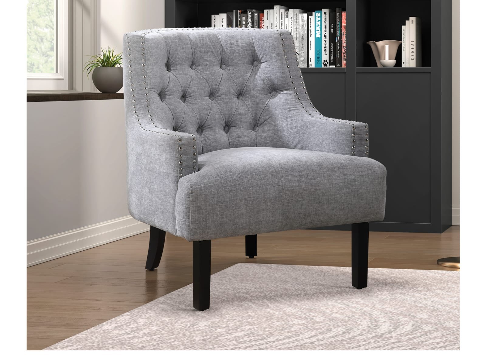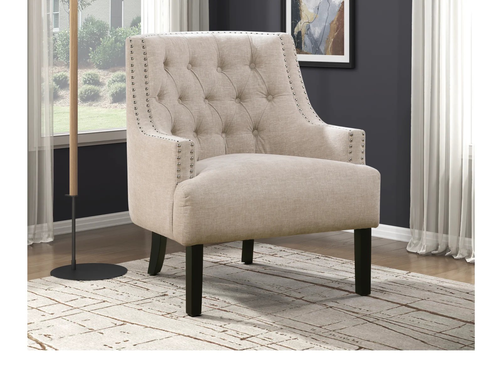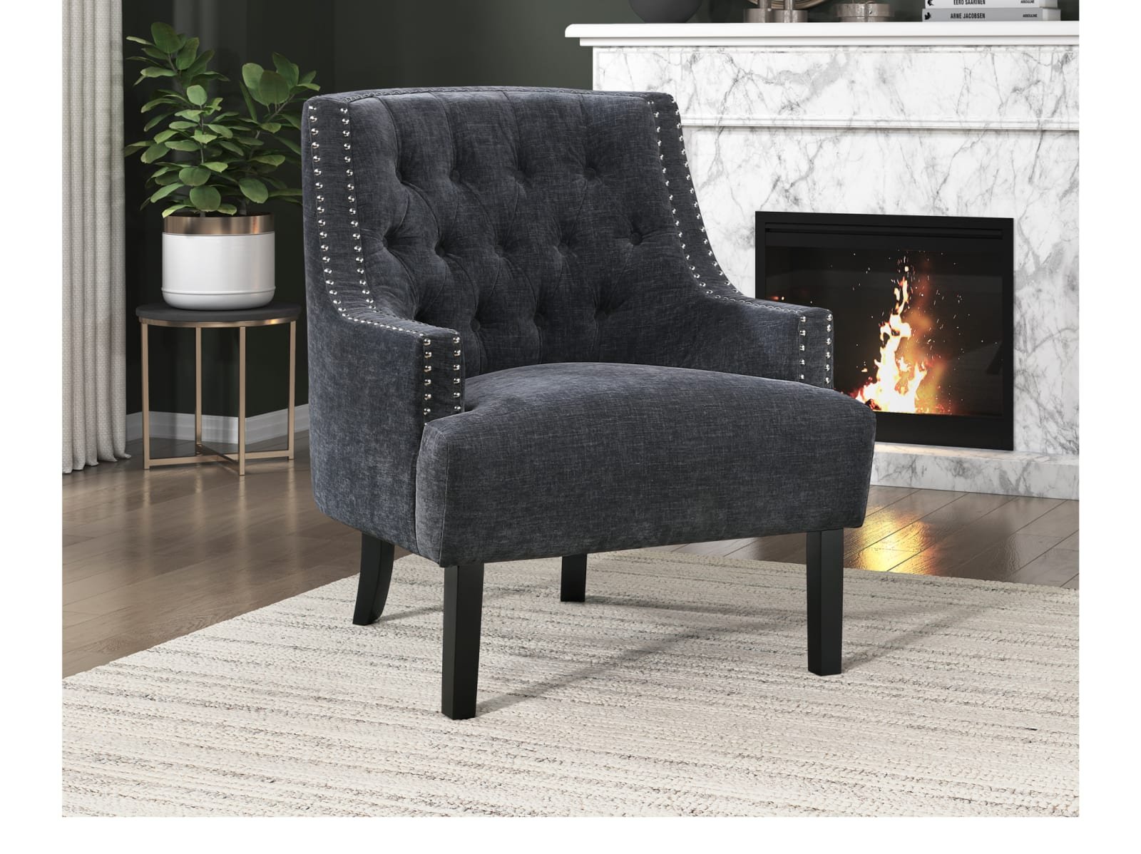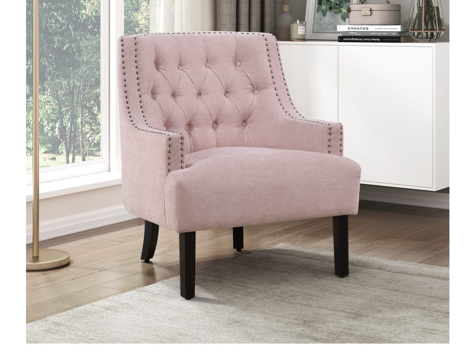 & Free ShippingThe Caitlyn II Accent Chair seamlessly blends modern and traditional design elements to create a sophisticated seating option for your home. Upholstered in luxurious 100% velvet polyester, this chair is accentuated by high-polish nailhead trim, defining its profile with a touch of glamour. The Caitlyn’s button-tufted seat back adds a classic charm, while the espresso-finished wooden legs provide a sturdy foundation. Available in four versatile colors – chocolate, indigo, teal, or taupe – the Caitlyn II Accent Chair allows you to perfectly complement your living room, bedroom, or home office!