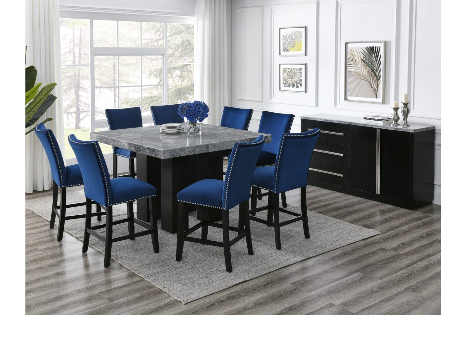 - Constructed with gray marble tops and hardwood solids in an ebony finish