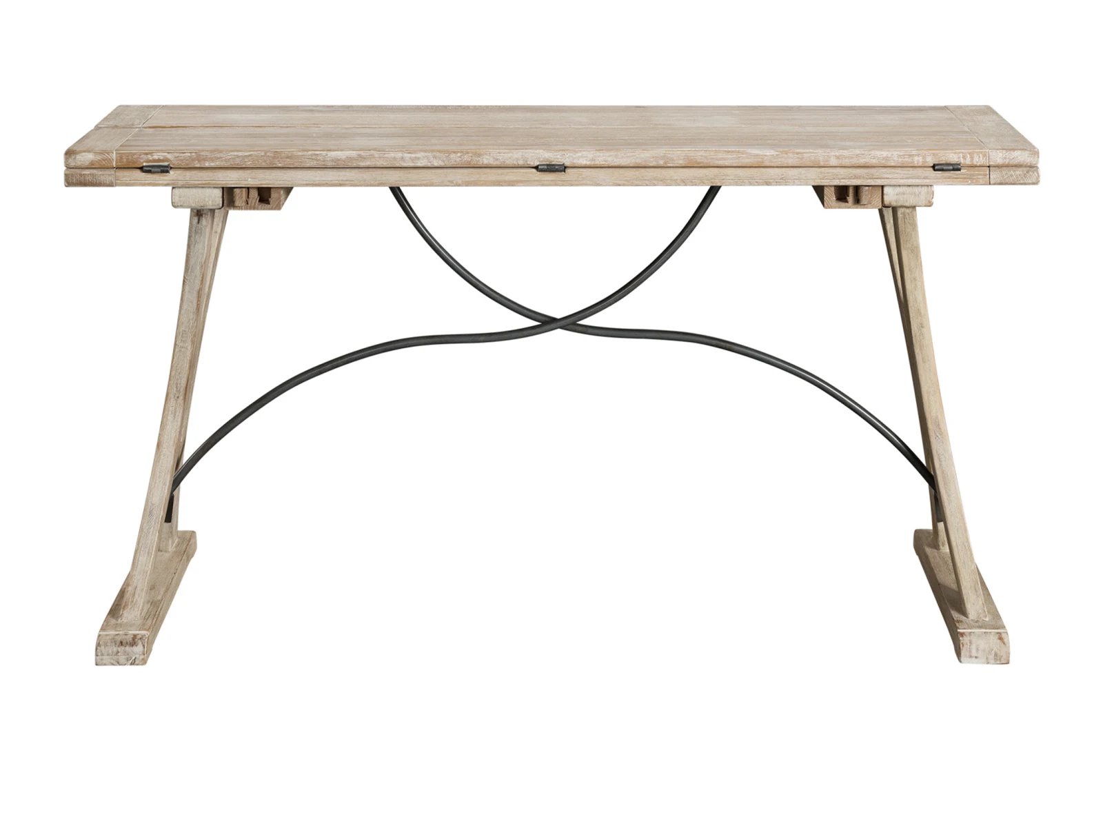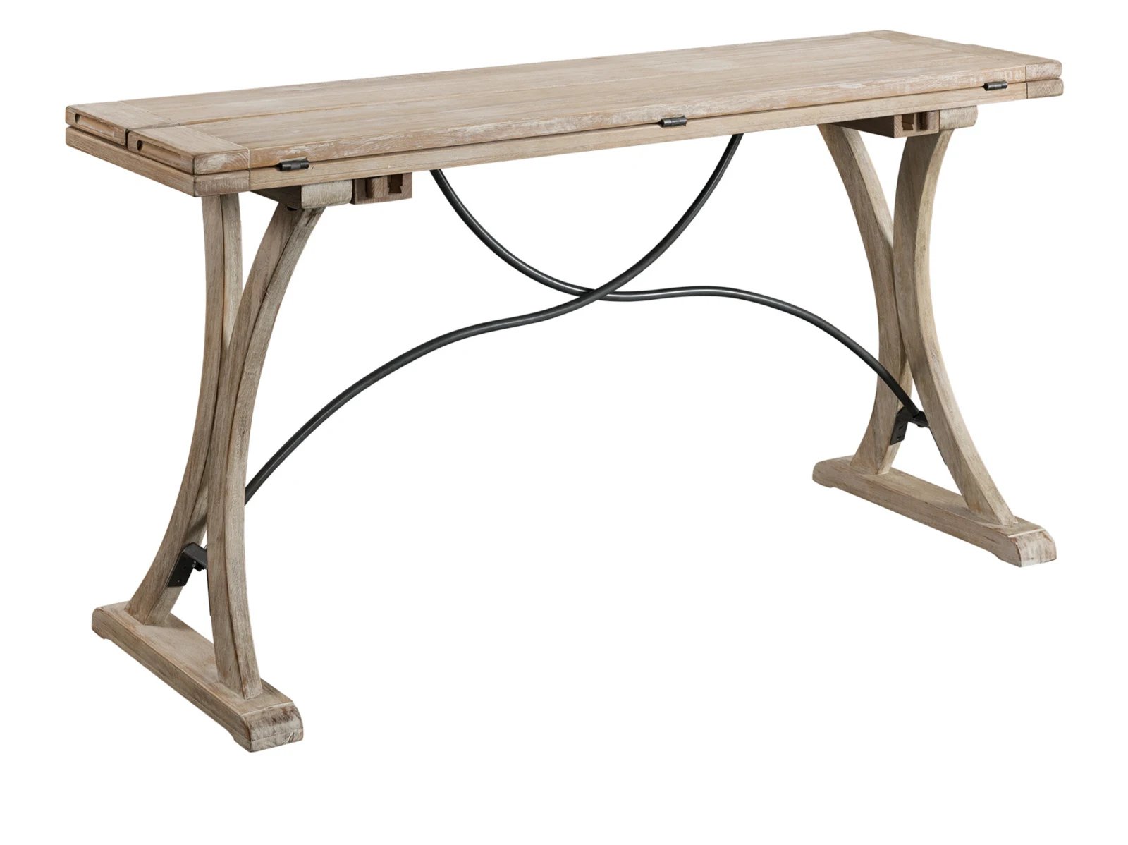 The Candlewood Flip Top Dining Table is a great addition to your home! This table features a folding table top with an intricate base. Once the table is completely folded out, use the support bars underneath for extra sturdiness. The table comes in a light beach finish, making it the perfect piece to fit with any décor.