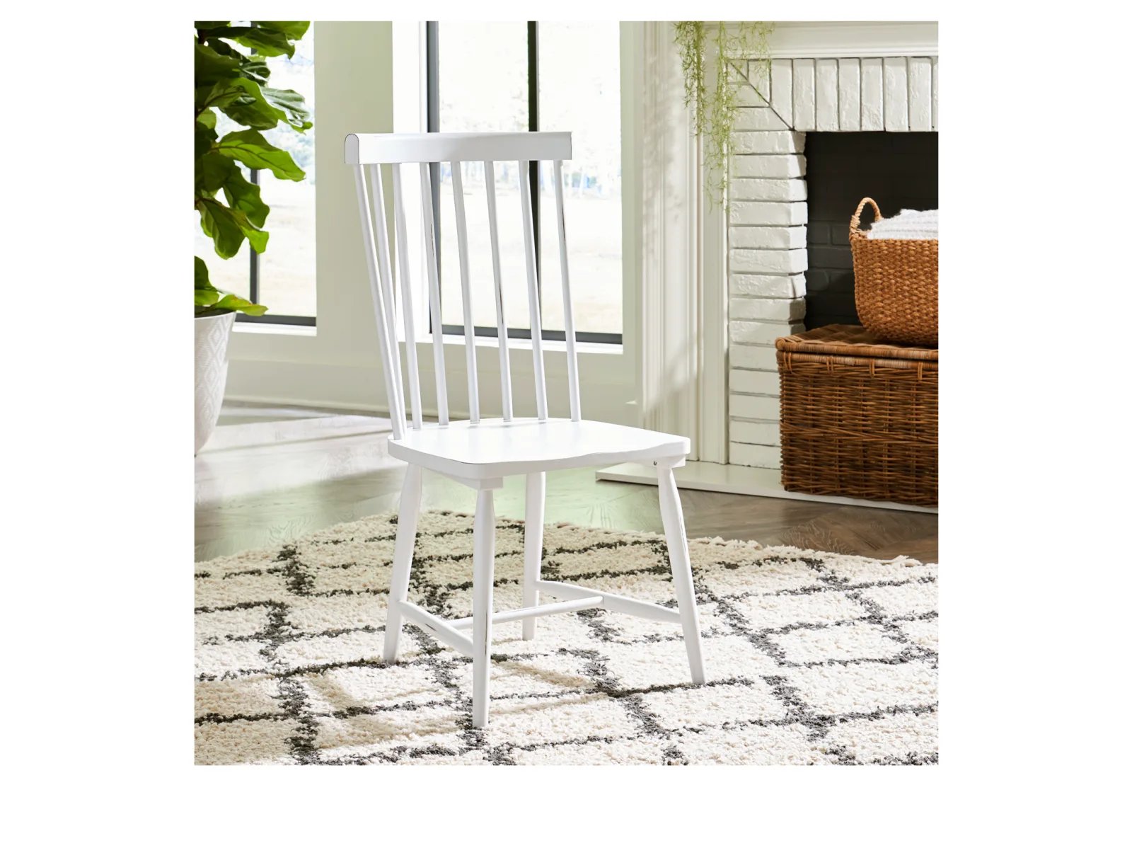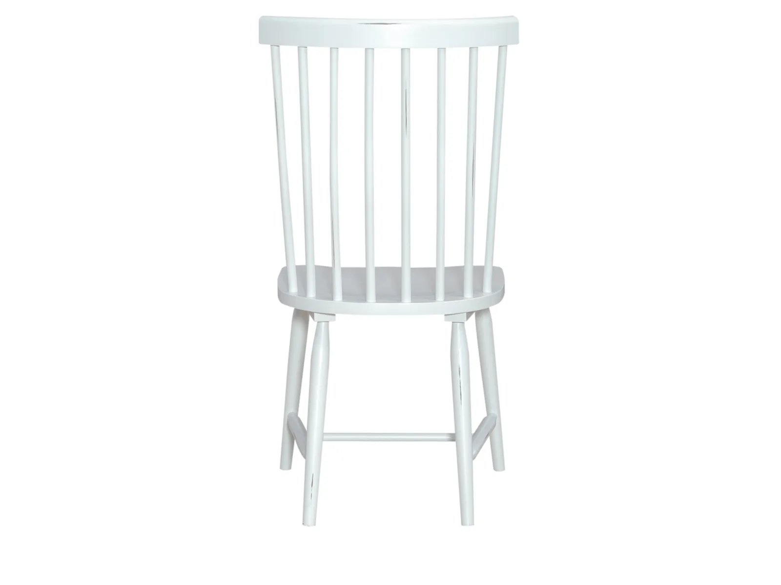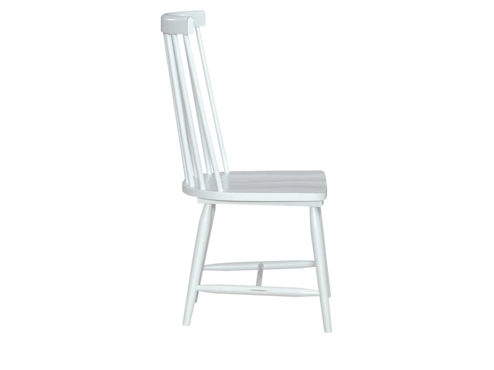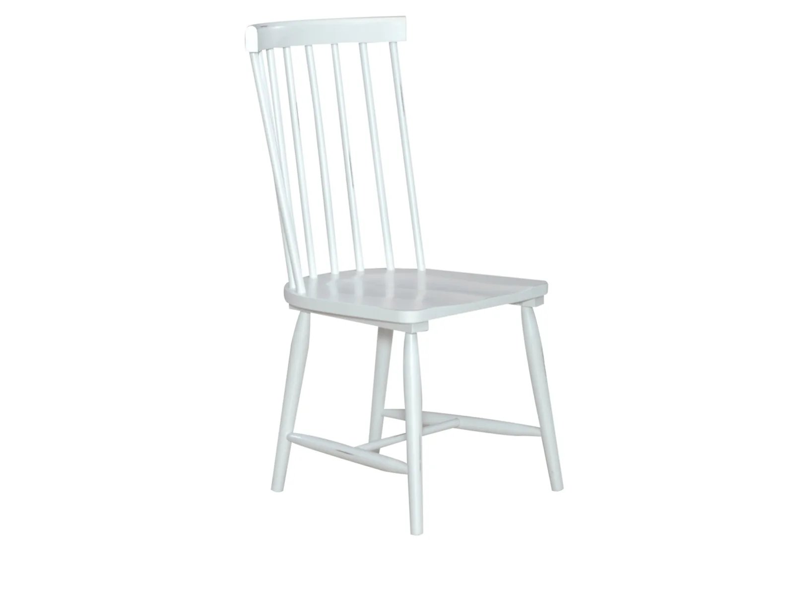 Sit and relax with the Cape Elizabeth spindle back Dining Chair. Crafted with excellence using rubberwood solids, this chair features a porcelain white finish. Inspired by the classic Windsor chair, the Baldwin spindle back Dining Chair features a contoured spindle back and a saddle shaped seat for added comfort. The turned legs flow down to the H-stretcher and features nylon chair glides to protect your flooring. If you live in the country, reside near the coast, or wish you did, the Coastal Farmhouse feel of the Cape Elizabeth spindle back Dining Chair can help make your homes desired look complete.
