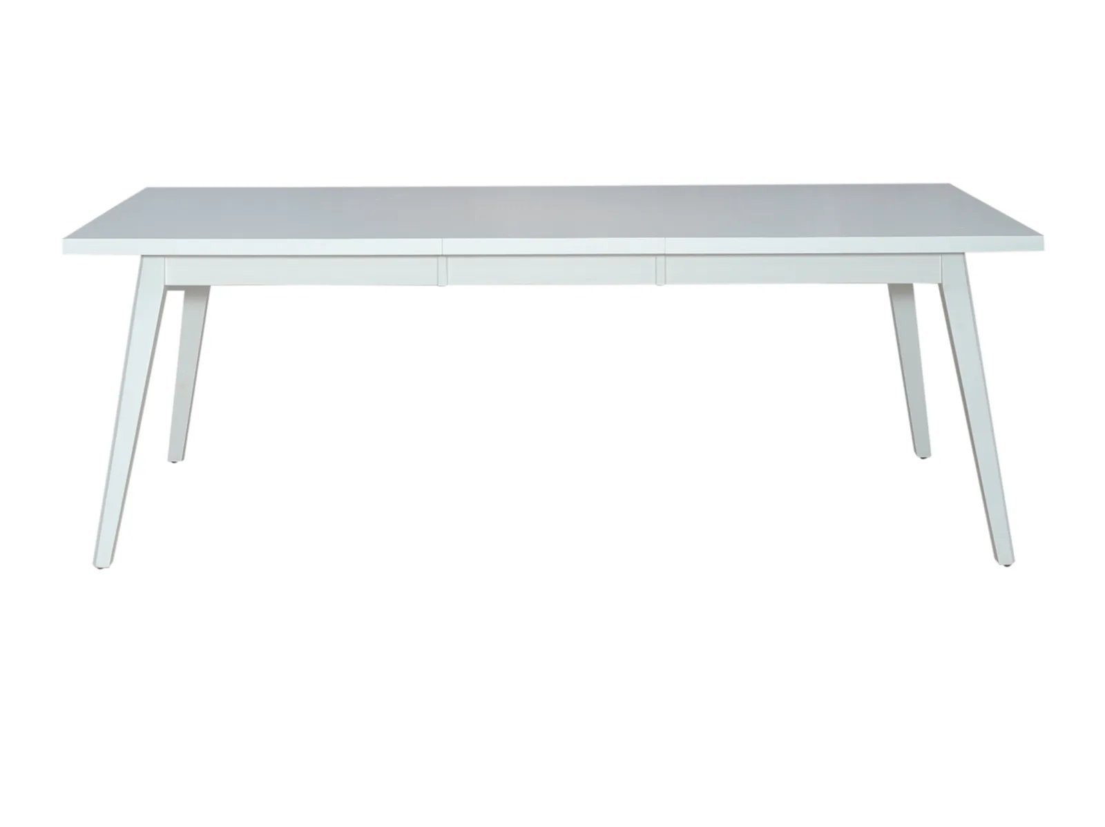 Forget the fancy restaurants and make your home the best place to dine with the Cape Elizabeth rectangular leg table. Crafted with excellence using rubberwood solids and China maple veneers, this table features a Porcelain White finish. The table has clean straight lines and includes one removable twenty inch leaf on a wood guide track system. Splayed tapered legs add a modern flair. If you live in the country, reside near the coast, or wish you did, the Coastal Farmhouse feel of the Cape Elizabeth rectangular leg table can help make your homes desired look complete.