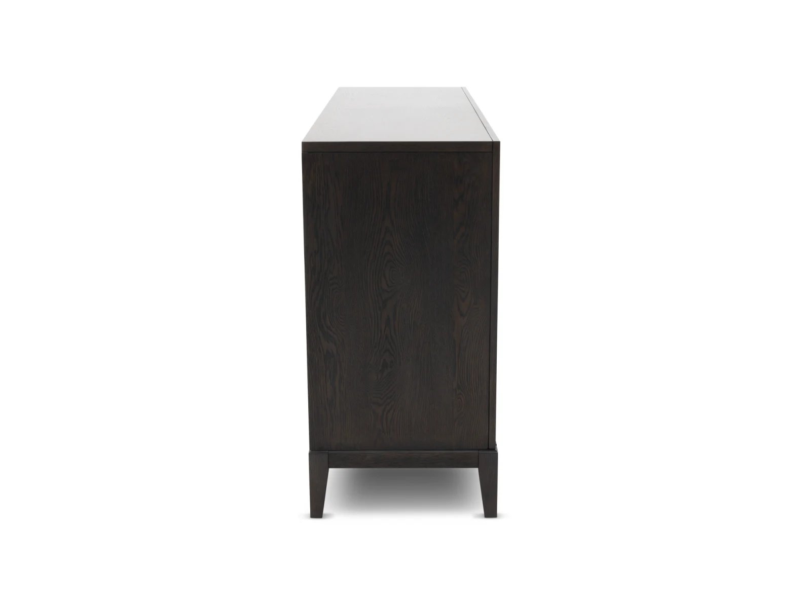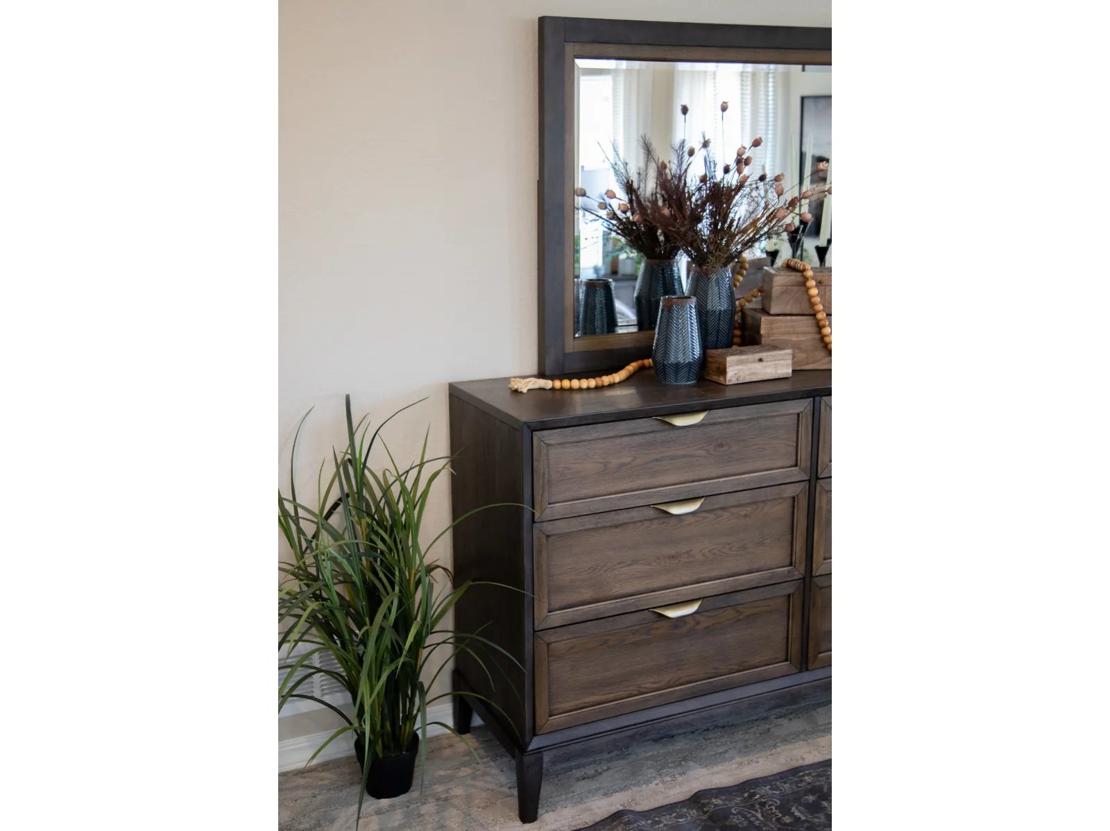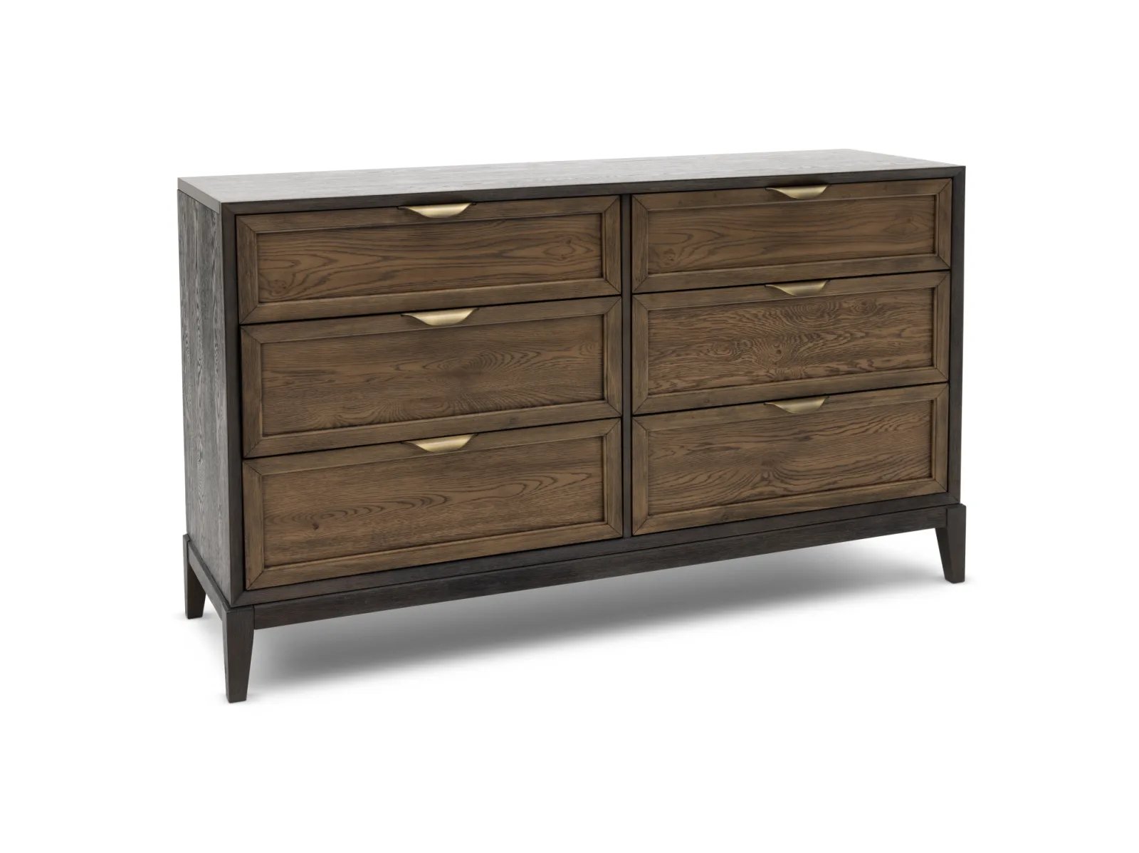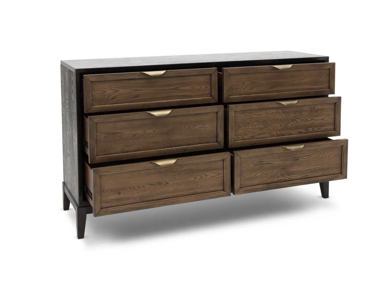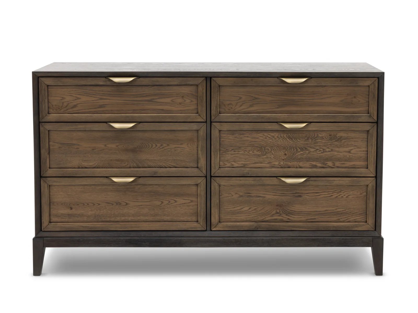 & Free ShippingThe Captiva Dresser combines form and function with its beautifully transitional style and durable construction. Crafted from hardwood solids and rift-cut oak veneers, this large case piece’s clean modern lines lend room to six large drawers for plentiful storage options. Each drawer is fortified with side-mounted ball bearing glides for effortless operation. Coming together in a two-tone brown finish, the Captiva’s rustic flair is complete with top-mounted bronze hardware on the drawer tops for a practical yet sophisticated touch. Dress up your everyday bedroom storage with the Captiva Dresser.