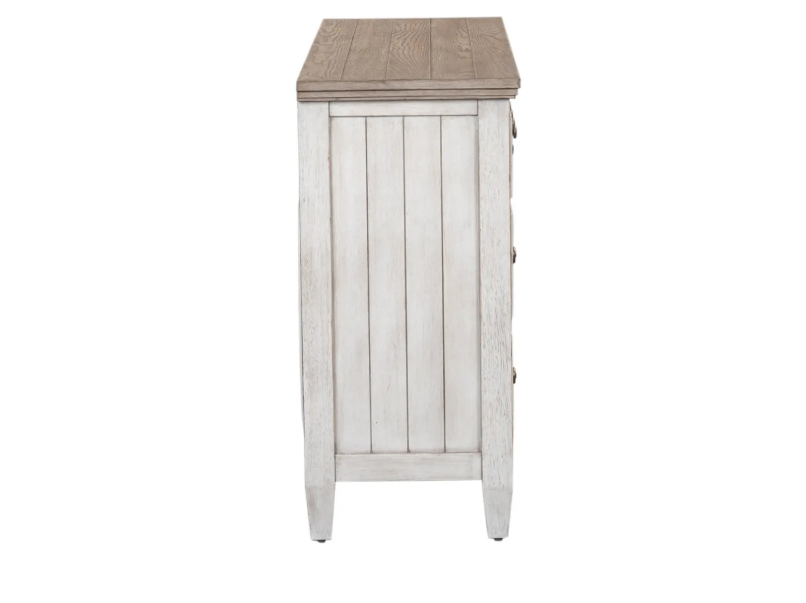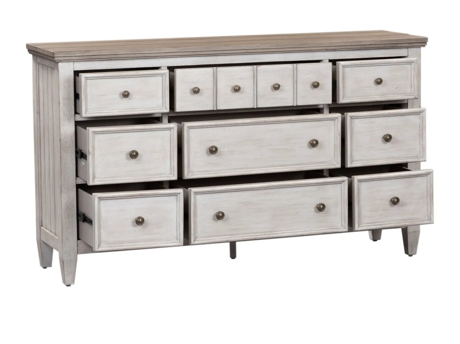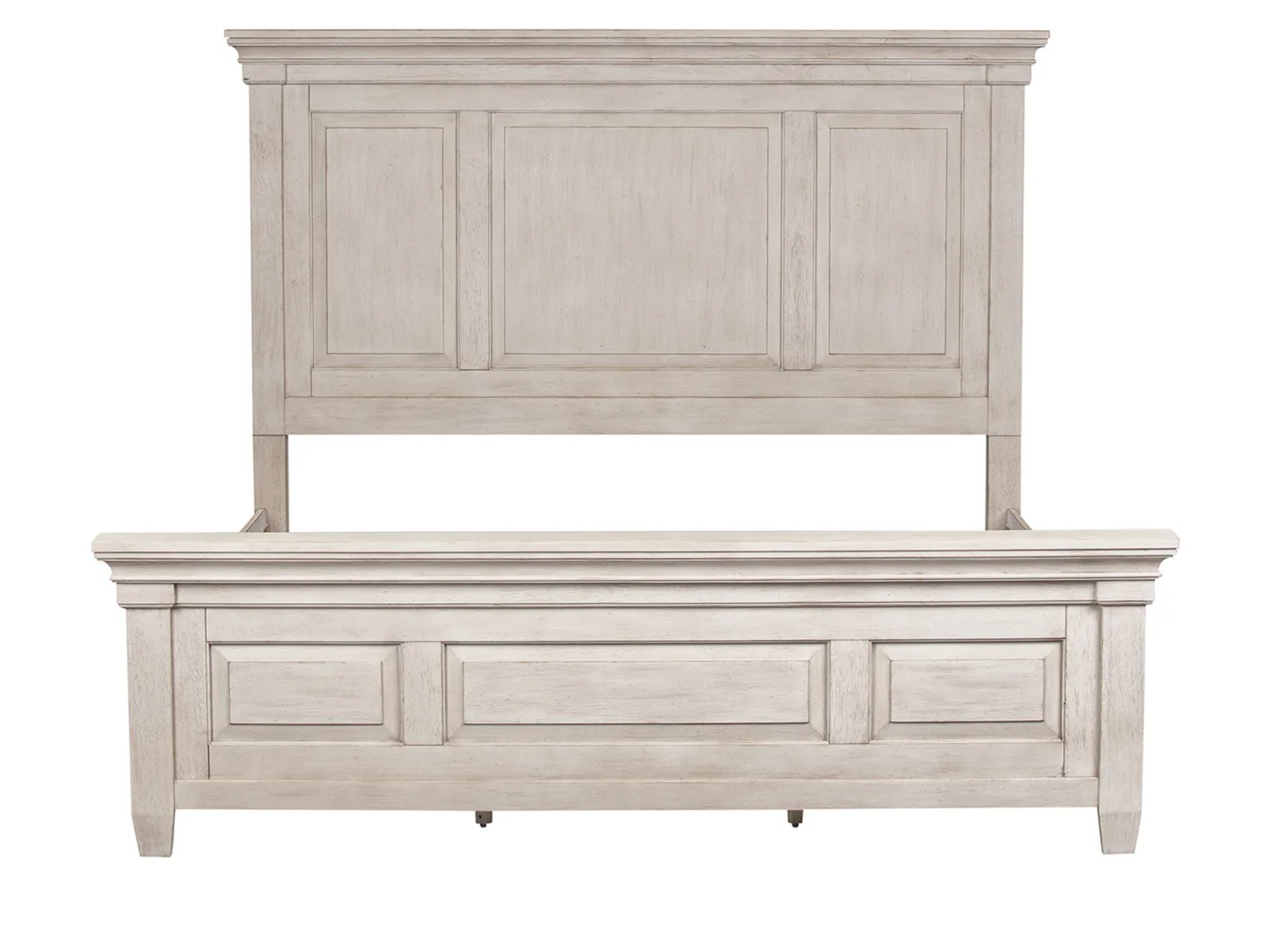 Crafted from rubberwood with cathedral white oak and birch veneers, the Carlyle 4 Pc. Panel Bedroom Set is a testament to the enduring appeal of classic styling and exceptional craftsmanship. To perfect the set’s inviting cottage-inspired look, the Carlyle Panel Bed’s head and footboard feature elegant raised panels and heavy crown top rails, and the Carlyle Dresser and Nightstand showcase a beautifully distressed two tone color palette, rustic planked detailing along their tops and side panels, and charming antique brass pull knobs. The set’s full-extension drawers offer premium construction features like French and English dovetail corners and bottom case dust proofing, and they even boast felt-lined top drawers and cedar-lined bottom drawers for added distinction. You’re going to love Carlyle 4 Pc. Panel Bedroom Set in your home today.