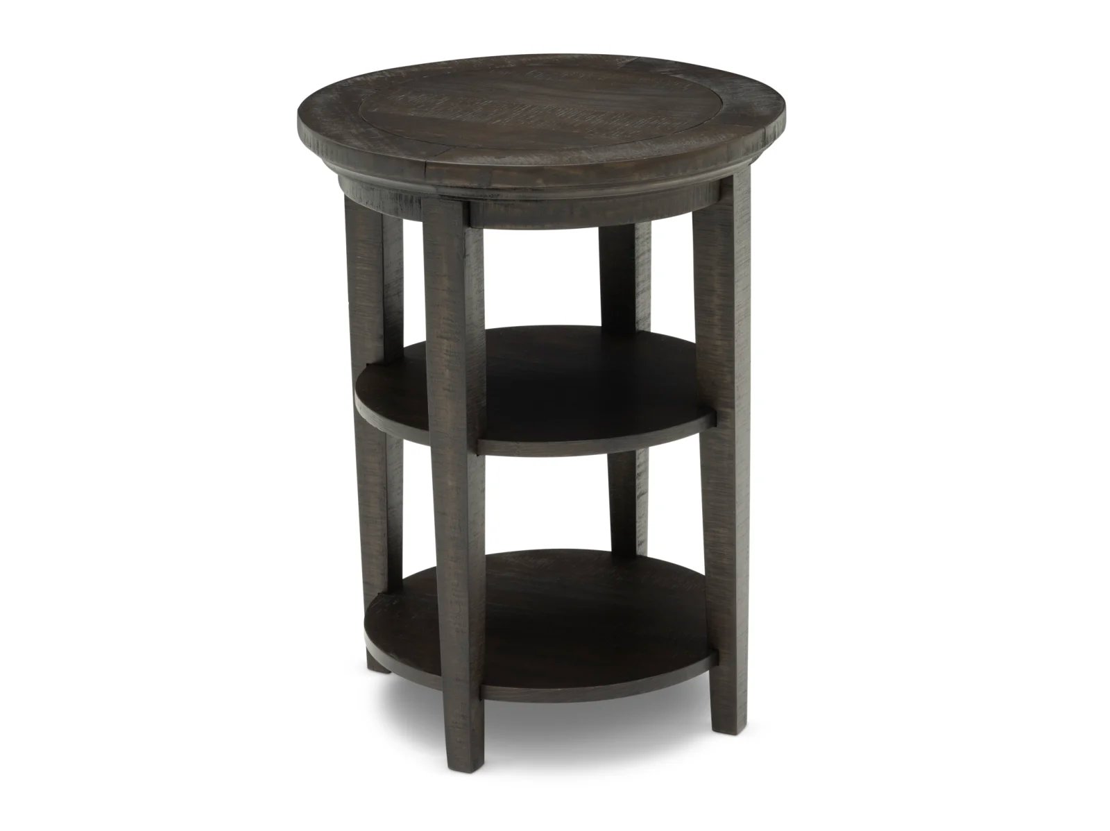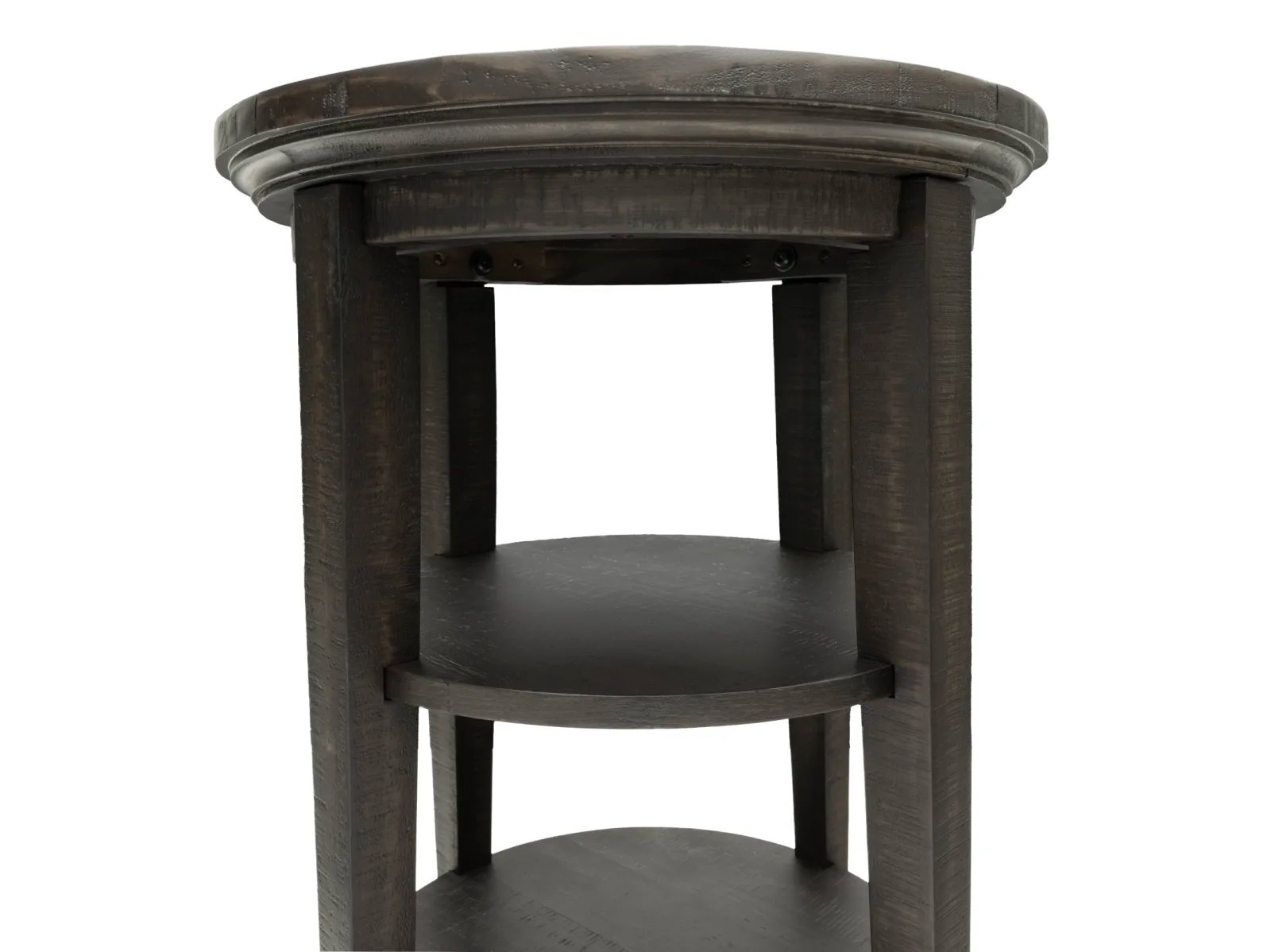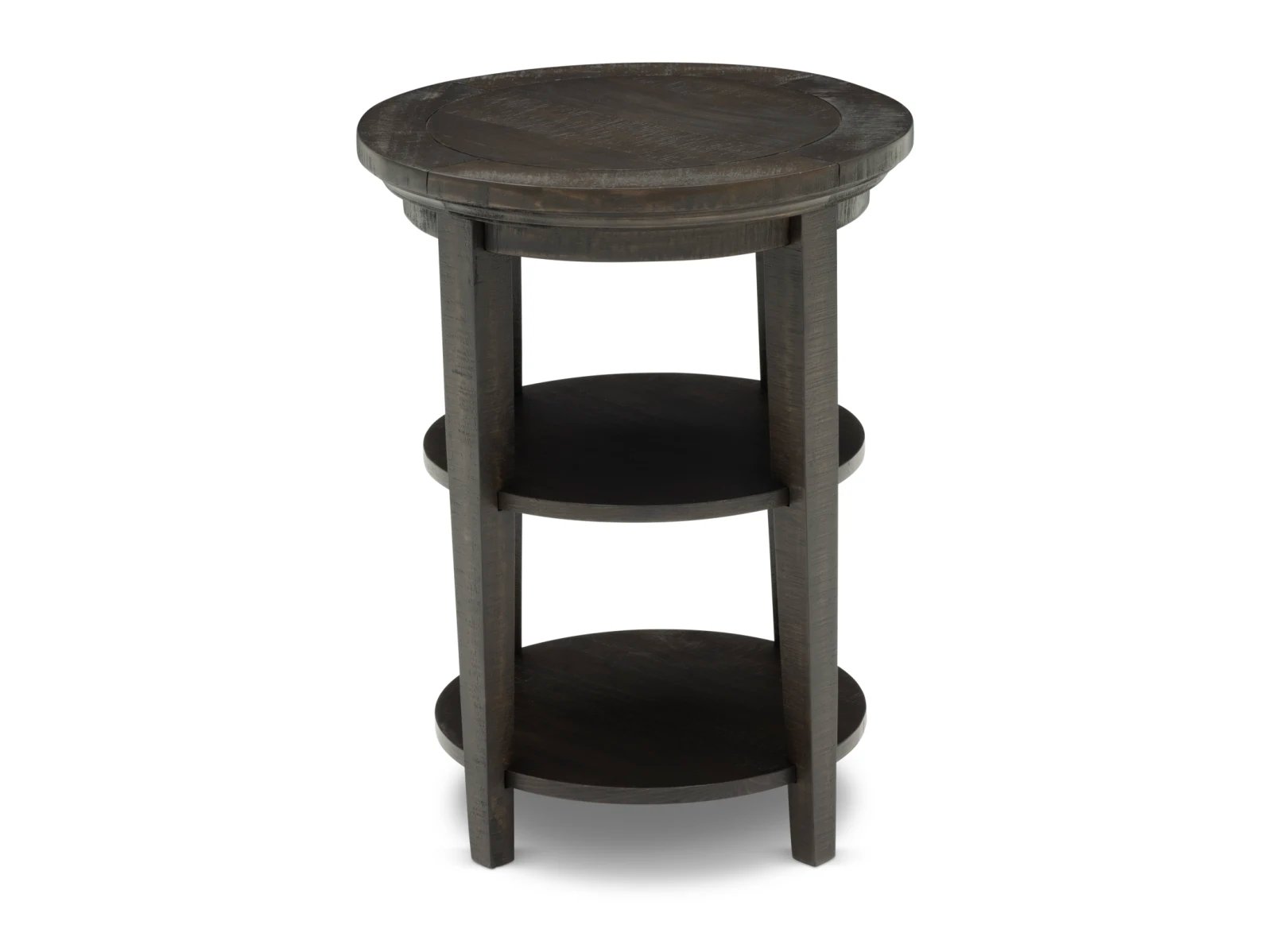 Add bold modern personality to any space with the Cassian Round Accent End Table! Constructed from durable pine veneer and pine solids, this accent piece offers the perfect surface for lamps, decor, and daily essentials, sitting atop adjustable levelers for added stability. Its stylish round shape provides convenient storage through its expertly crafted open shelves for multifunctional use. Showcasing a sophisticated graphite finish, the Cassian’s fresh attitude is complemented by elegant aged pewter hardware that makes it both charming and refined. Storage and style have never been so beautifully combined than with the Cassian Round Accent End Table.
