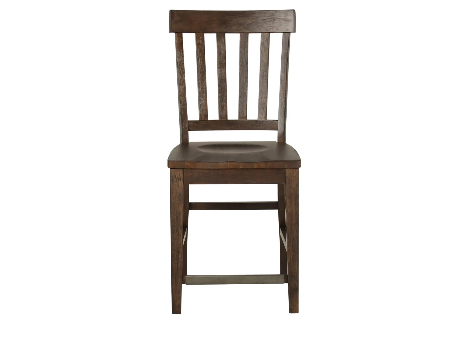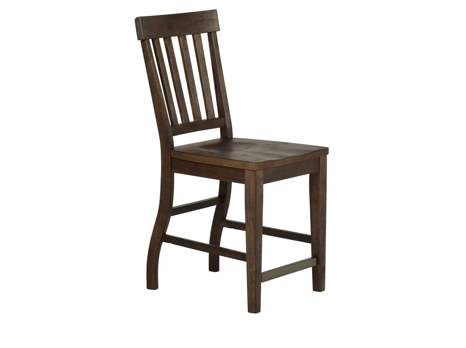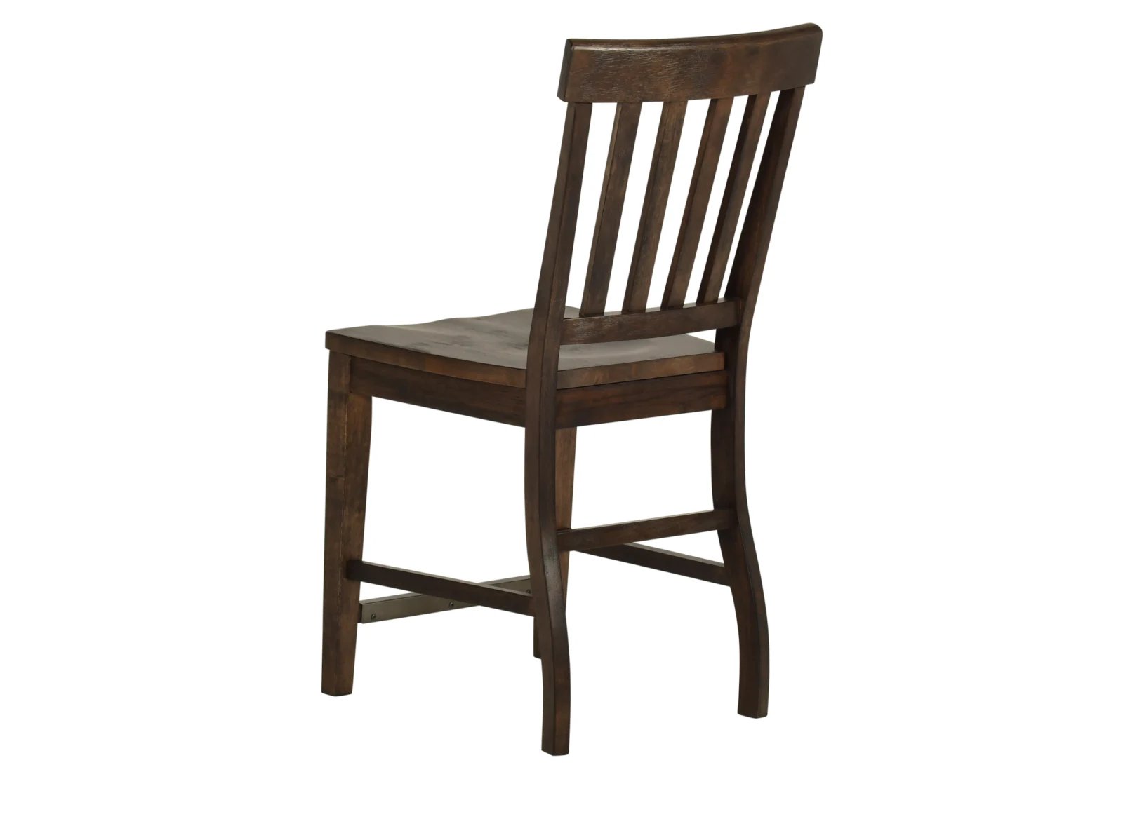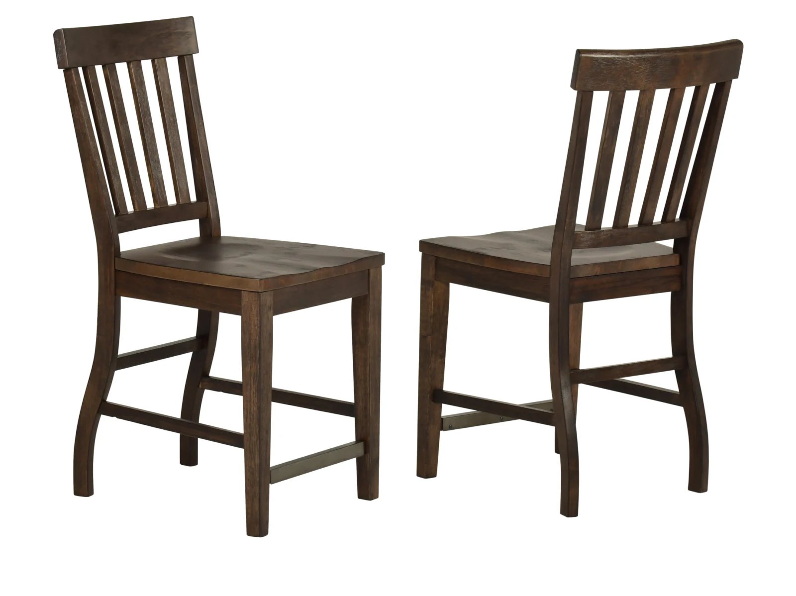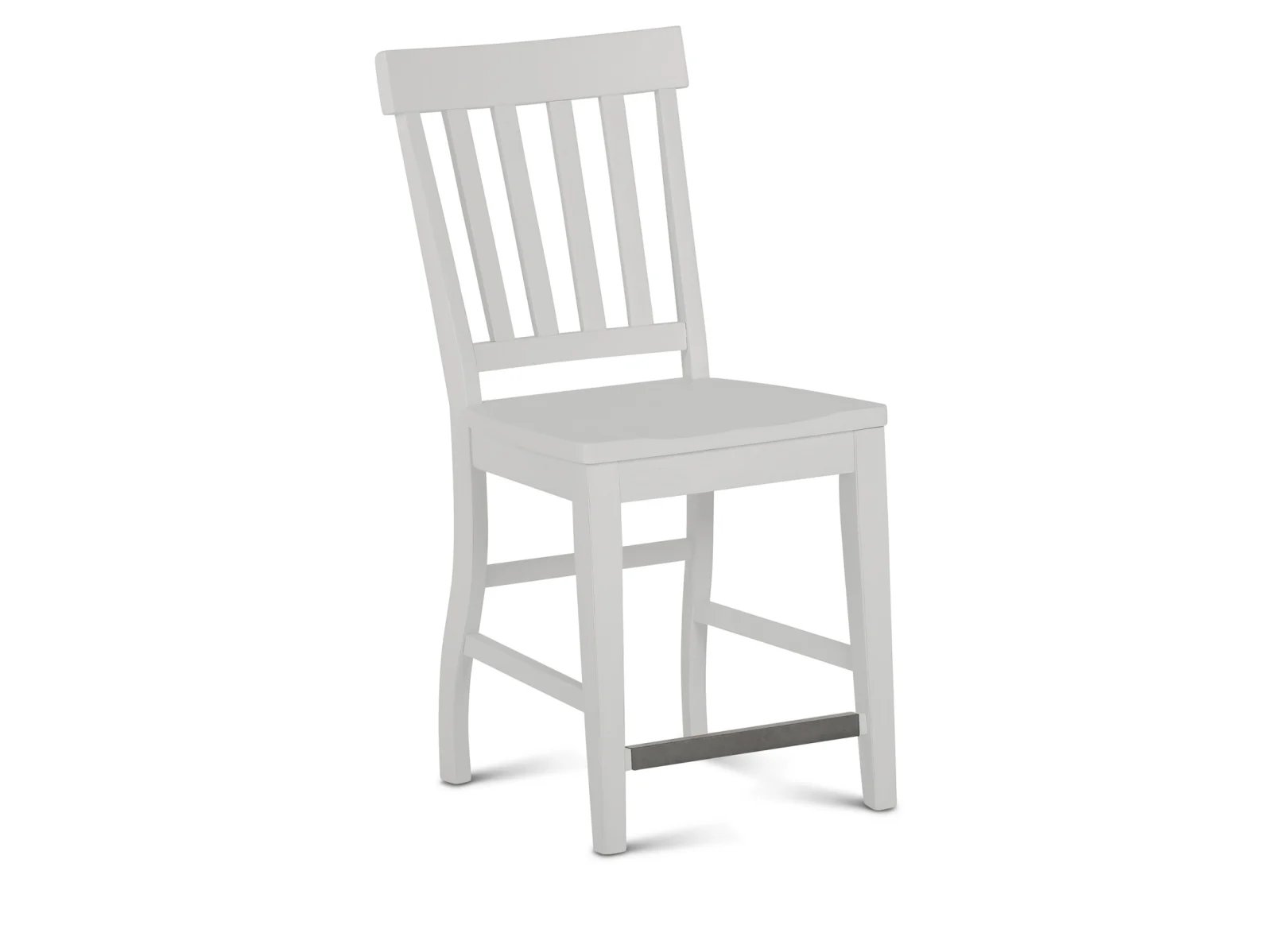 The Cedar Creek Counter stool are finished in your choice of heavily distressed antique white or wire brushed dark oak. A vertical slat back topped with a solid wood cap rail and curved back legs give the chairs a modern farmhouse style. Scooped seats for comfort and a three-sided stretcher for added strength and stability make these counter height chairs a great addition to any dining space.