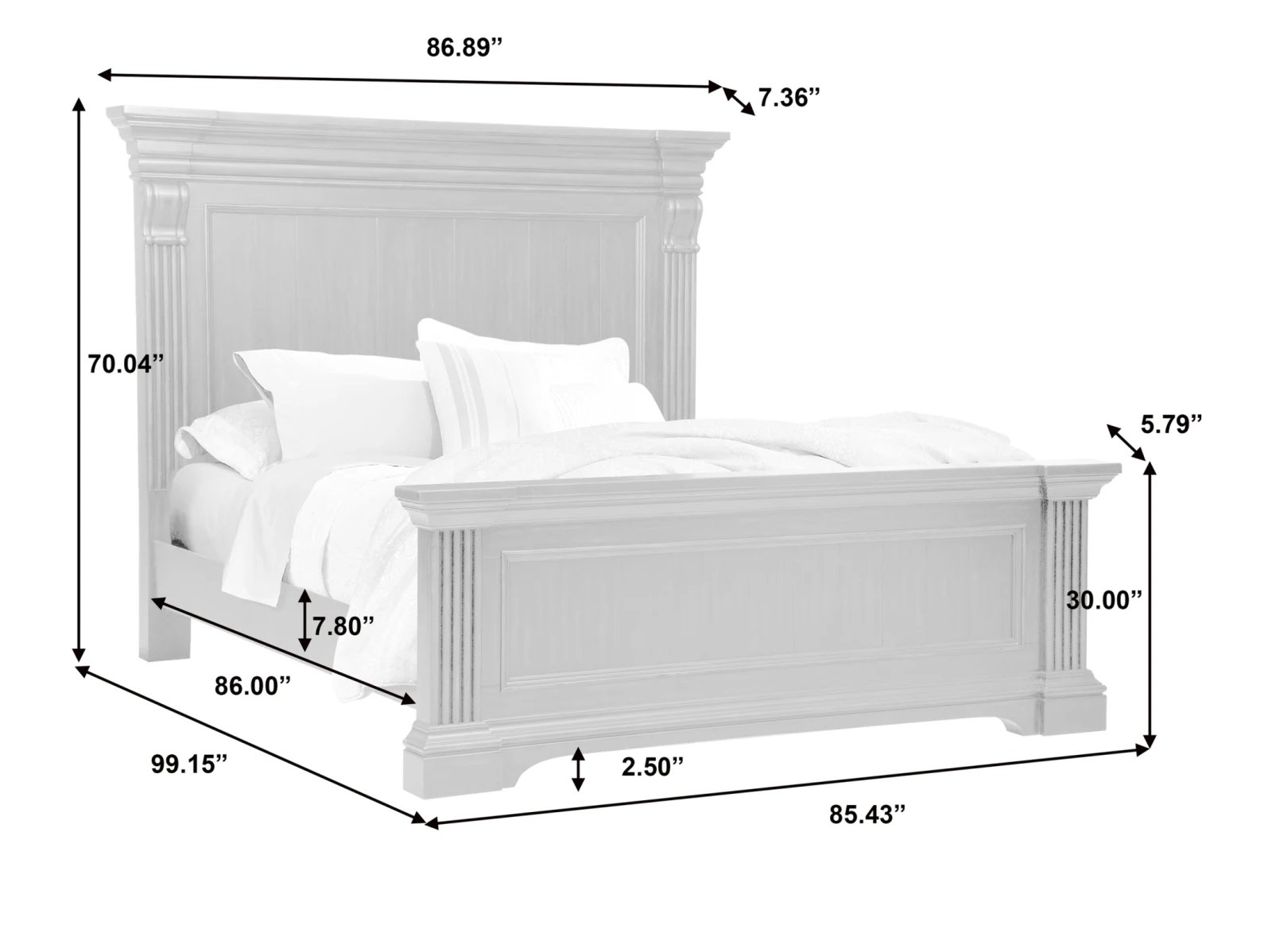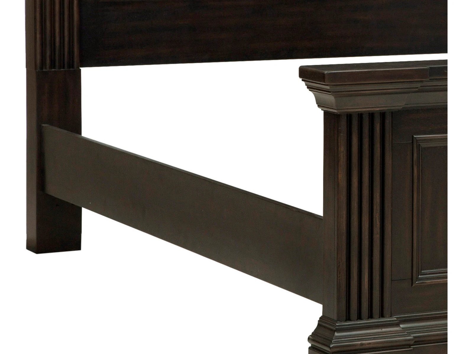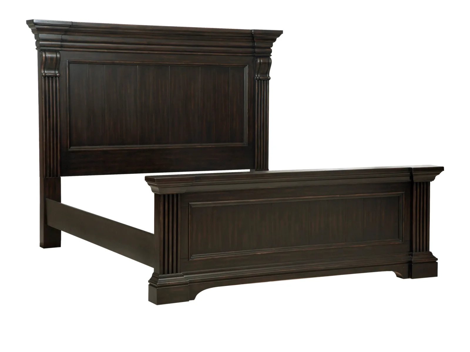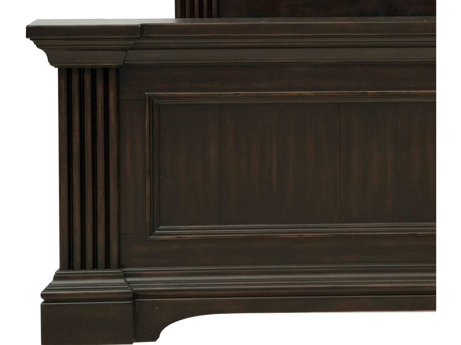 & Free ShippingWith a timeless mansion bed silhouette featuring a mantle design and accented by classical column carvings on the sides of the headboard and footboard, the Celadonia Panel Bed is a striking focal point for your bedroom retreat. Crafted of Acacia Veneers, it is finished in the warm Smoked Molasses finish with gentle distressing for a time-honored quality. The side rails bolt securely to the headboard and footboard for a safe dependable connection.
