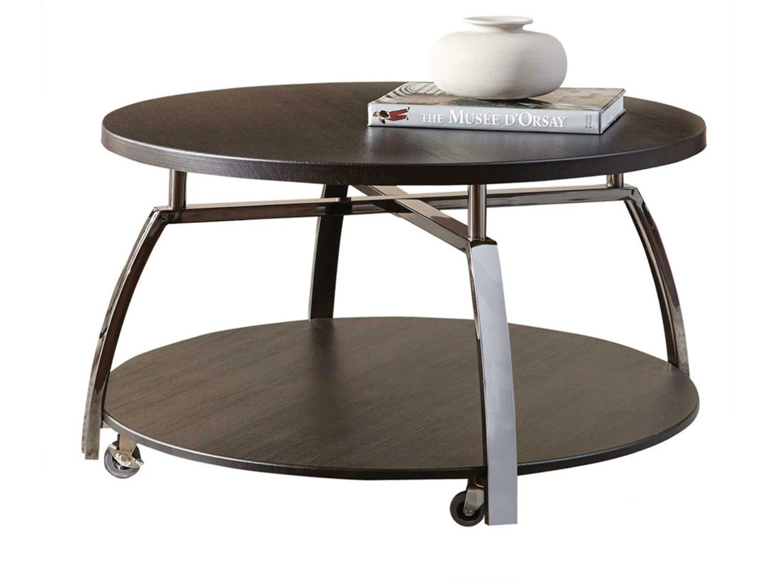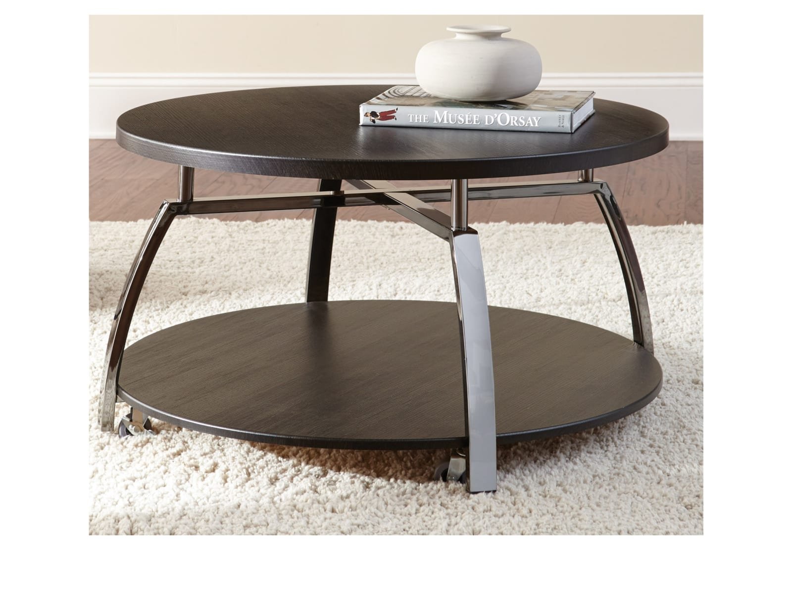 & Free ShippingDesigned with the modern home in mind, Chandler is an elegant table collection with soft round shapes  that bring a sense of coziness and style to any room. Built with Silvershield laminate tops that resist scratches and are easy to clean, these tables feature a black nickel base with an aggressive profile for a true style statement. The Coffee Table features casters for easy mobility.