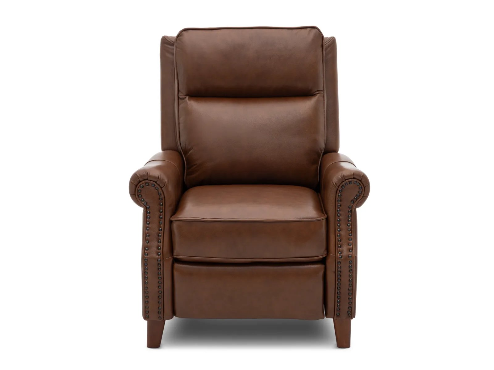 & Free ShippingThe Charles Push Back Recliner combines comfort and style in a sophisticated, streamline package. Crafted with a sturdy hardwood, plywood, and MDF construction, this recliner boasts high-density foam cushions for ultimate relaxation. Its elegant design features rolled arms adorned with nailhead trim, dark wood legs, and meticulous stitched detailing, making it a versatile addition to any living space. The beige leather upholstery, complemented by matching vinyl sides, exudes a timeless charm. With its convenient push-back recliner mechanism and removable back for easy transport, the Charles Push Back Recliner offers both functionality and a dash of riveting traditional appeal.