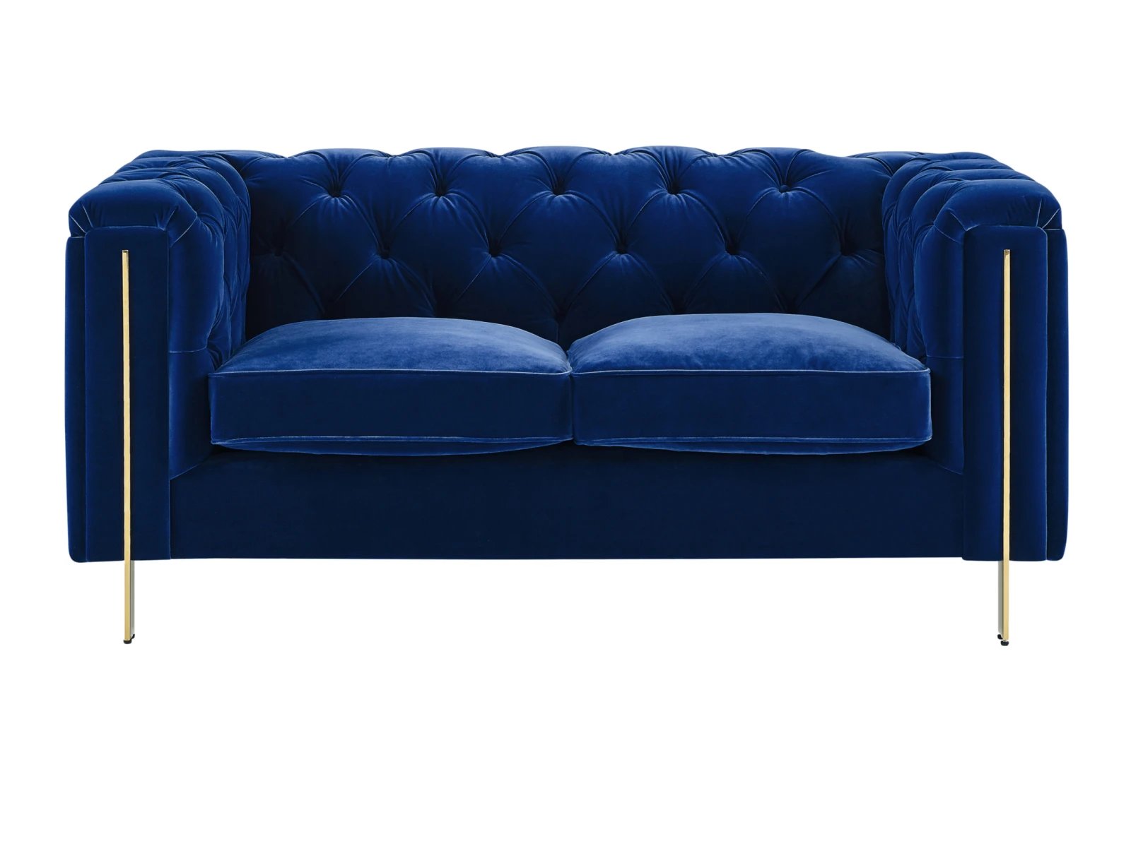 Fabulously elegant and yet wonderfully comfortable, Chelmsford blends classic and contemporary styles in a modern silhouette you won’t be able to take your eyes off. Curl up with a book on a rainy Sunday afternoon or entertain friends with this frame people will fight over. Ultra-soft velvet is draped over a classic Chesterfield frame and then button tufted in an Old English look. A modern gloss brass frame adds a level of pop to the presentation that freshens up a classic upholstered silhouette. Draped in a bold blue sapphire blue velvet for an elegant yet fun center to any living area.