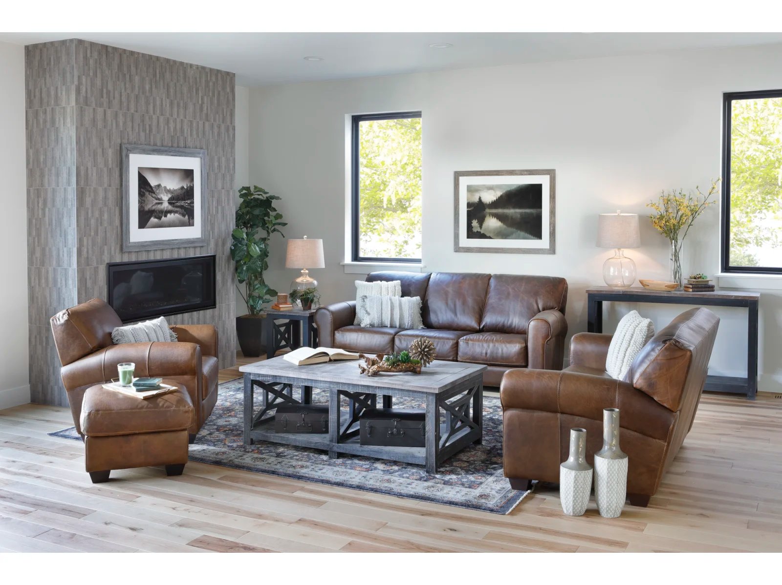 & Free ShippingThe Churchill Ottoman is an easy addition to any seating area, and it’s a must-have if you are considering the other pieces in the Churchill Sofa Collection. This attractive ottoman features a durable hardwood frame that’s topped with a luxurious bagged and channeled cushion. With a sense of timeless appeal, the Churchill is upholstered with 100% top grain leather, and it rests atop tapered block feet in a versatile brown finish. Add the Churchill Ottoman to your collection today.