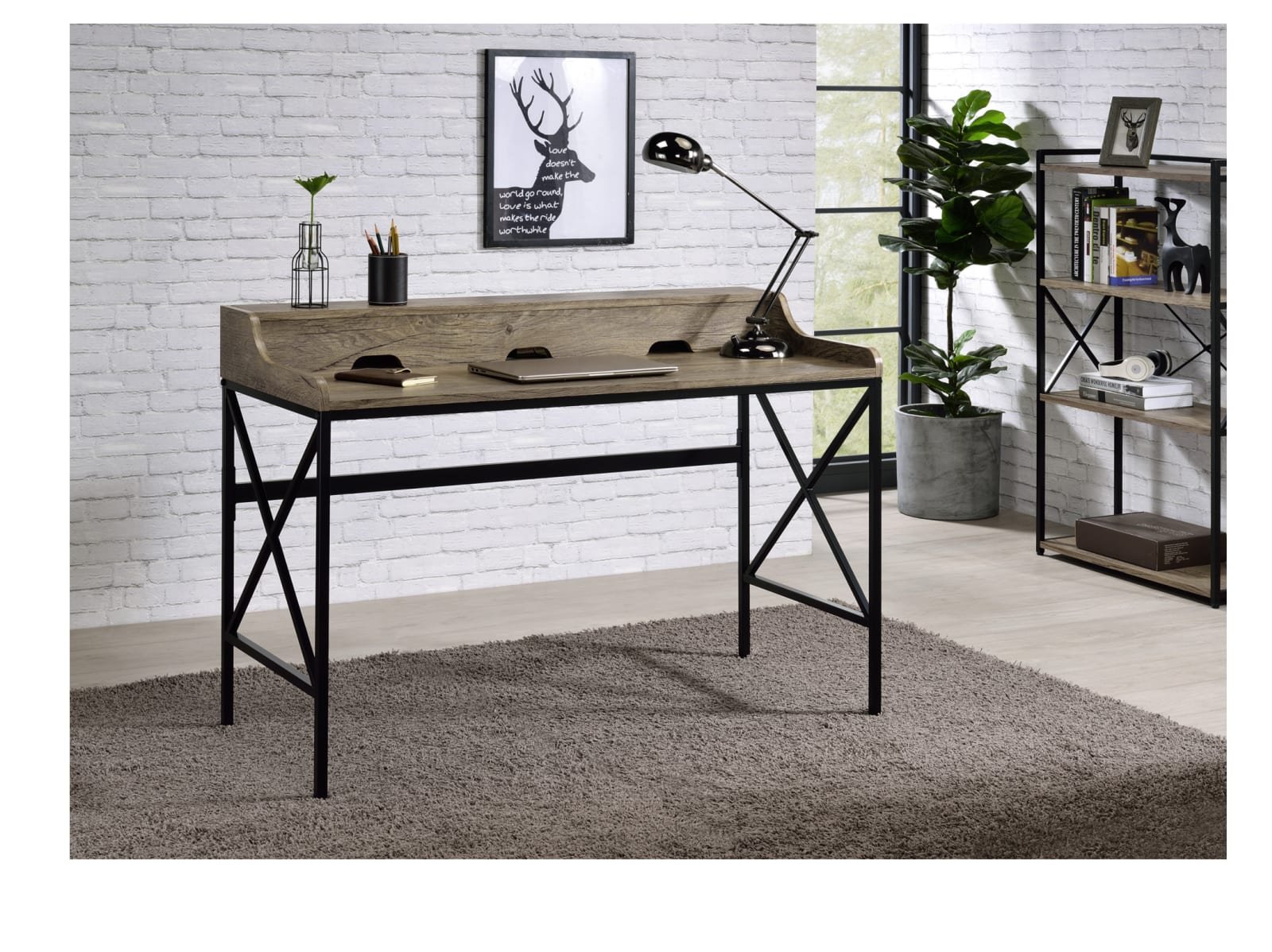 & Free ShippingModern rustic styling in a Desk for today’s offices or homes, Corolla combines a gray wood look with black metal accents in a Desk that adds storage and style to any room. An enclosed back panel offers hidden storage for all your messy computer peripherals while easy-open access and dual USB ports and an electrical outlet offer easy charging for devices. The style and utility of this Desk is sure to help your productivity and style in a compact footprint that will fit well in an apartment or large home.