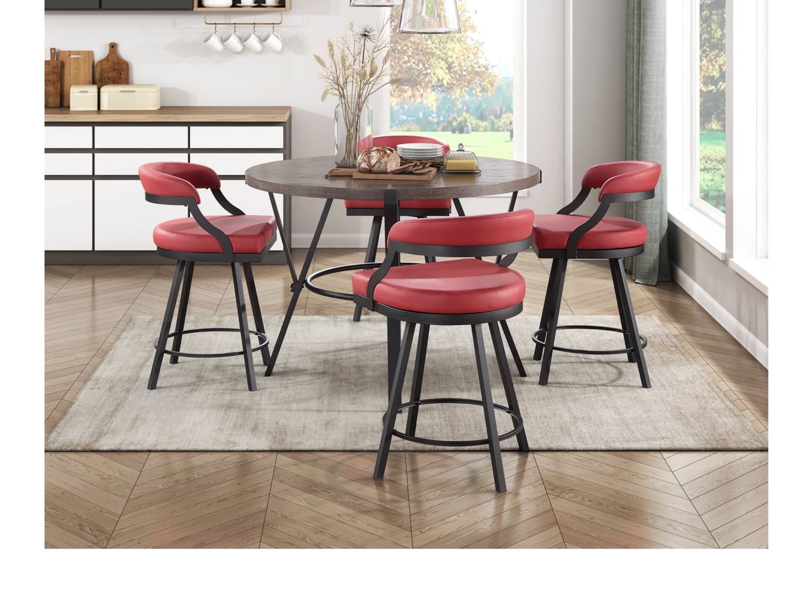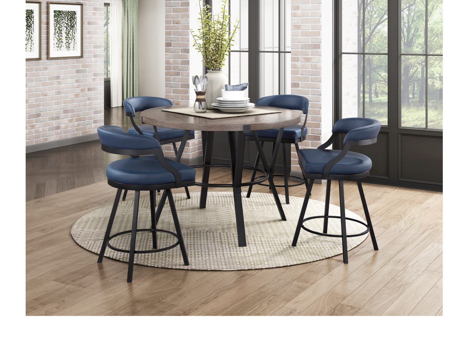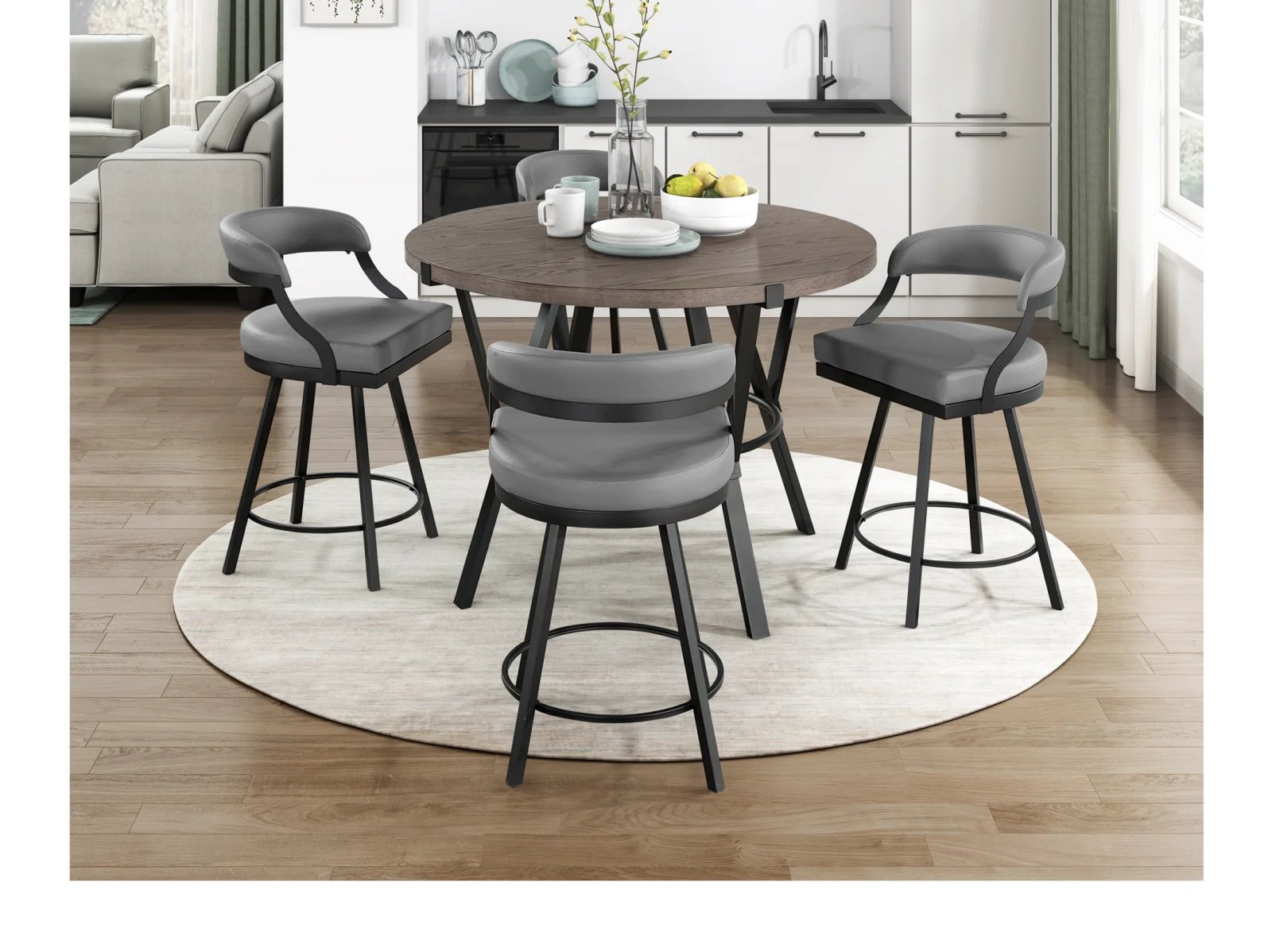 Elevate your dining experience with the Cortone 5-Piece Counter Height Dining Set. Designed with a rustic aesthetic, this set features a round, oak veneer table top supported by a sleek black metal base. Perfect for mealtime and social gatherings, the Cortone Collection seamlessly blends style and function, making it a stunning addition to any home.