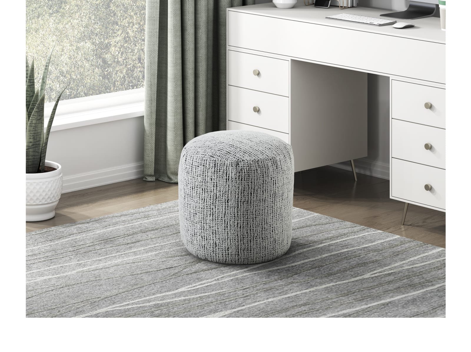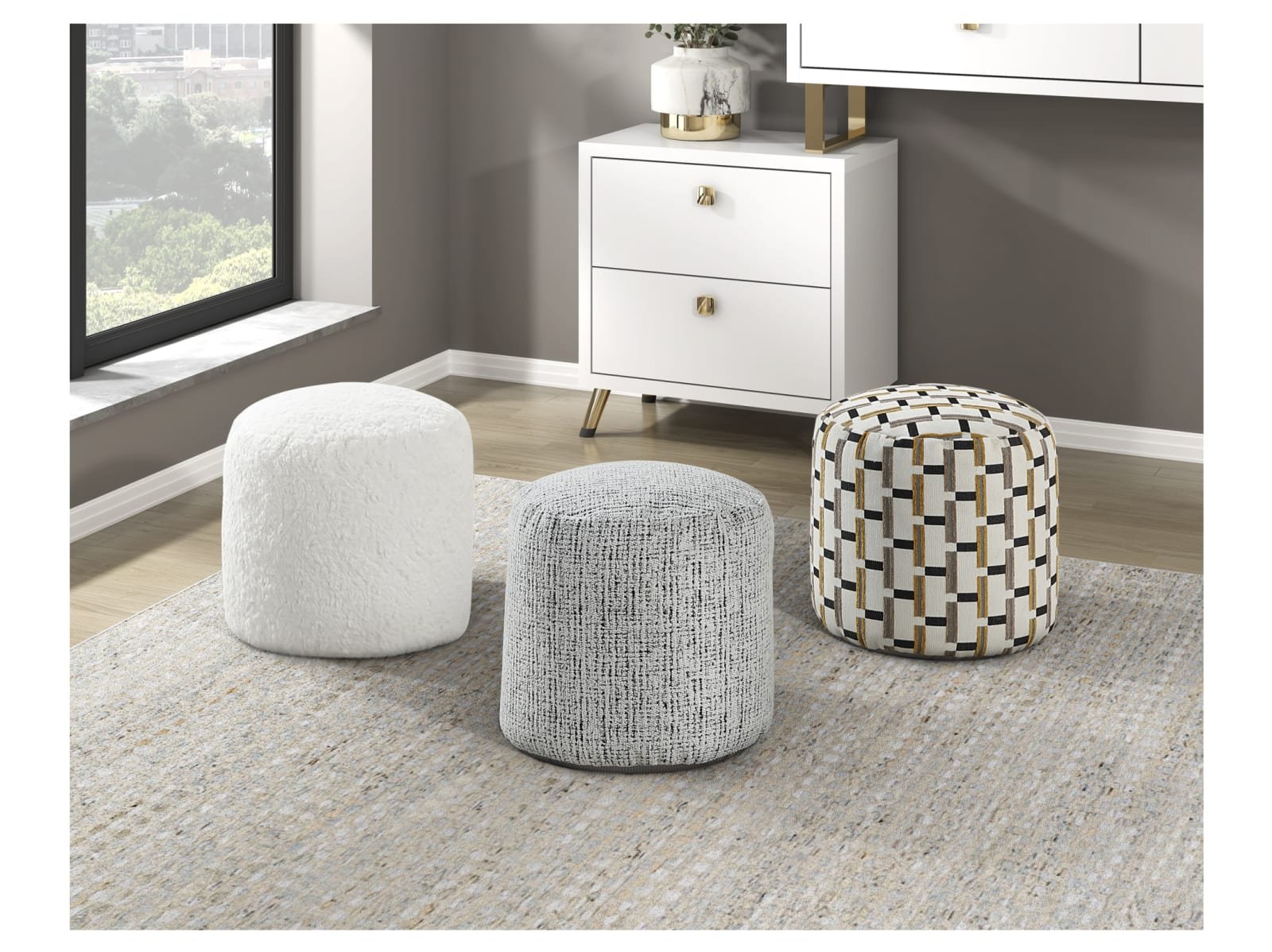 & Free ShippingThe Crocus Pouf Ottoman adds a bold accent with its cylindrical shape and contrasting black-and-white chenille upholstery. Its soft, textured surface lends both style and extra seating or footrest versatility. Lightweight and portable, it easily moves wherever an impromptu seat or accent is needed.