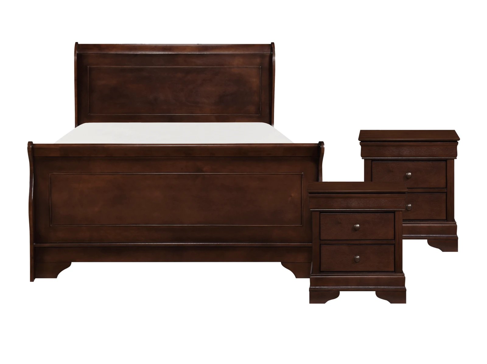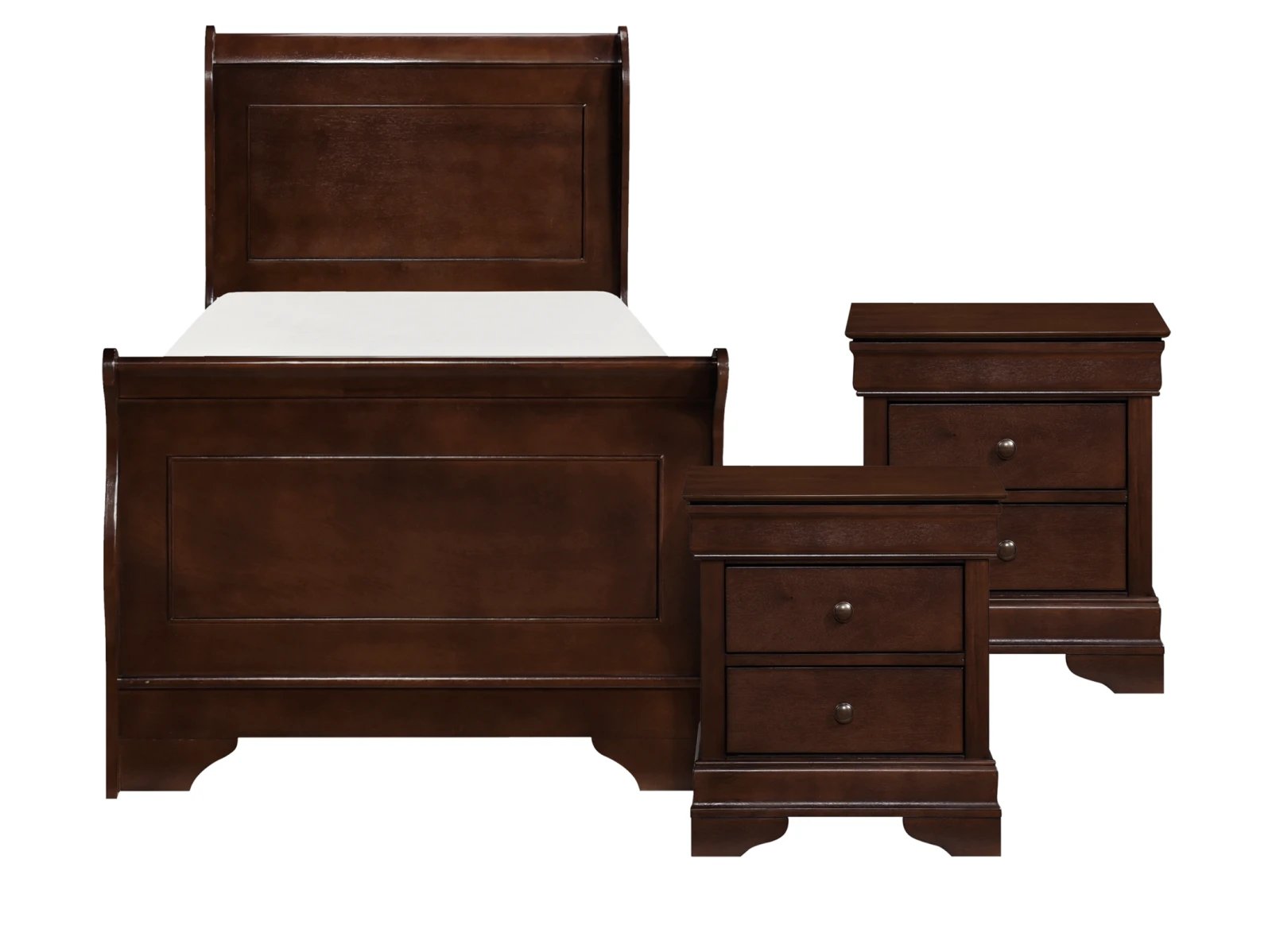 - 3 pc. set includes 1 bed, 2 nightstands