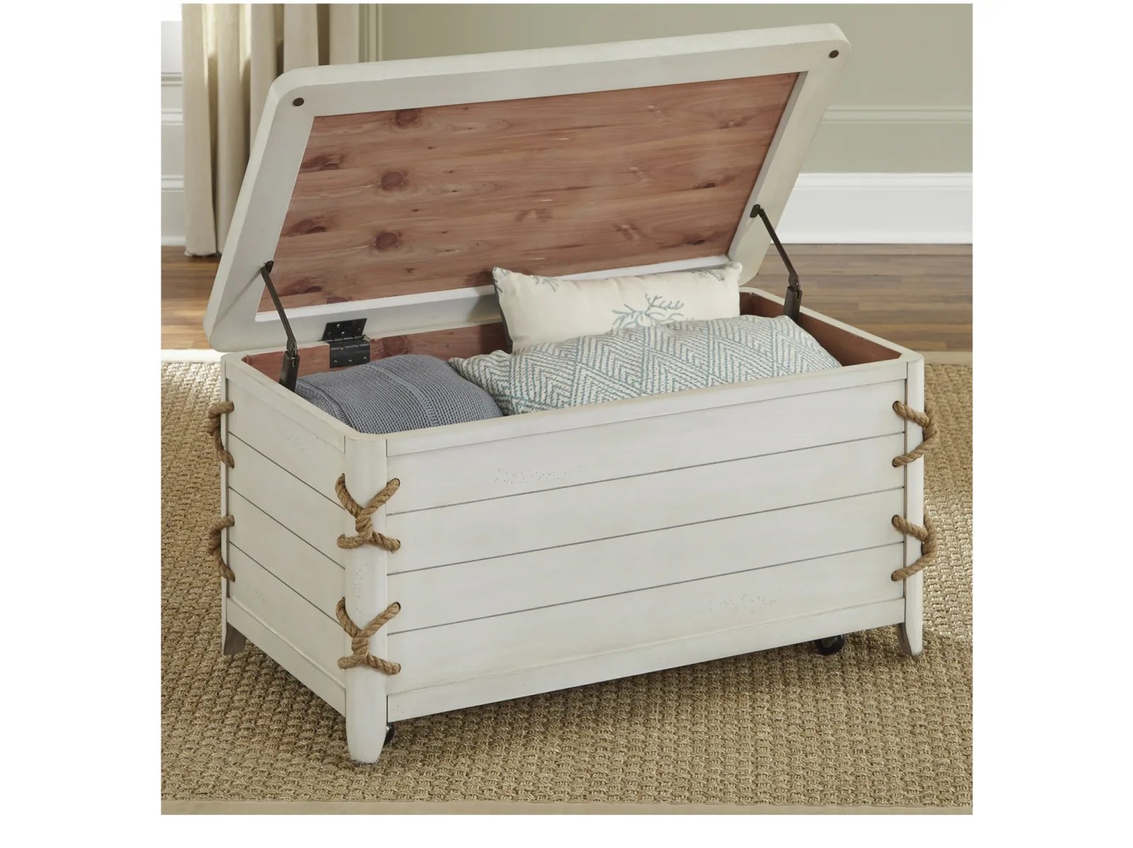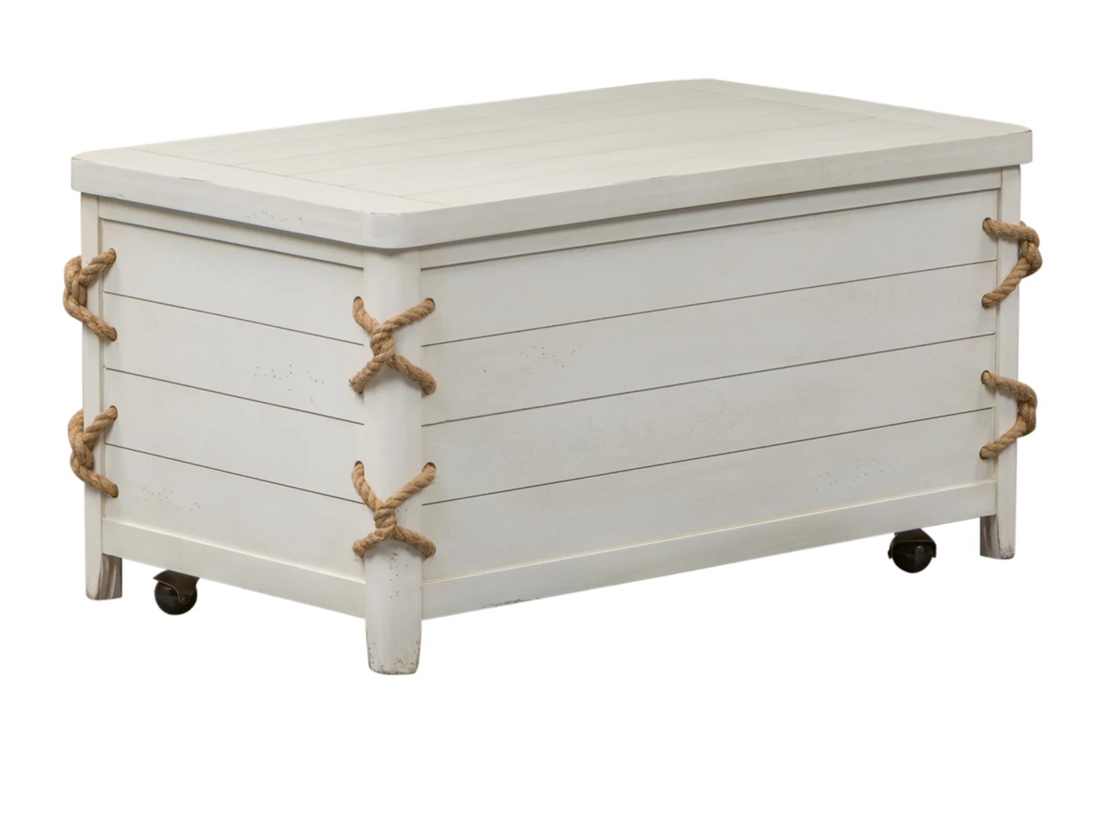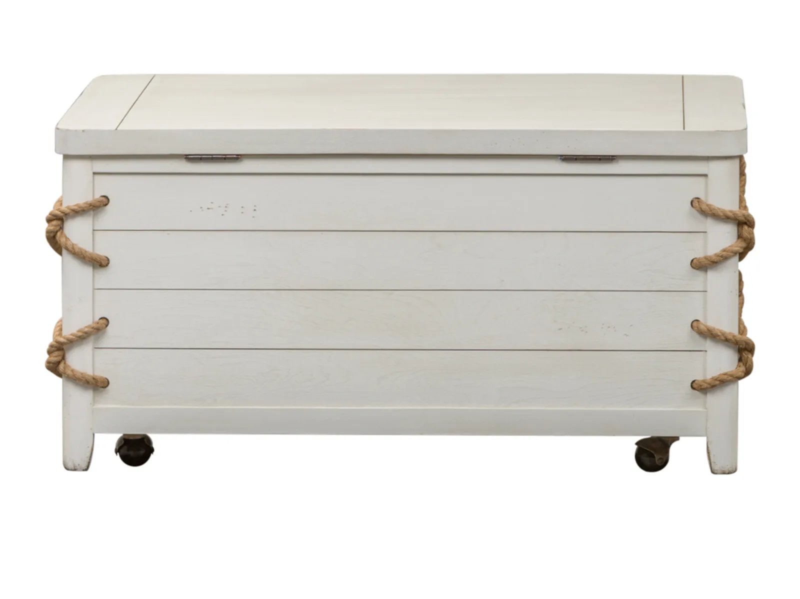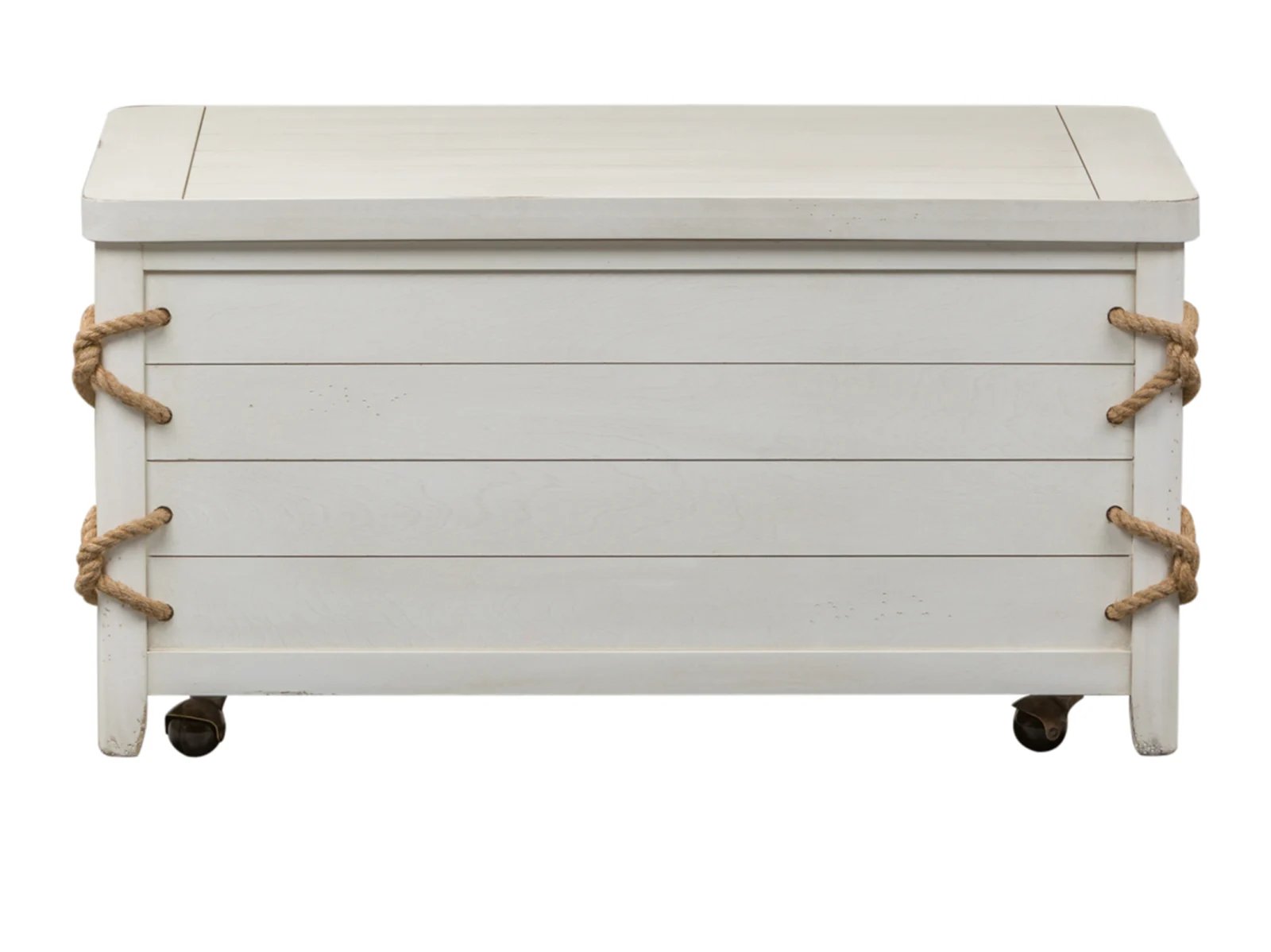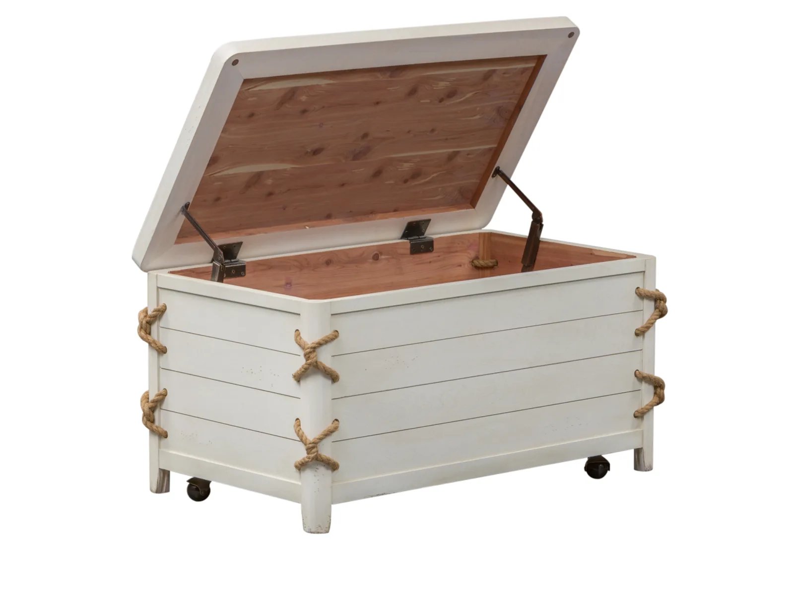 & Free ShippingElevate your space with the coastal style Dania Beach Storage Trunk. Crafted of poplar solids and birch veneers, this piece features a white finish with softly rounded weaved rope pilasters flowing into tapered feet, wormhole distressing, appealing planked top and cedar lined trunk, anchored by easy to navigate casters. Add this eclectic, one of a kind trunk to any casual style space.