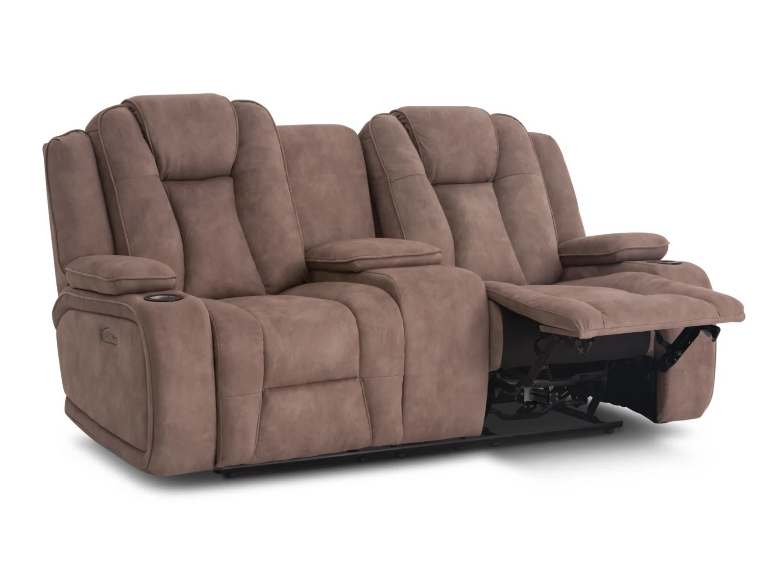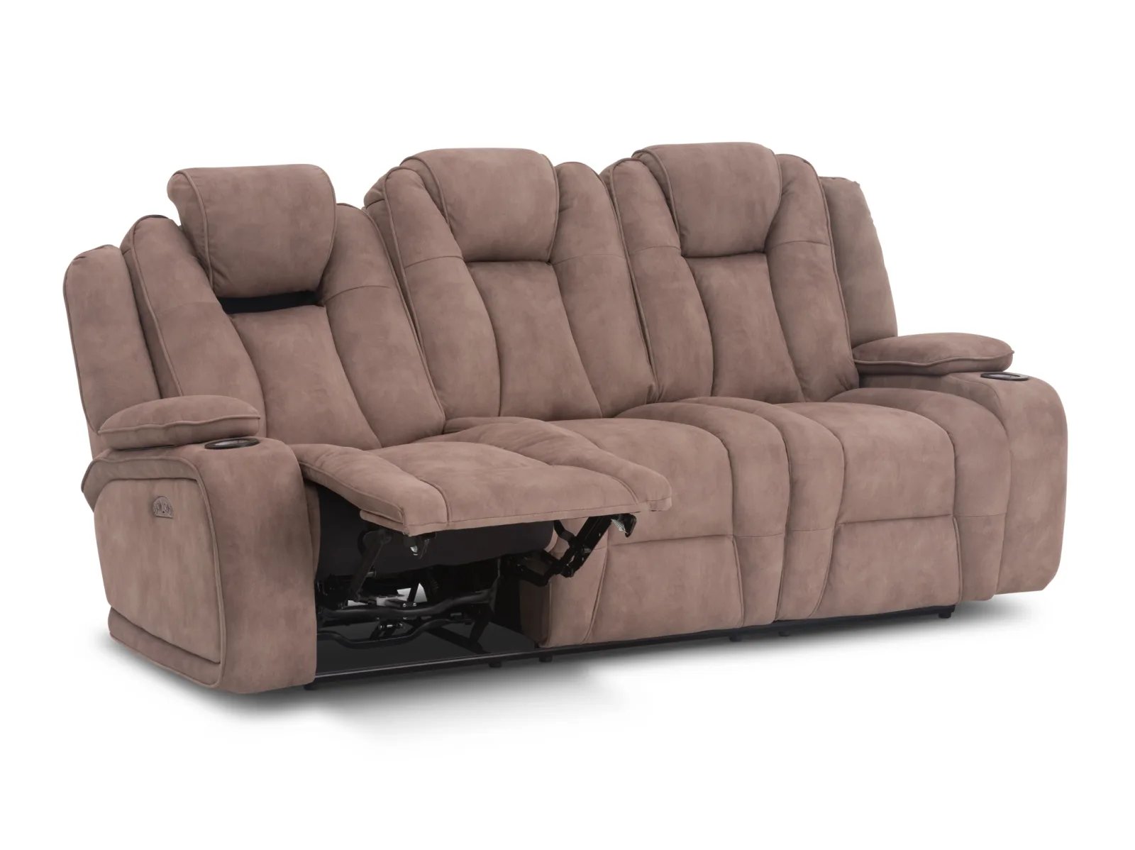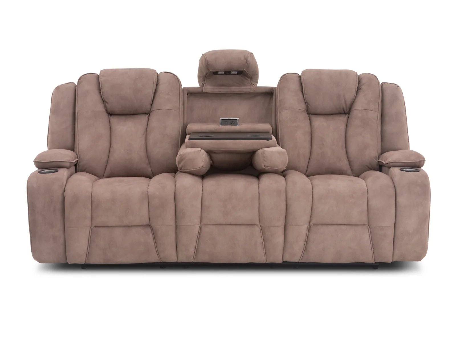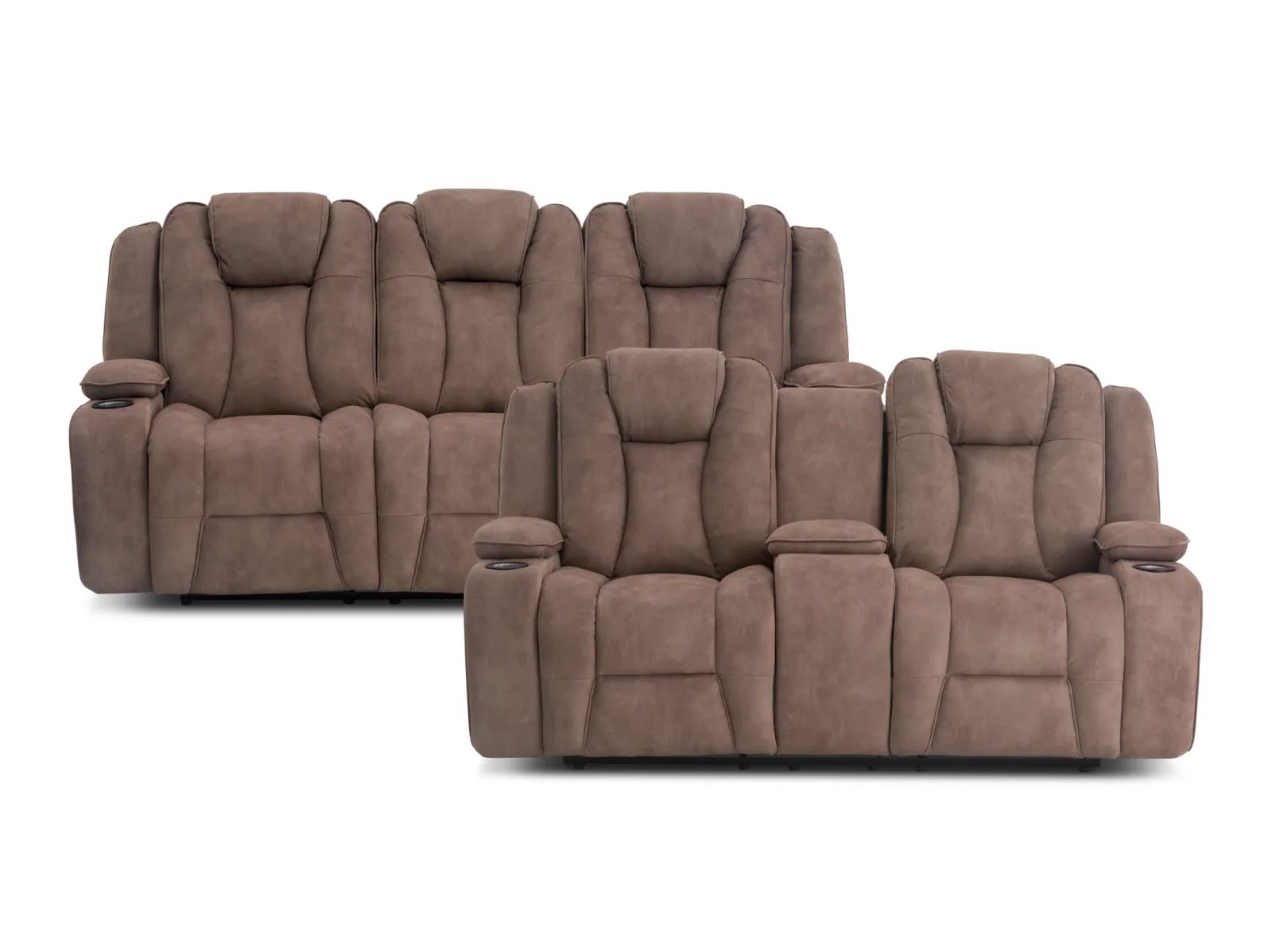 Contemporary style and modern function are packed into one with the Daughtrey 2 Piece Power Reclining Sofa Group. Constructed with a sturdy wood frame and upholstered in smooth hazelnut colored fabric, this reclining sofa set has all the bells and whistles you need for maximum leisure. Overstuffed with foam cushioning, this collection features power adjustable headrests, a drop-down table with lights, lighted cup-holders, USB chargers, center storage consoles, and hidden storage in the armrests and scooped seating. Push-button power reclining also makes comfort quick and effortless. You will love this sofa group in your home. Don’t miss out on true leisure. This group is complete with the Daughtrey Power Reclining Sofa and the Daughtrey Power Reclining Loveseat.