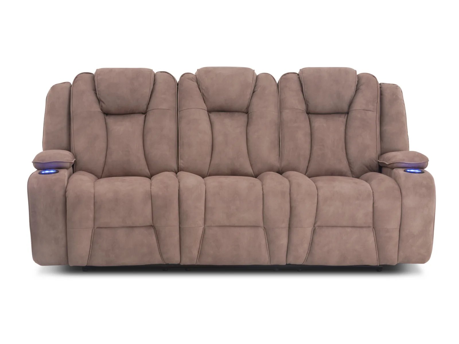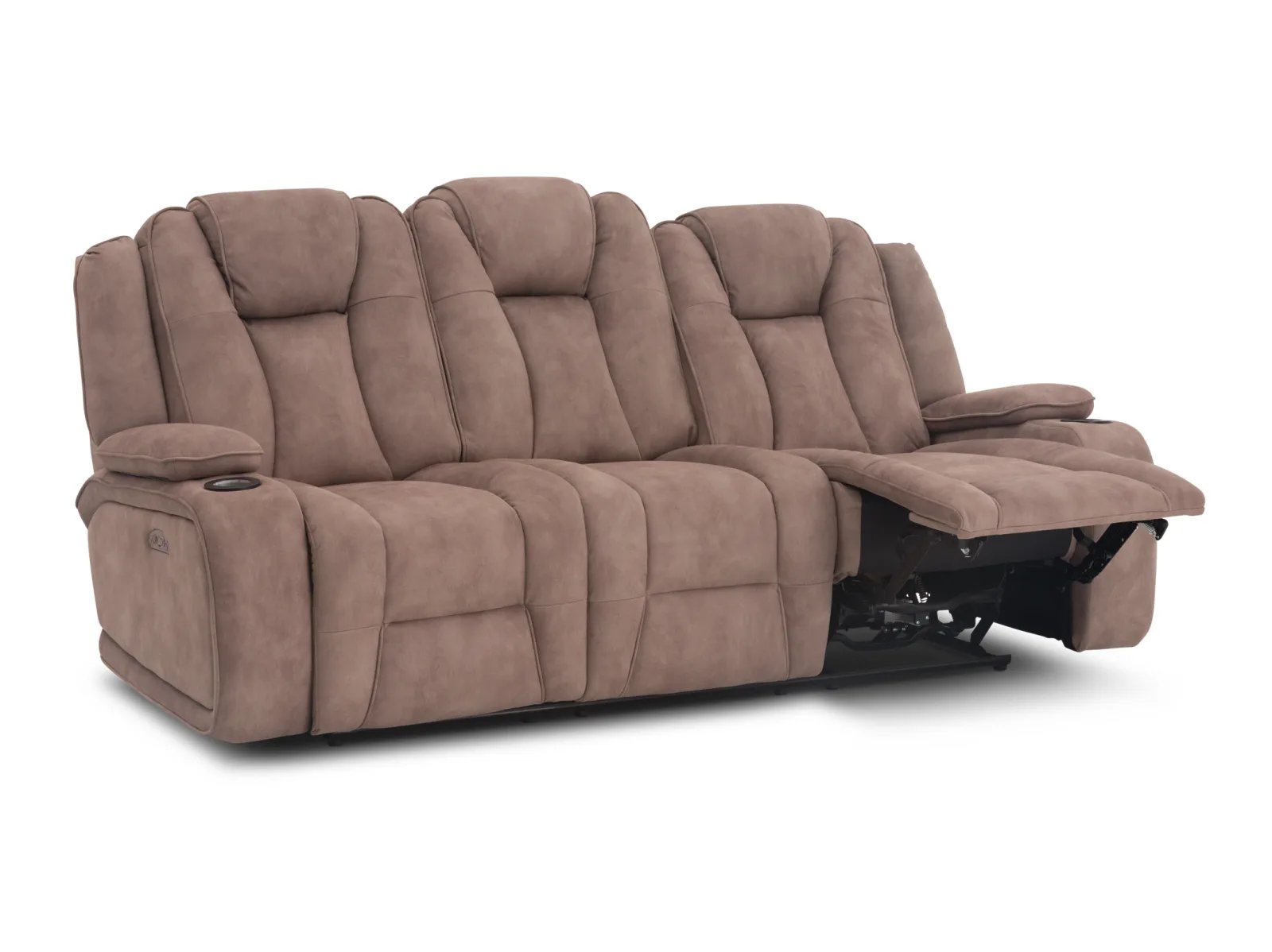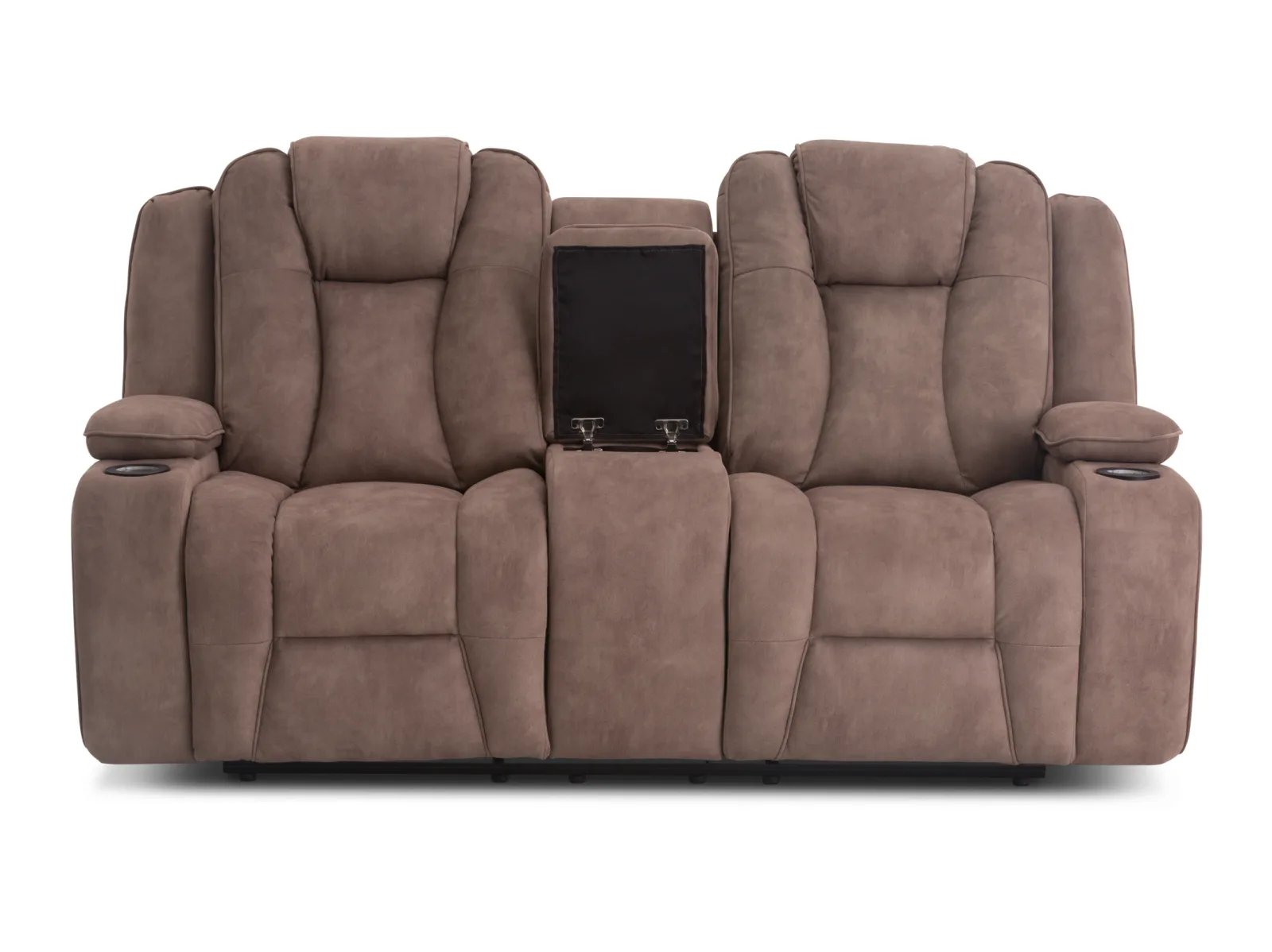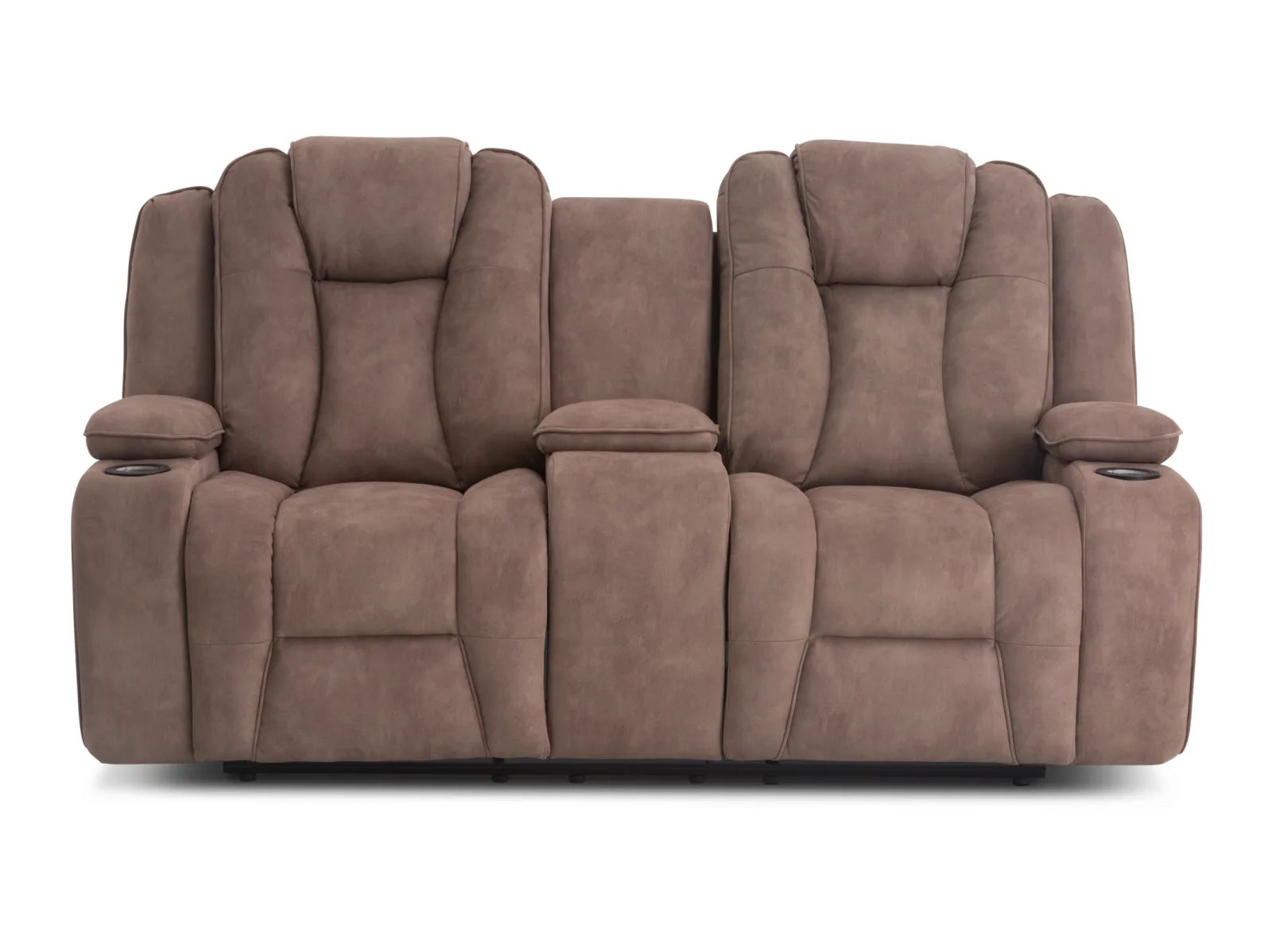 Contemporary style and modern function are packed into one with the Daughtrey 2 Piece Power Reclining Sofa Group. Constructed with a sturdy wood frame and upholstered in smooth hazelnut colored fabric, this reclining sofa set has all the bells and whistles you need for maximum leisure. Overstuffed with foam cushioning, this collection features power adjustable headrests, a drop-down table with lights, lighted cup-holders, USB chargers, center storage consoles, and hidden storage in the armrests and scooped seating. Push-button power reclining also makes comfort quick and effortless. You will love this sofa group in your home. Don’t miss out on true leisure. This group is complete with the Daughtrey Power Reclining Sofa and the Daughtrey Power Reclining Loveseat.