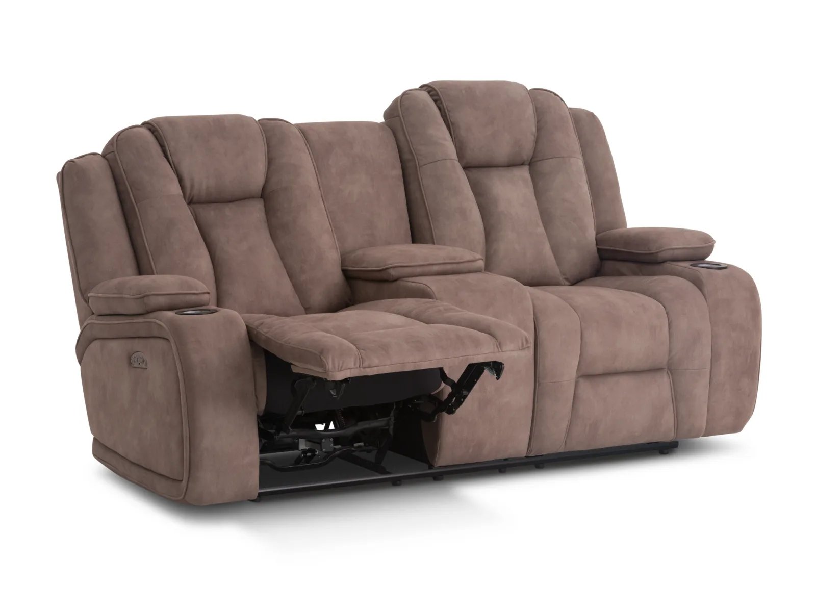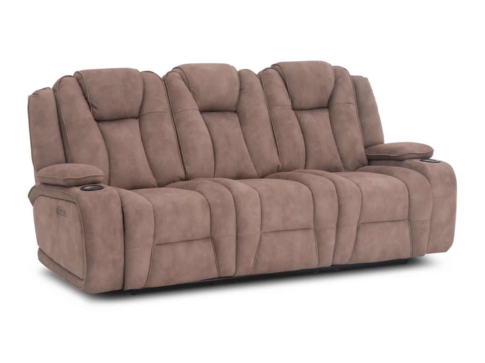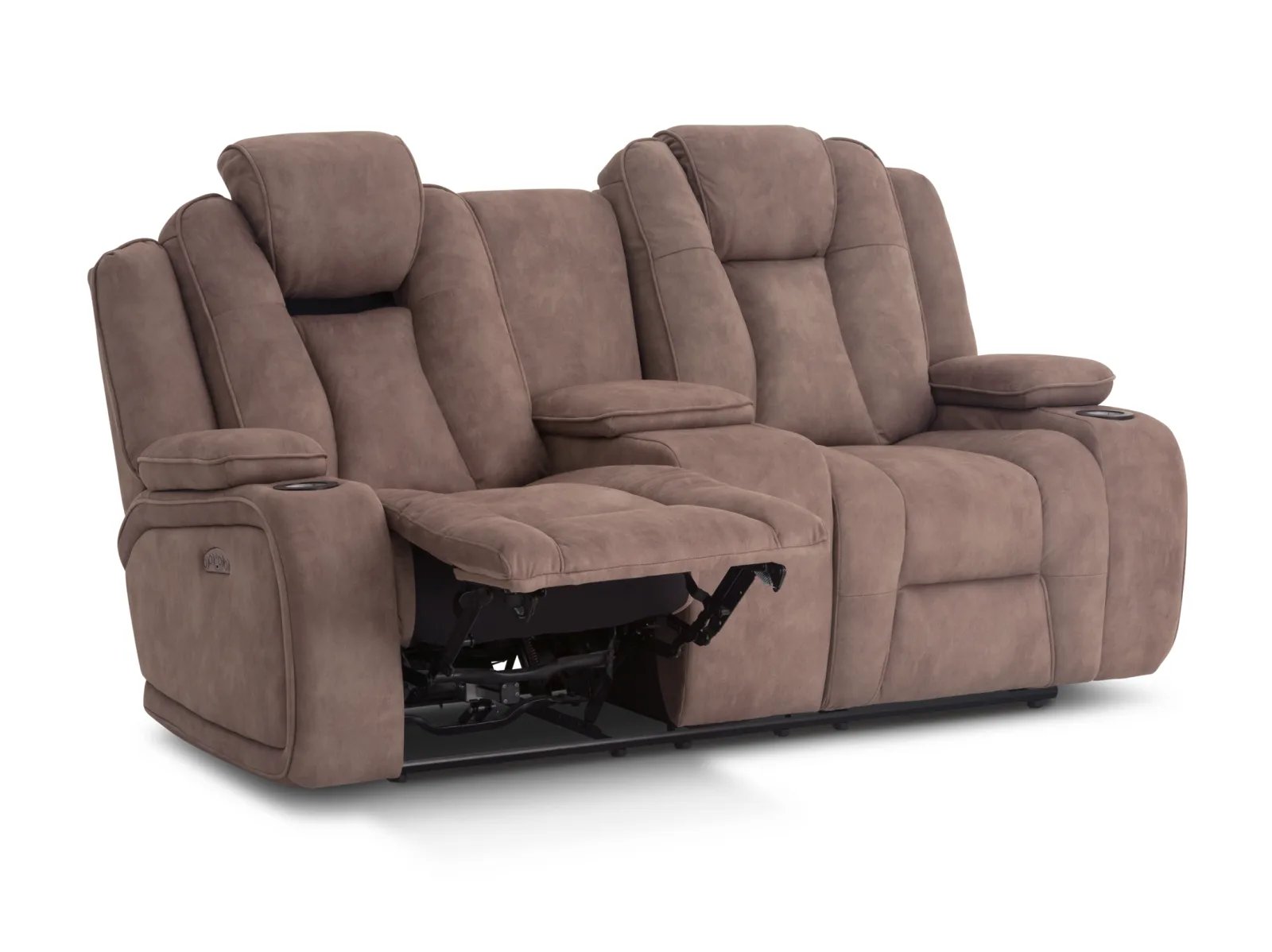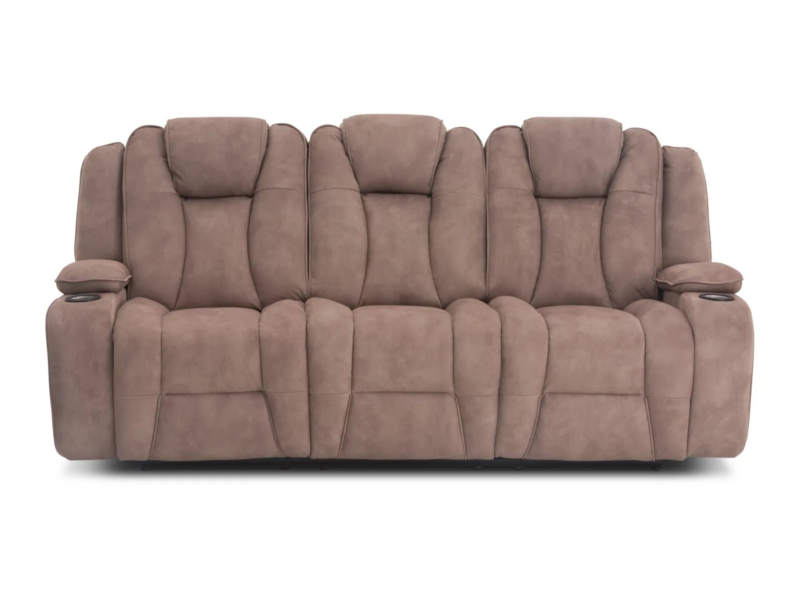 Contemporary style and modern function are packed into one with the Daughtrey 2 Piece Power Reclining Sofa Group. Constructed with a sturdy wood frame and upholstered in smooth hazelnut colored fabric, this reclining sofa set has all the bells and whistles you need for maximum leisure. Overstuffed with foam cushioning, this collection features power adjustable headrests, a drop-down table with lights, lighted cup-holders, USB chargers, center storage consoles, and hidden storage in the armrests and scooped seating. Push-button power reclining also makes comfort quick and effortless. You will love this sofa group in your home. Don’t miss out on true leisure. This group is complete with the Daughtrey Power Reclining Sofa and the Daughtrey Power Reclining Loveseat.