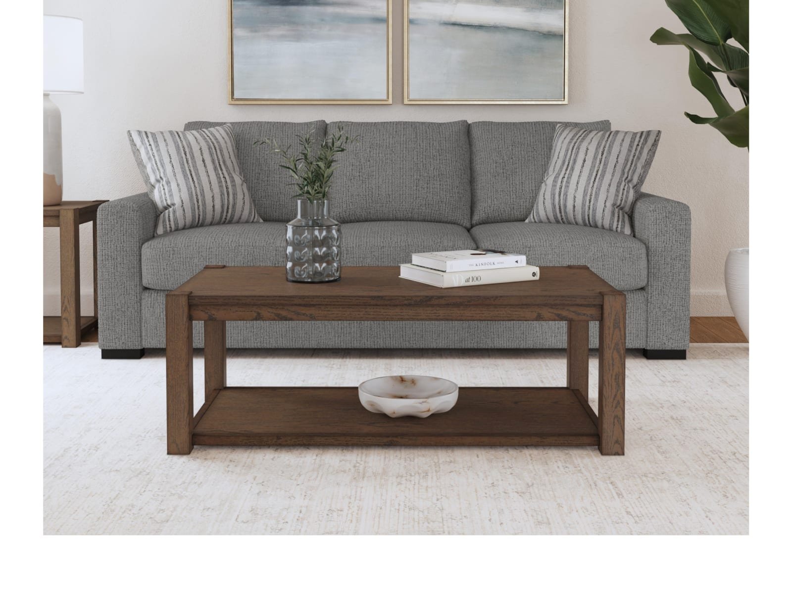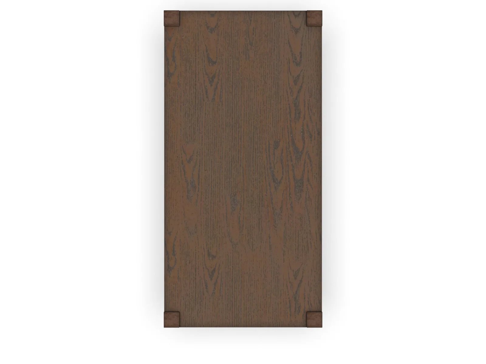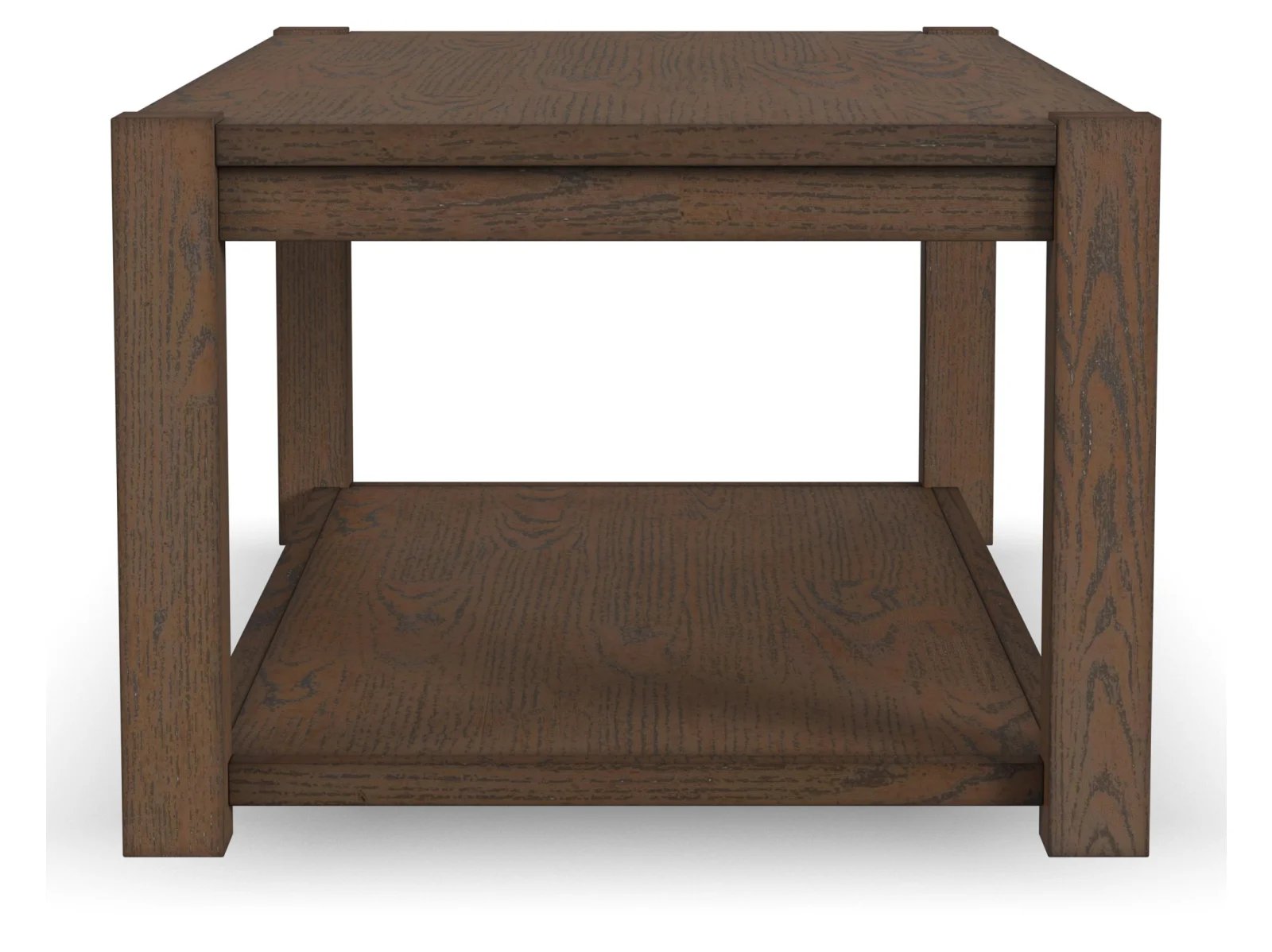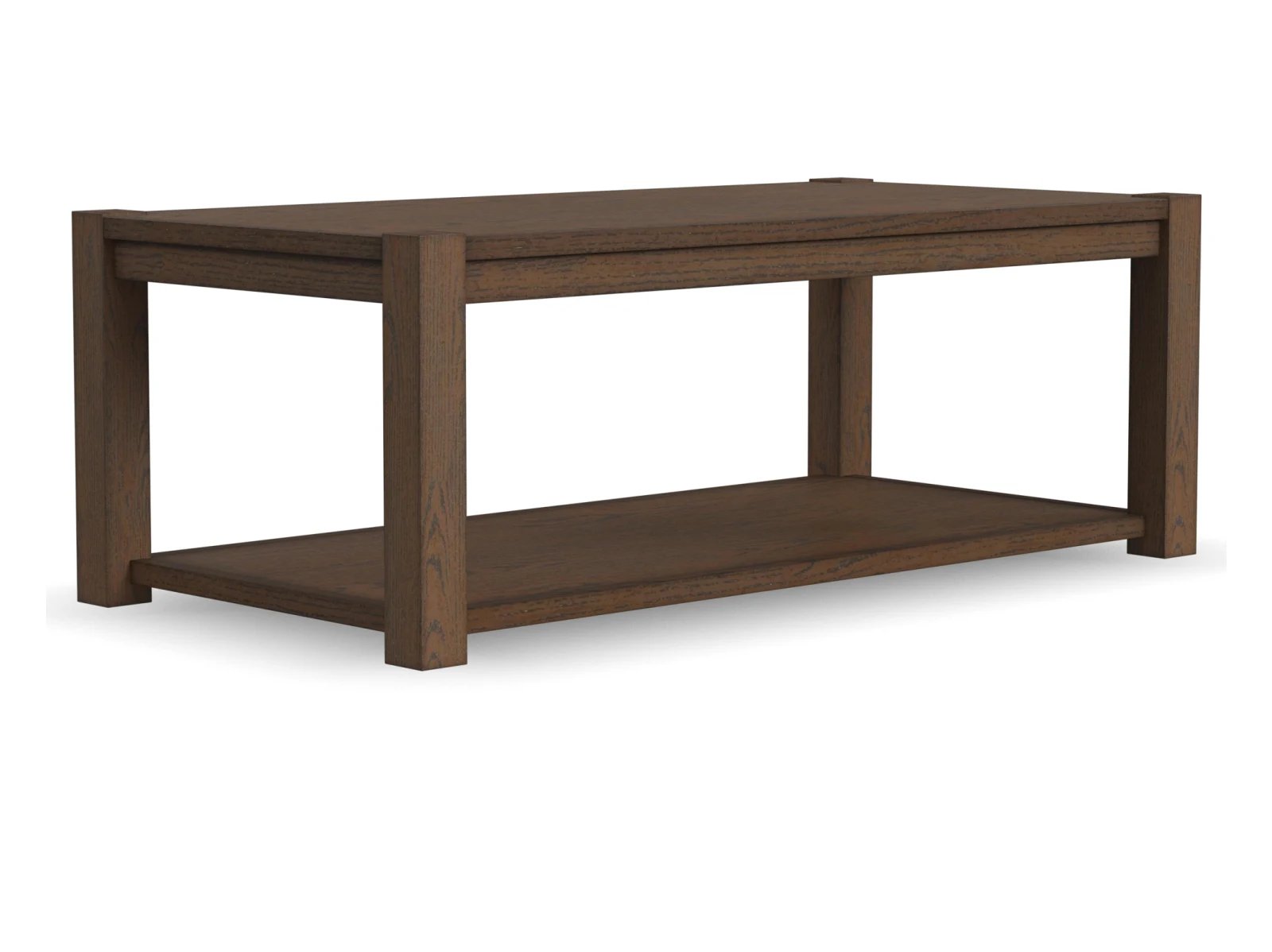 Enliven your living space with warmth and character with the Davis Coffee Table. Crafted from rubberwood solids and oak veneers, this table blends durability with hand-crafted appeal. Its transitional design boasts a rustic faux plank tabletop in a ravishing mid-toned brown finish. Its spacious lower shelving is perfect for decor or additional storage. Distinctive leg posts protrude from each corner, while hidden casters provide easy mobility without compromising style.