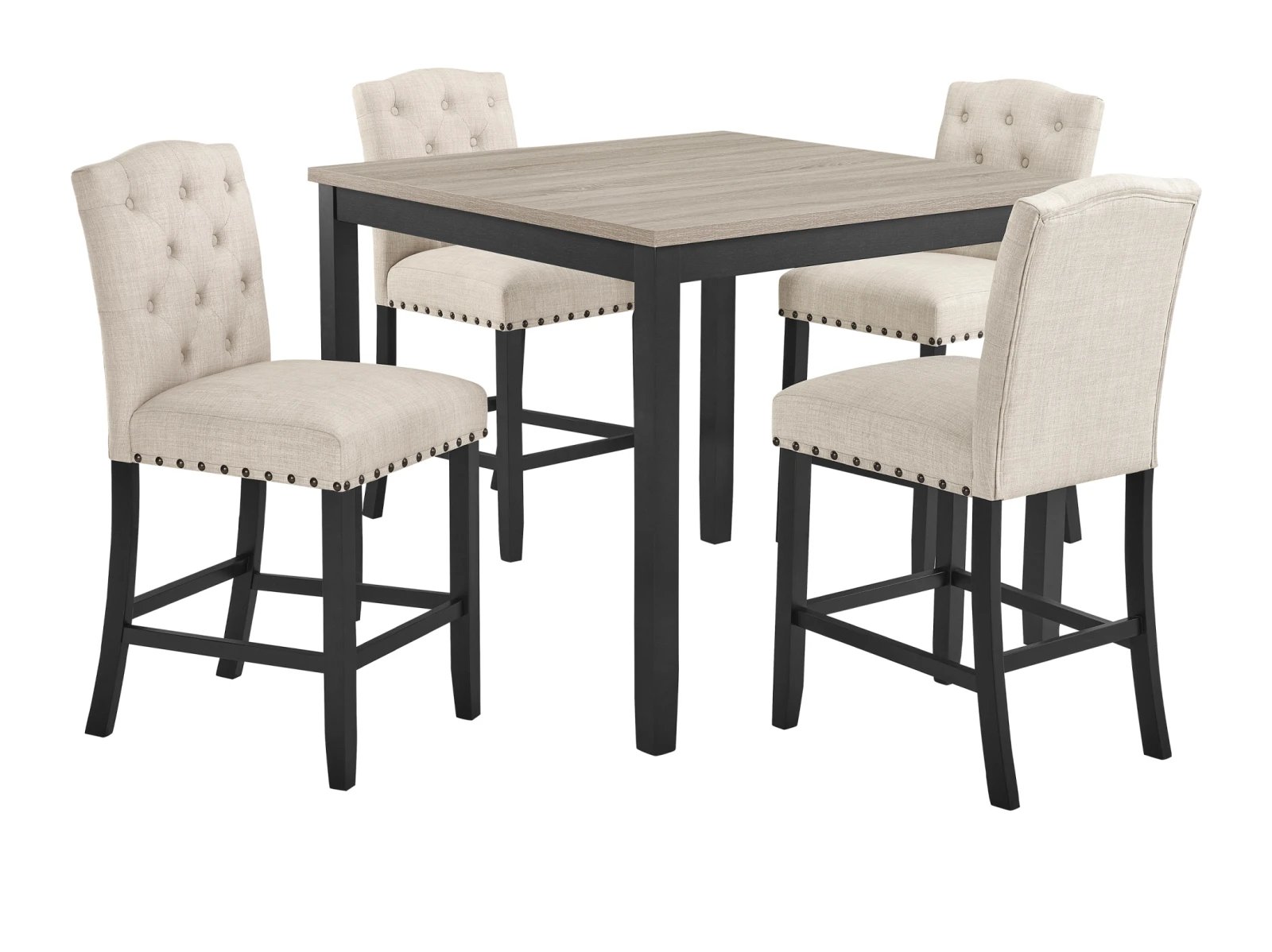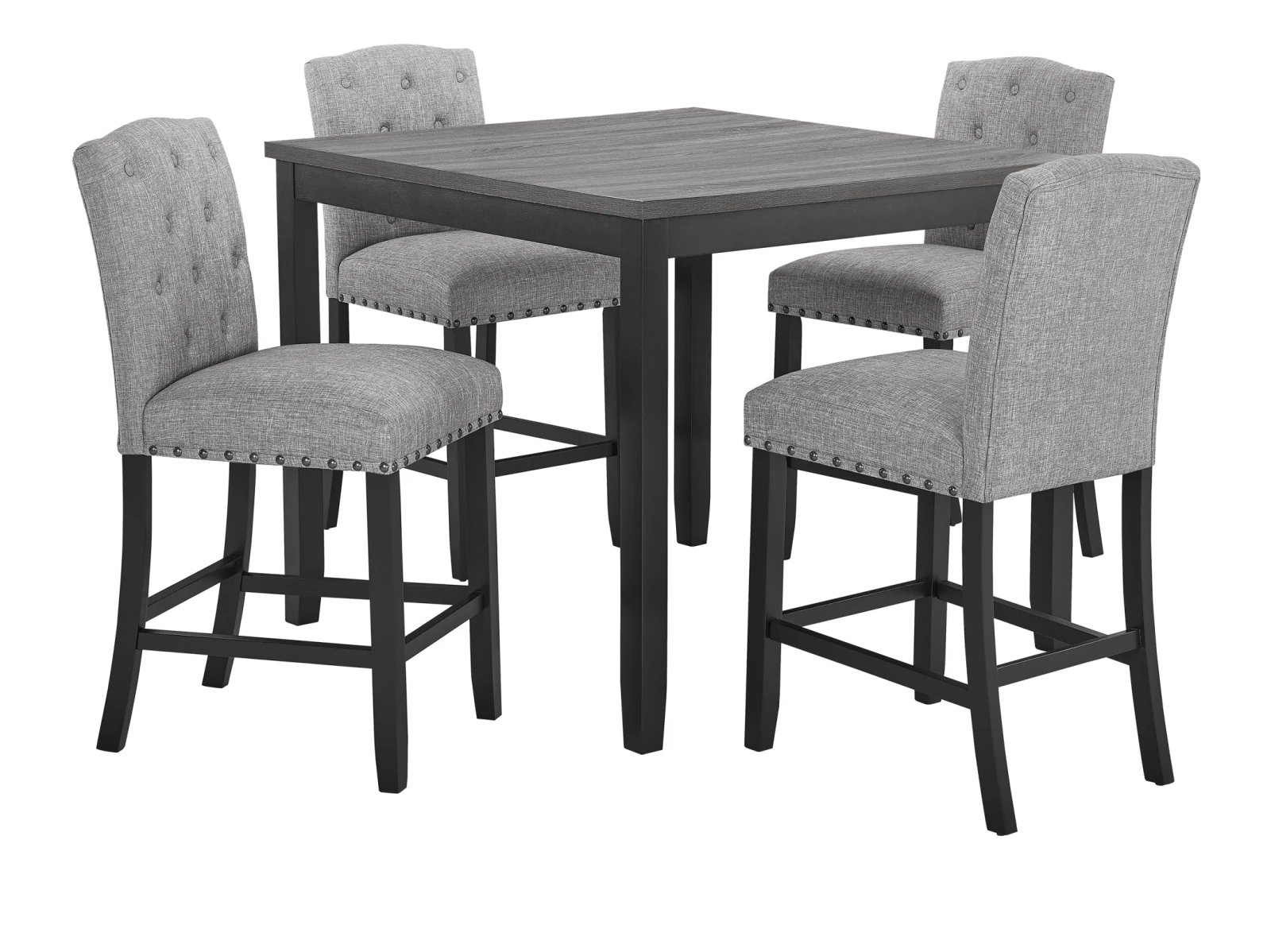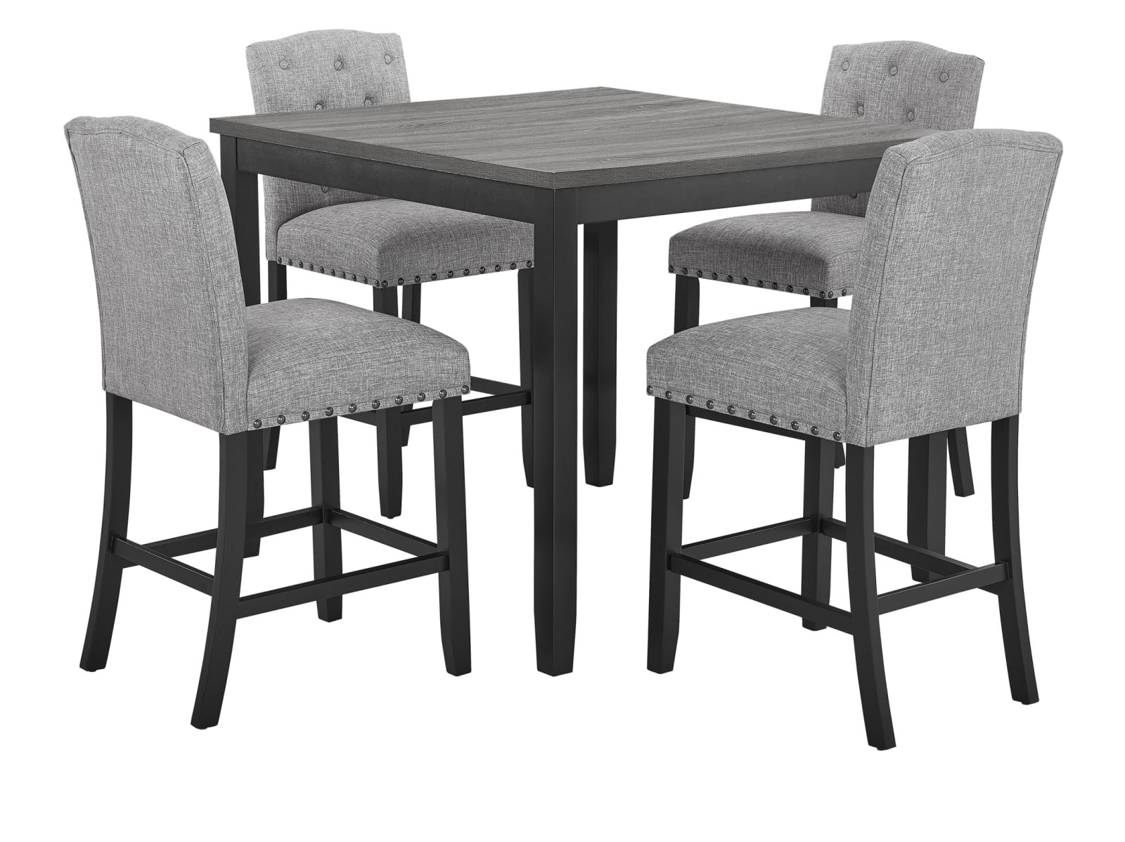 & Free ShippingTake home the sophisticated Denton 5 Pc. Counter Height Dining Set, where style and strength go hand in hand. Crafted from sturdy rubberwood and eco-friendly materials, this set features a resilient tabletop finish that stands up to heat, scratches, and spills, ensuring lasting beauty. The chairs offer plush comfort with high-density foam cushions wrapped in easy-care polyester, highlighted by chic nailhead trim and button tufting. Offered in two attractive color options, the Denton Counter Dining Set brings a fresh, inviting look to any dining area.