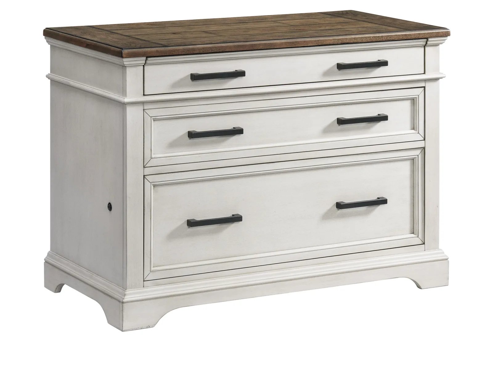 & Free ShippingStreamline your office storage with the Derry File Cabinet. Featuring a lateral design with one large drawer, one small drawer, and a locking top drawer, this cabinet keeps important documents secure while maintaining its farmhouse aesthetic. Built from oak veneer and select hardwoods, it pairs durability with style.