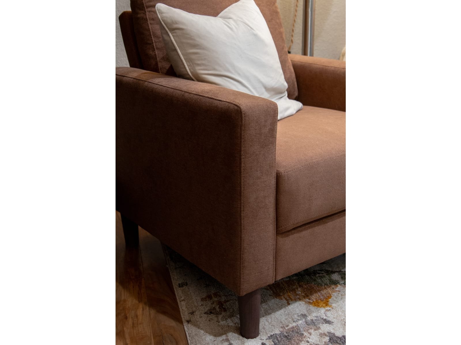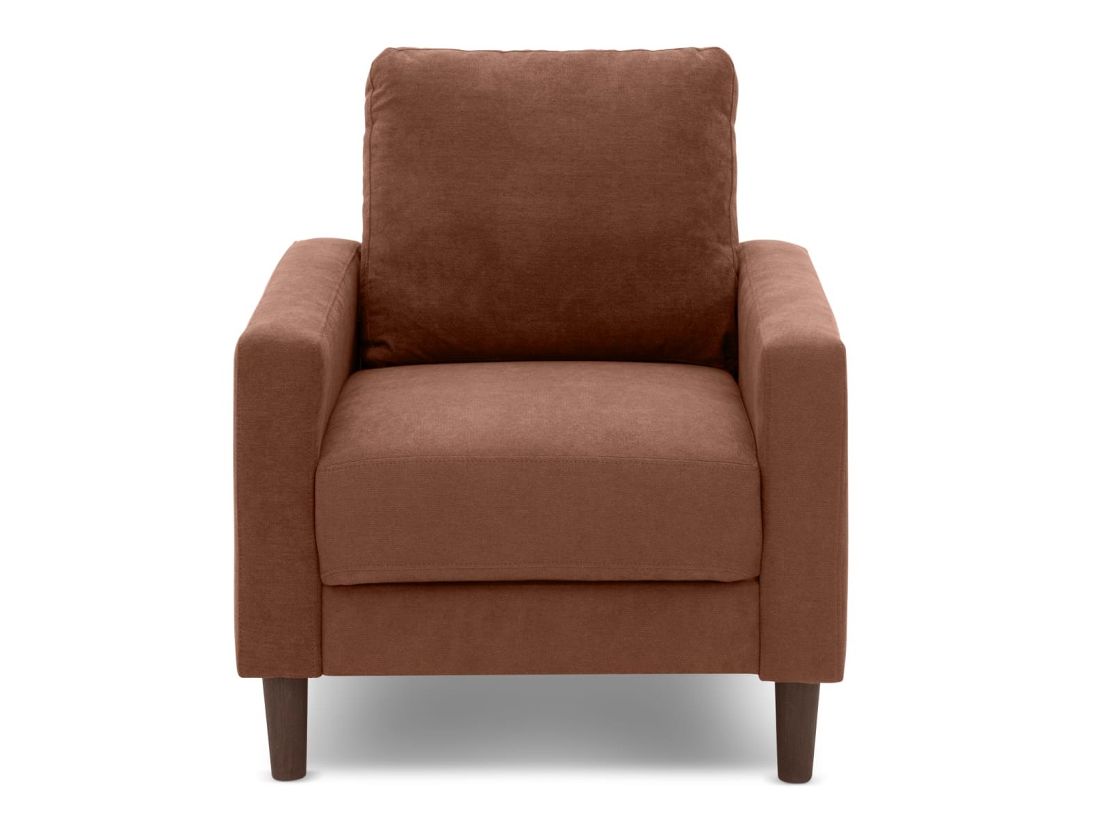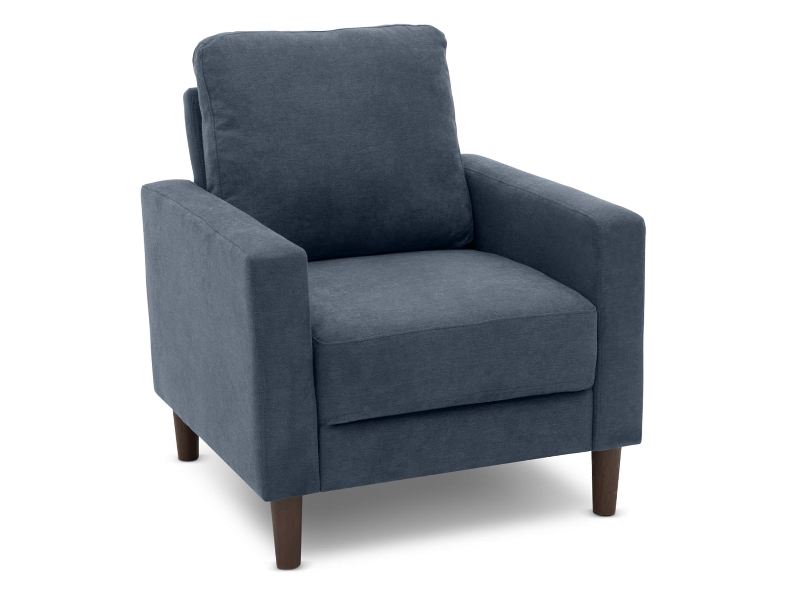 & Free ShippingPerfect for solo lounging or pairing with other living room seating, the Devon Chair boasts a modern silhouette that echoes its trend-forward vibe. Plush cushions and crisp track arms offer supportive yet sleek support, making this chair an ideal reading spot or your favorite chair for move nights. The soft, easy-care polyester fabric and choice of four fashionable hues complement any décor, while the dark faux wood legs add a touch of warmth and sophistication. Compact yet comfortable, the Devon Chair brings tailored charm to every corner.