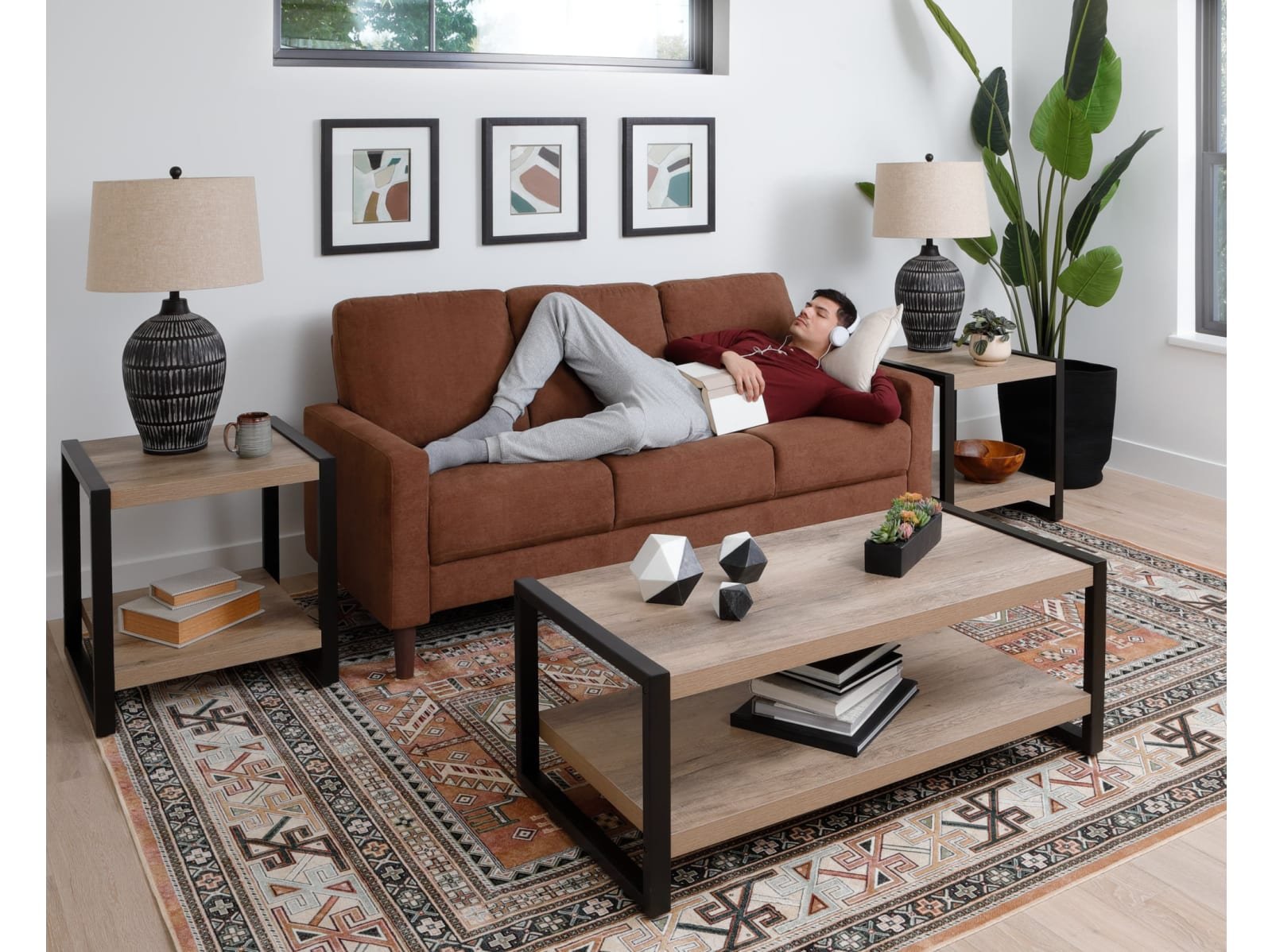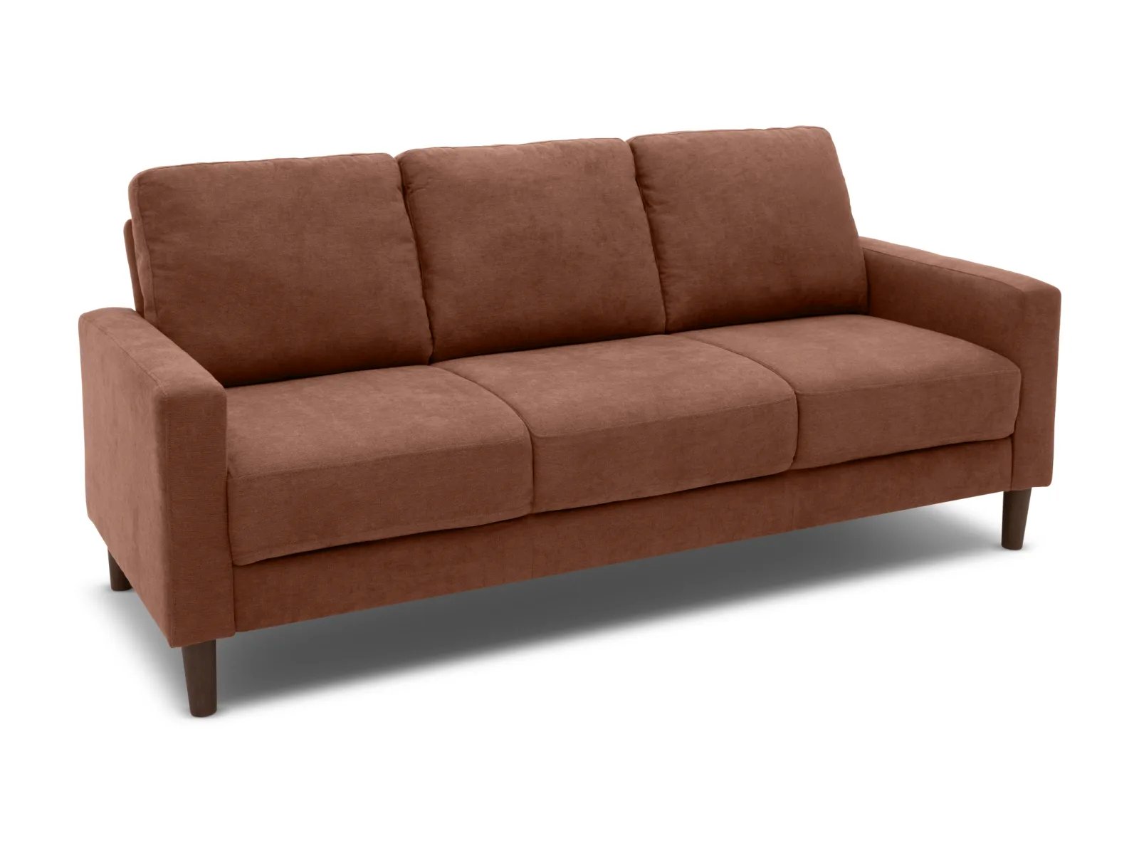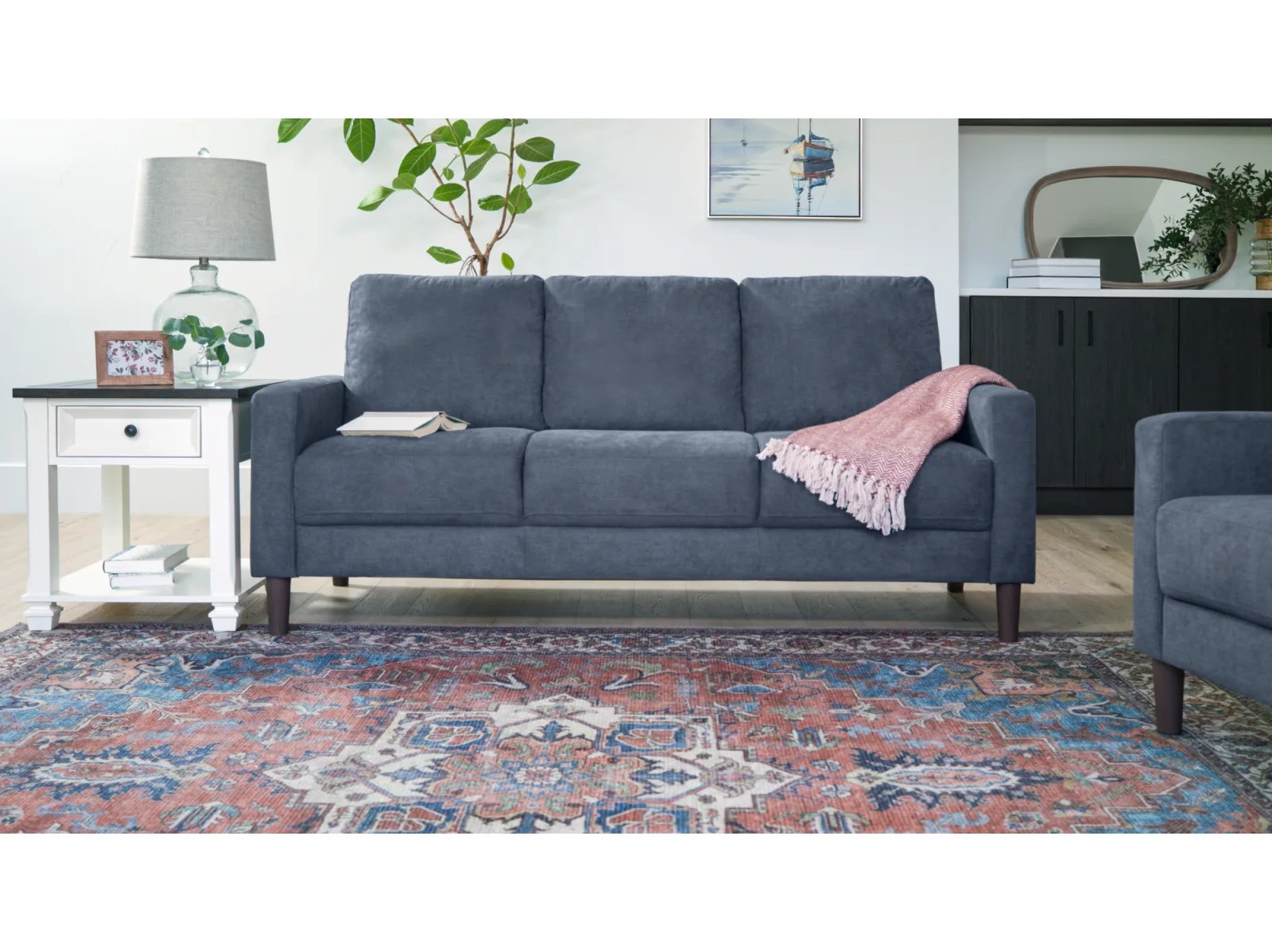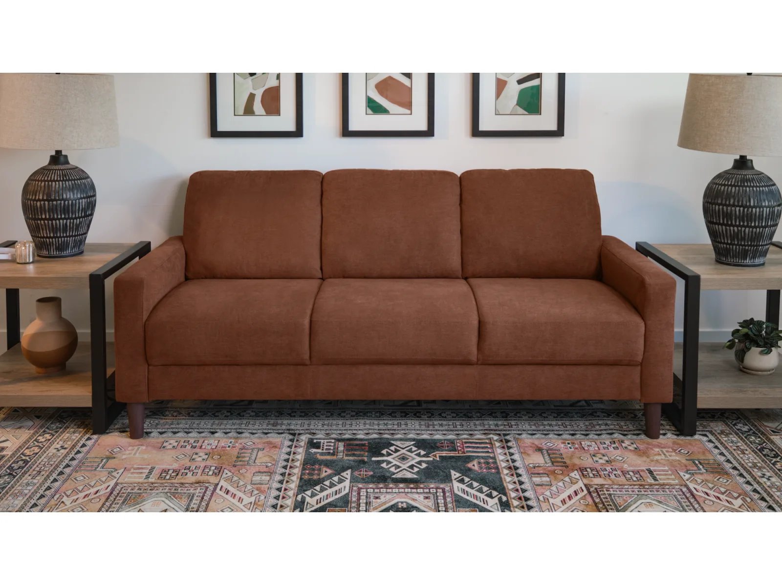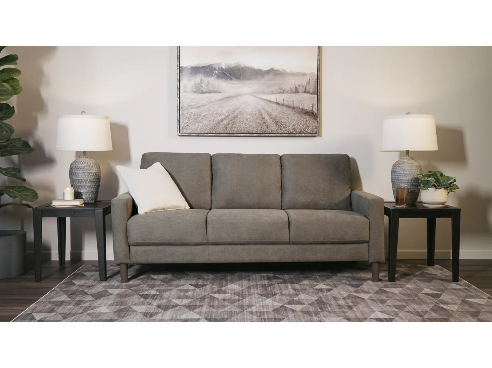The Devon Sofa infuses any living room with modern, transitional charm. Its clean-lined silhouette lends to tall back cushions and plush seat cushions, and accented with track arms for a sleek feel. The complementary palette and dark faux wood finished legs exude contemporary elegance, making this sofa an ideal anchor for both family gatherings and quiet moments. Wrapped in durable polyester upholstery, this sofa features a choice of four versatile colors—charcoal, stone, slate, and bronze—to perfectly suit your space. Designed to blend seamlessly with diverse lifestyles, the Devon Sofa delivers both style and lasting value.