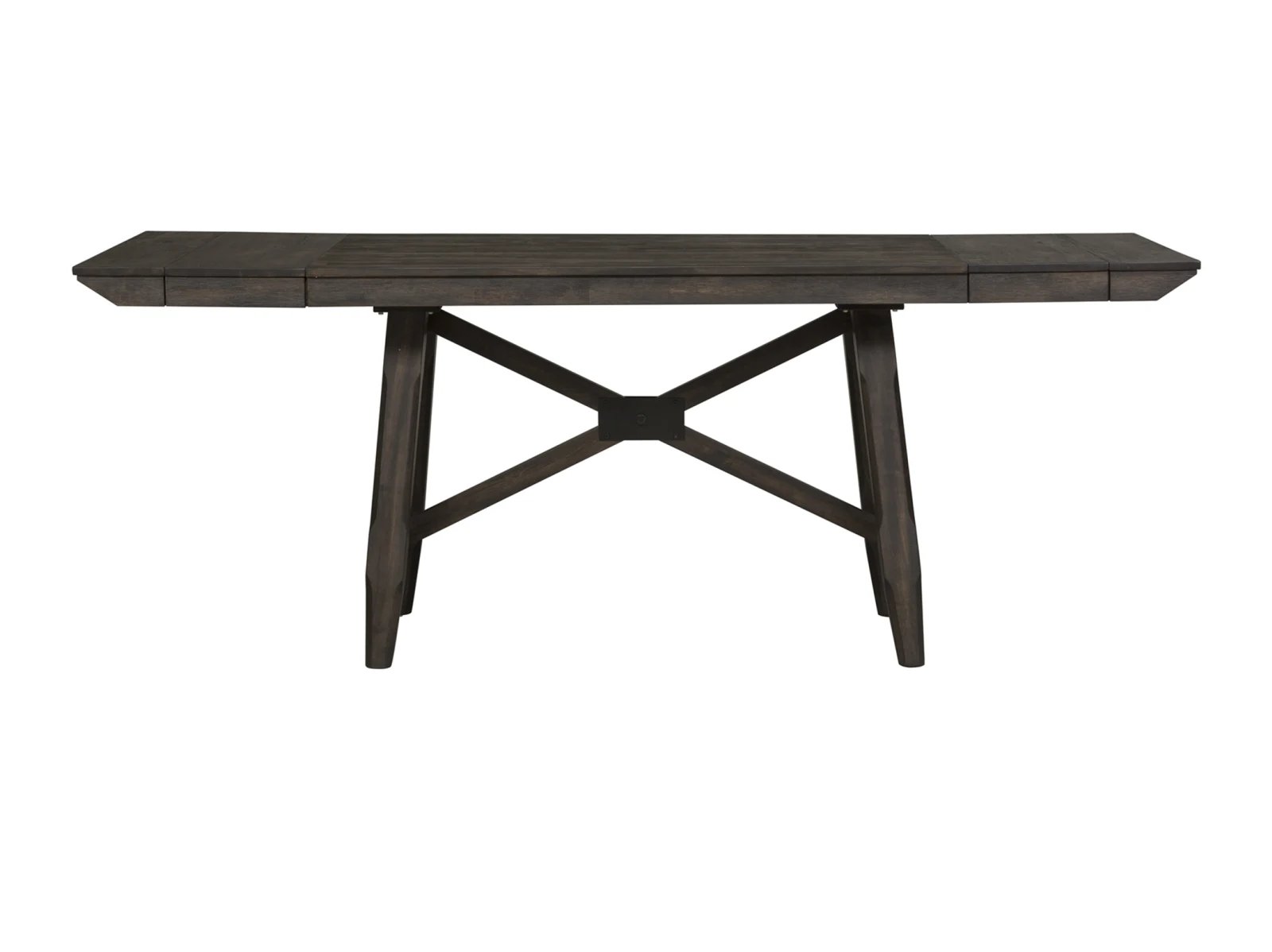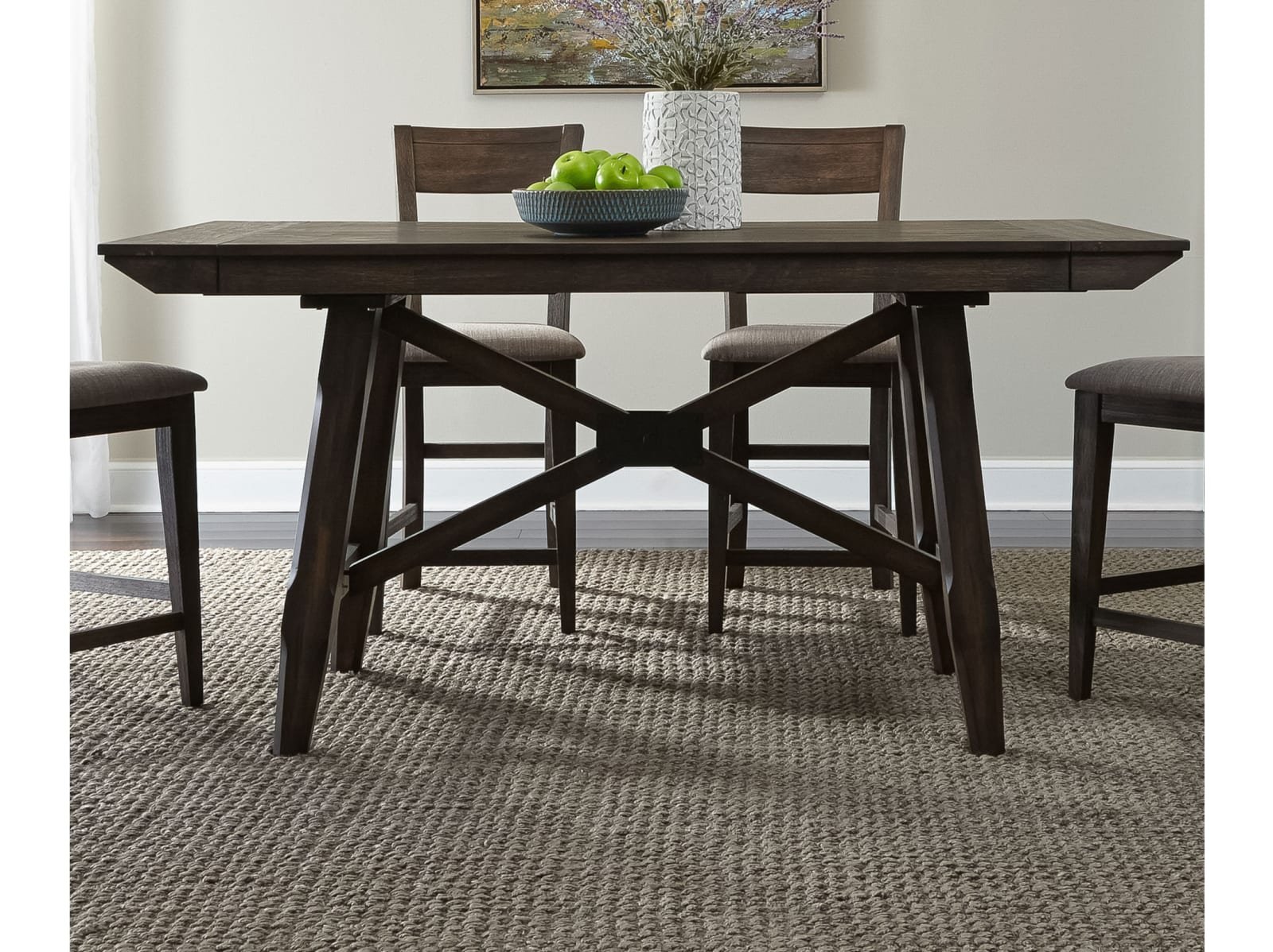 & Free ShippingGather the family around the Dothan Counter Height Table. Crafted of rubberwood solids and acacia veneers, this set consists of a gathering table base and top and features a dark chestnut finish with wire brushing, and two 12-inch leaves, one for each end of the table, to accommodate guests or a larger family, and an easy glide track system for added convenience. The Dothan dining group defines the rustic side of casual. The sleek design is optimal for any space.