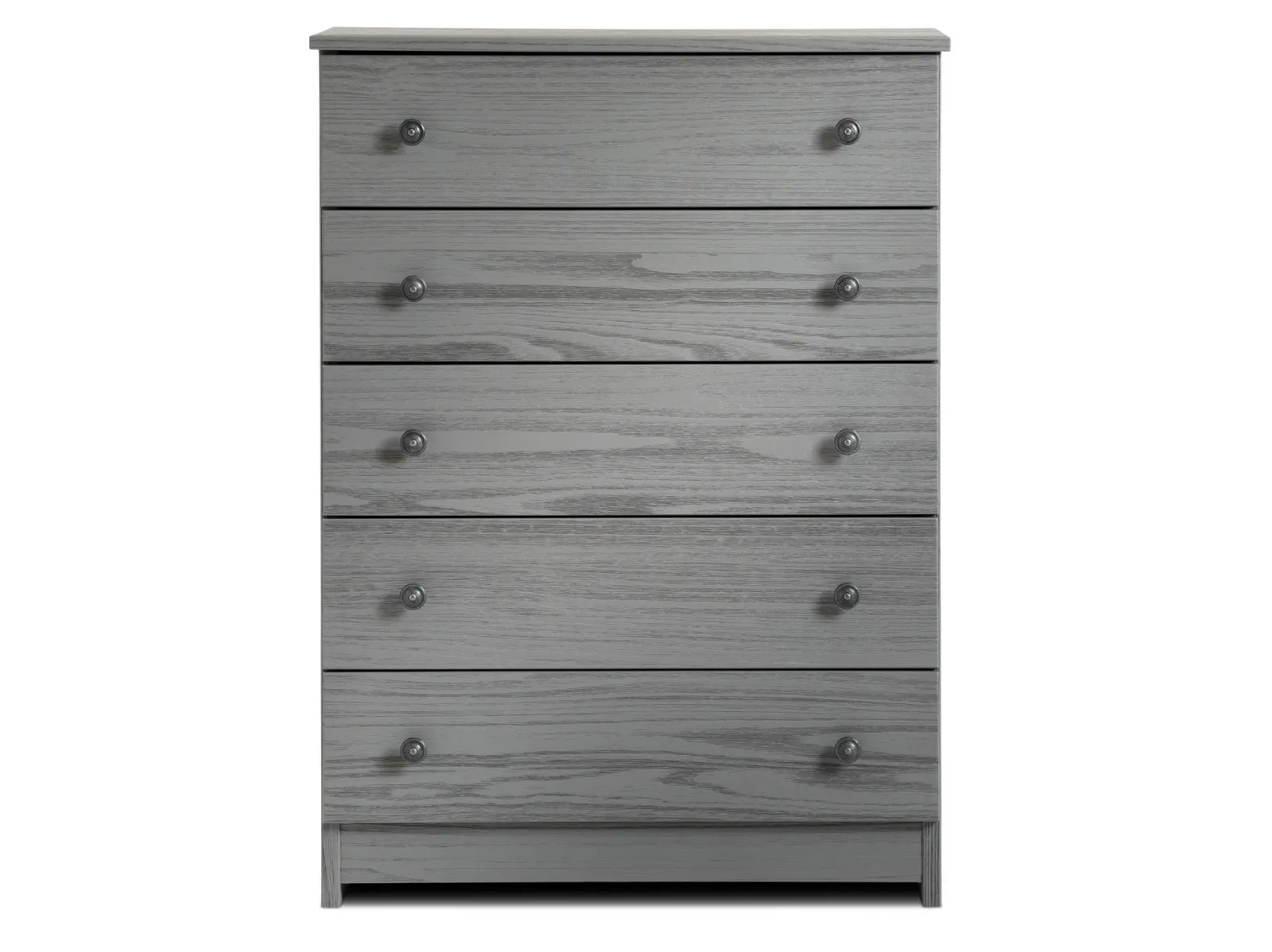 Add more drawer storage to your little one’s room with the Dove Chest. Crafted of solid pine in a wire-brushed, enhanced-grain dove gray finish, this furnishing features solid wood drawers with metal knobs and a recessed plywood back for sturdy construction. The Dove can fit clothes and more, and matches the style of almost any kid’s bedroom. Bring home this beautiful chest today.