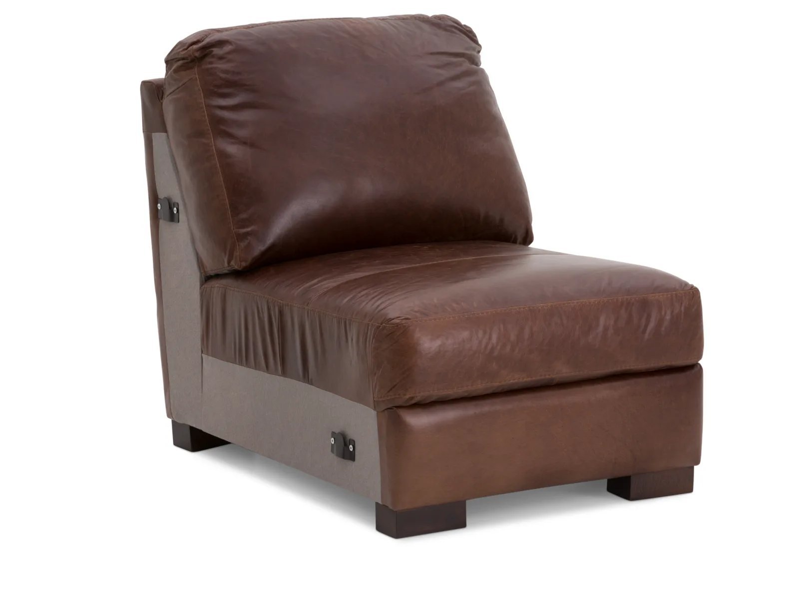 & Free ShippingThe Durango Armless Chair is a versatile seat that goes with the Durango Sectional! Upholstered in 100% Italian top-grain leather, this piece offers a sophisticated, contemporary look, plus its armless design allows for seamless integration with the other pieces of the Durango Sectional. With its large-scale, deep seating and comfy attached cushions, the Durango Armless Chair offers unrivaled relaxation that’s available in dark gray or chestnut brown colors.