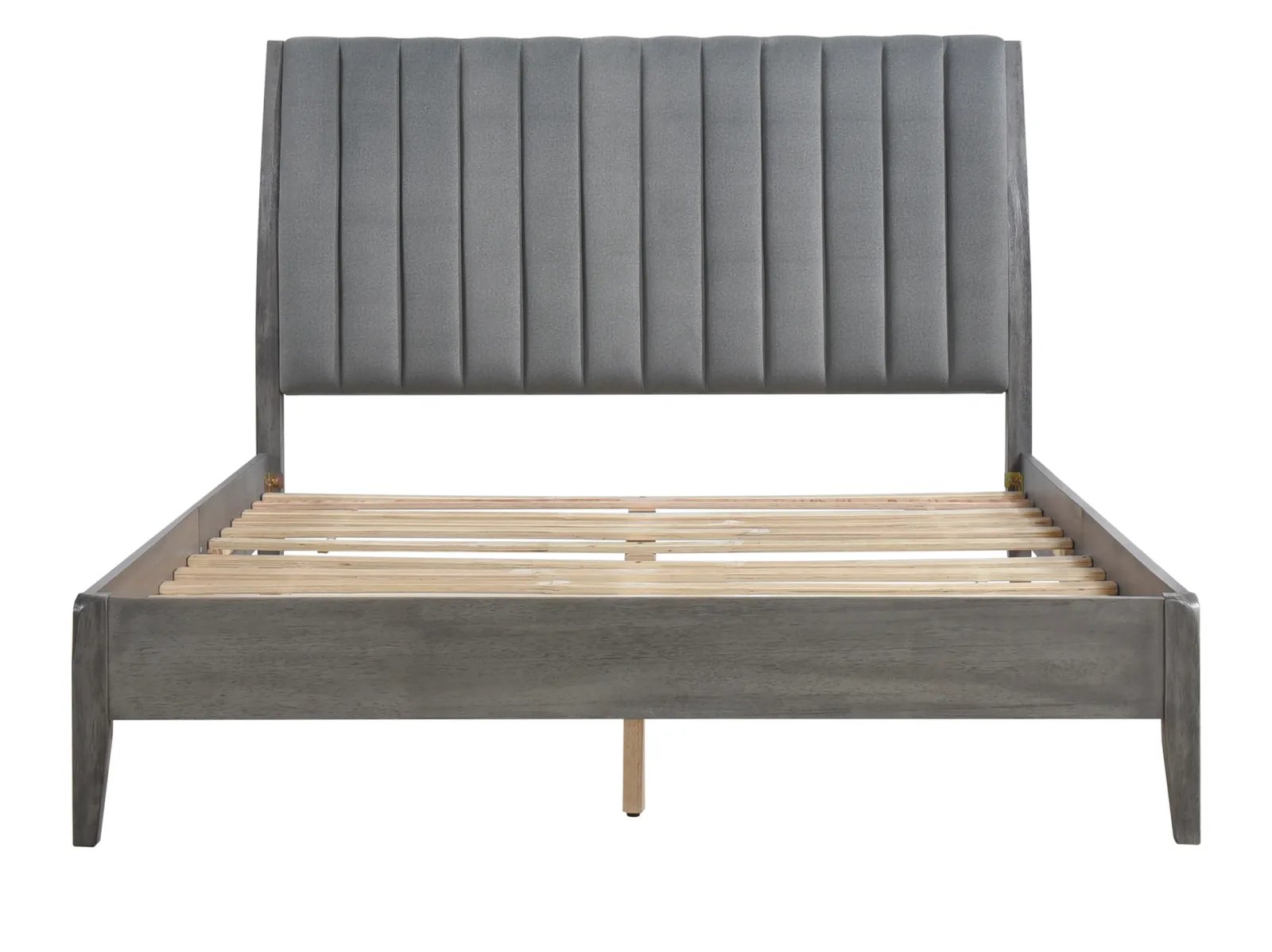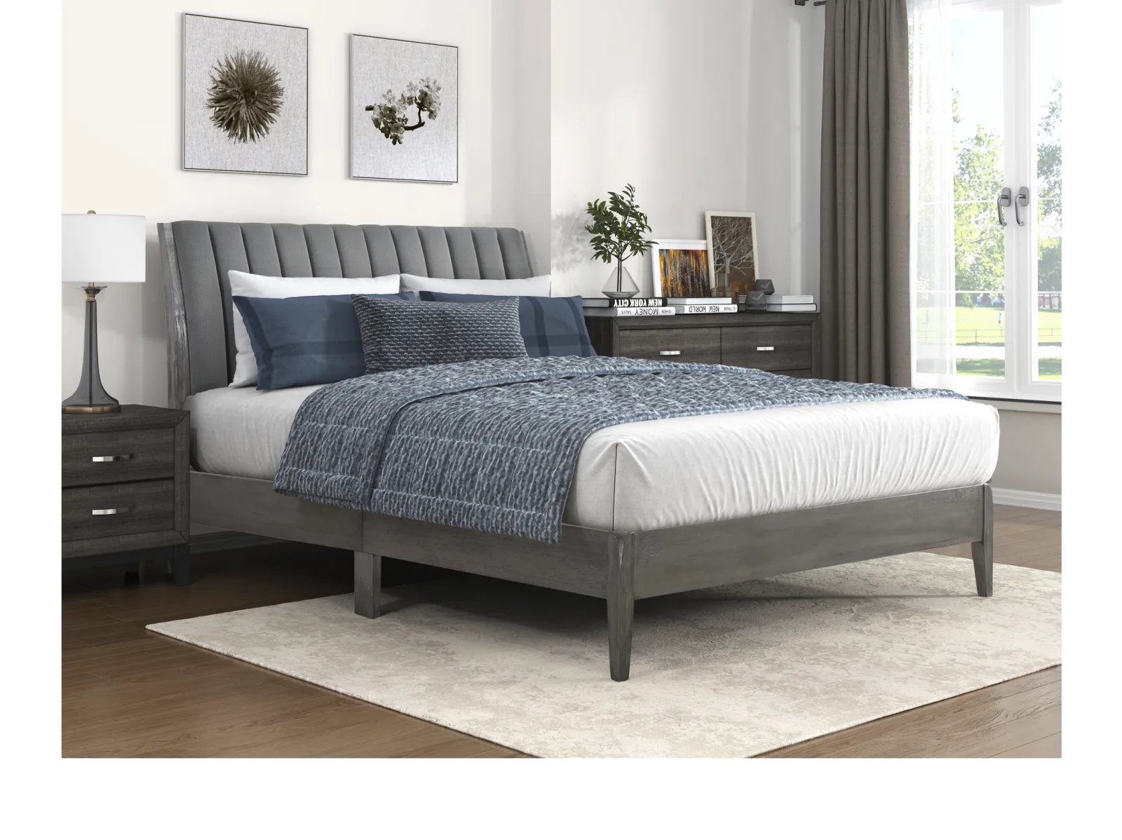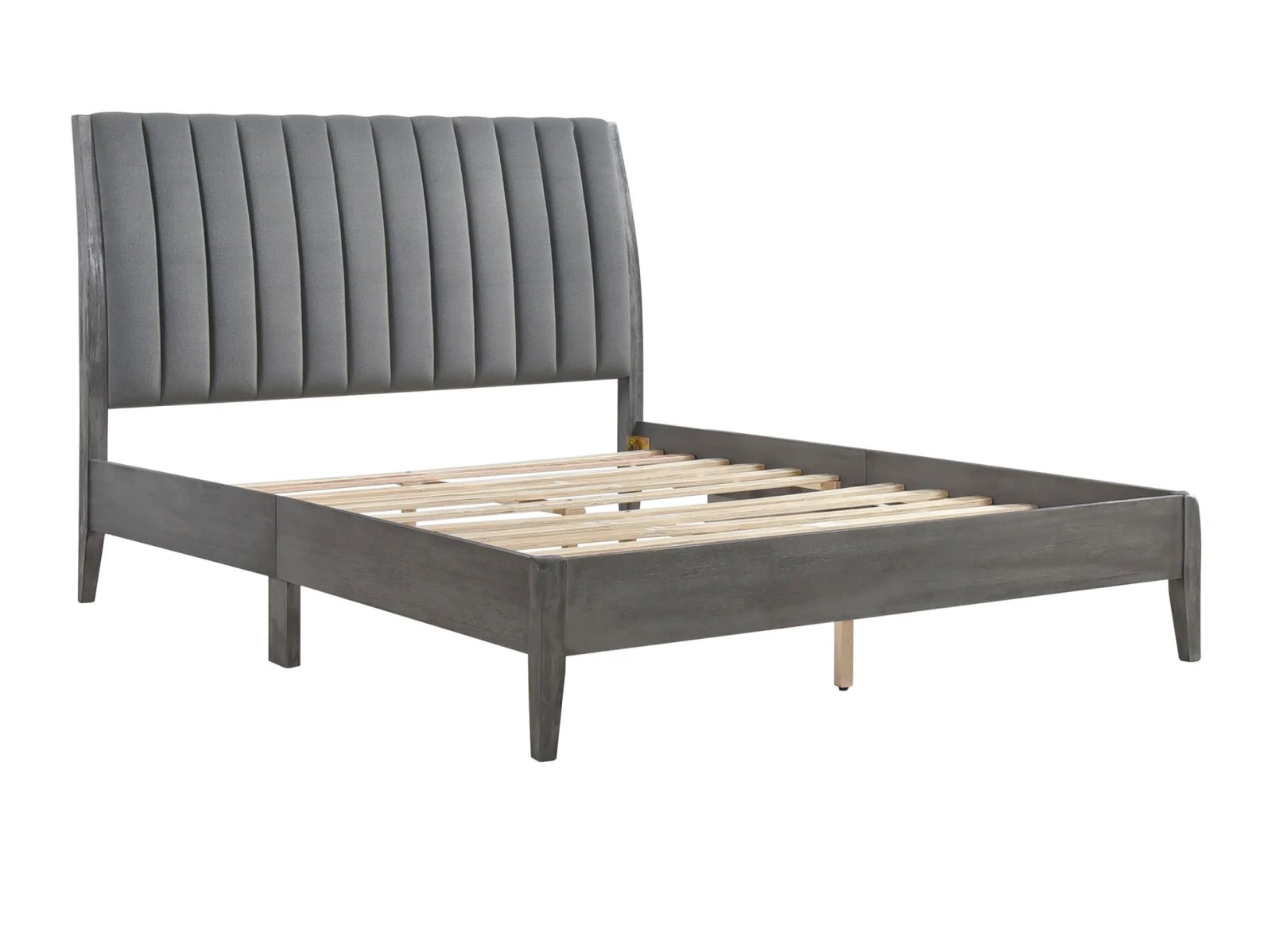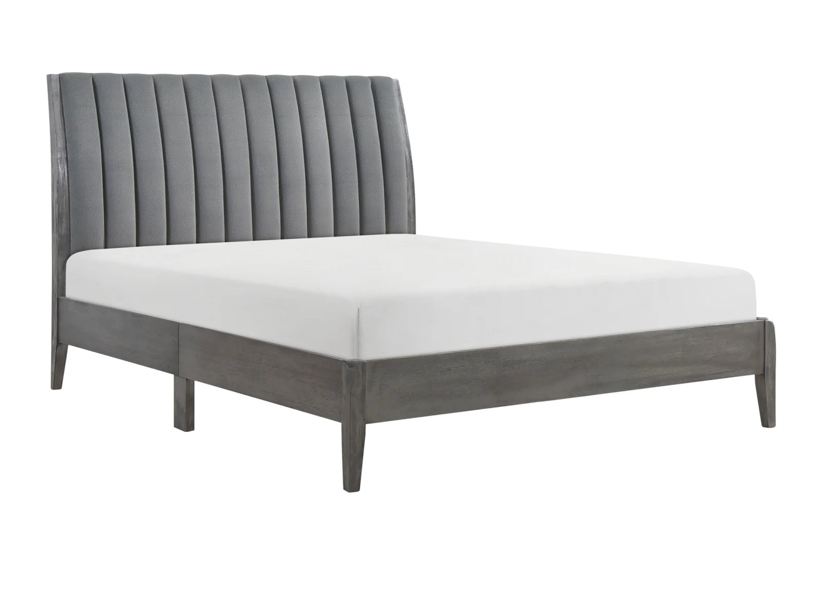 Designed to create a stylistically versatile bed option, the Emilia Collection is a subtle modern addition to your bedroom’s trend-forward look. Gray velvet fabric upholstery covers the vertical channel-tufted design of the queen headboard, providing a neutral complement to your decorative bedding. The wood frame of the bed’s footboard and rails features a gray finish. The platform construction of the bed doesn’t require a box spring.