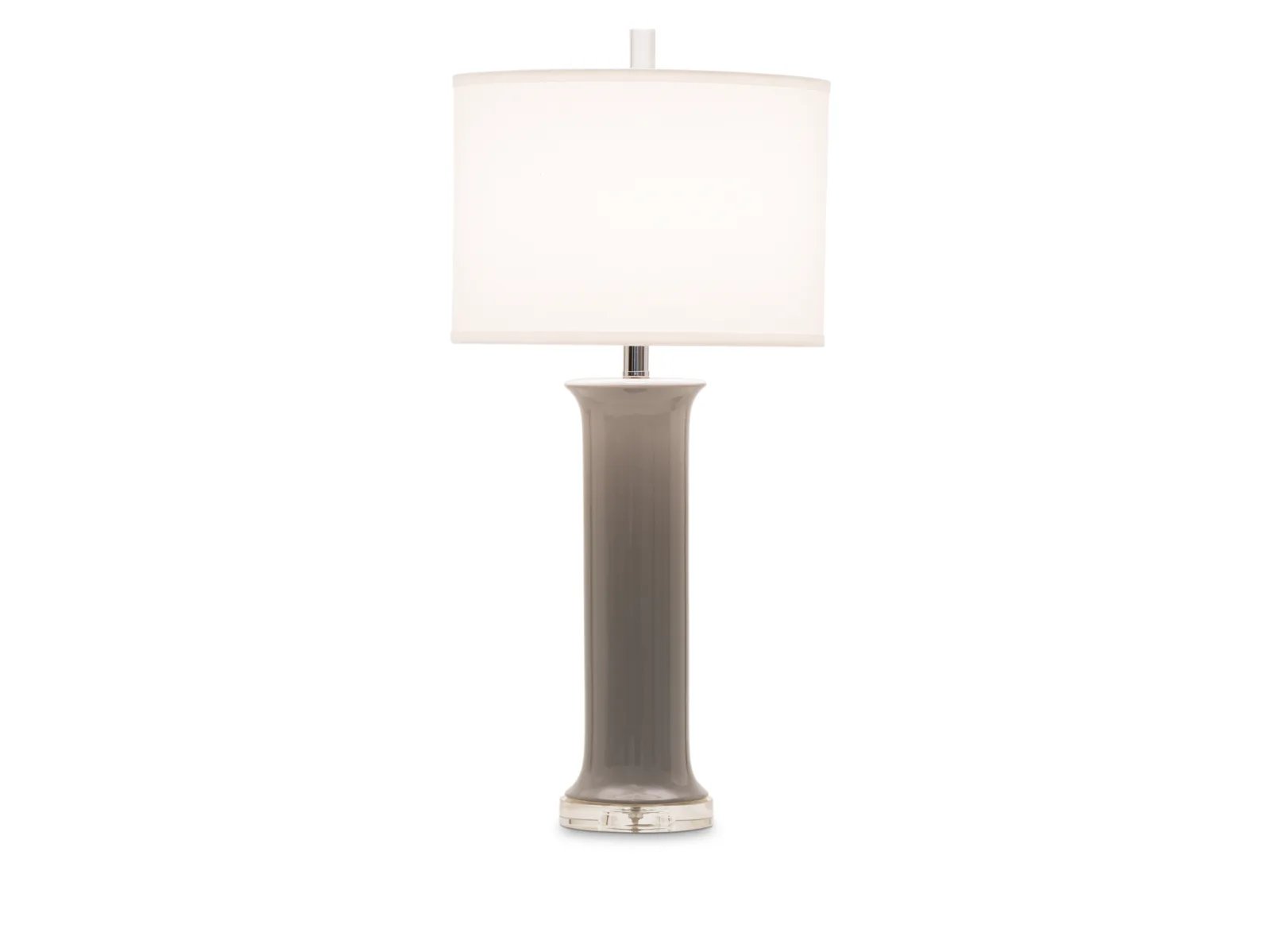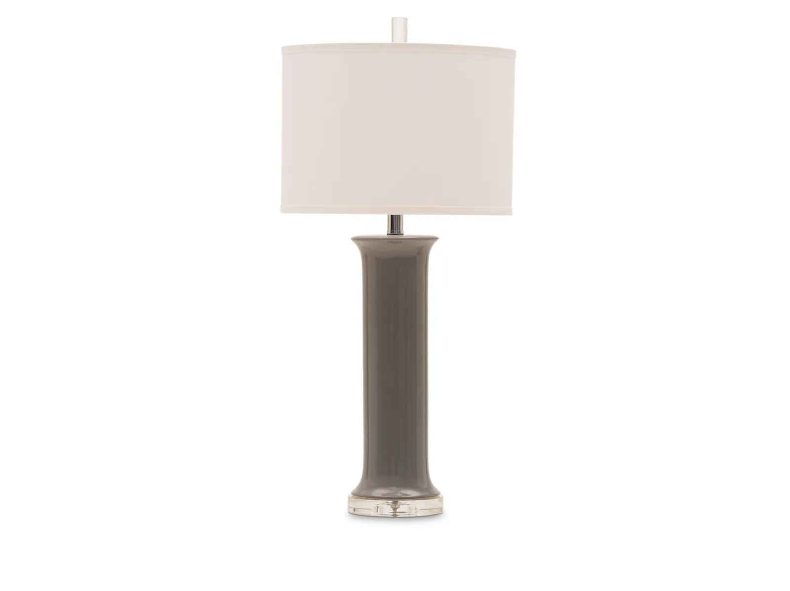 Modern and contemporary, the Emma Ceramic Table Lamp is the perfect accent piece to any room. Emma's architectural column base of smooth grey ceramic and chromed steel, paired with a striped fabric shade in soft muted colors, make it a bold functional beauty. Whether in a pair to flank a sofa, or on it’s own, the Emma Ceramic Table Lamp provides more than just a light source and will brighten up any room!