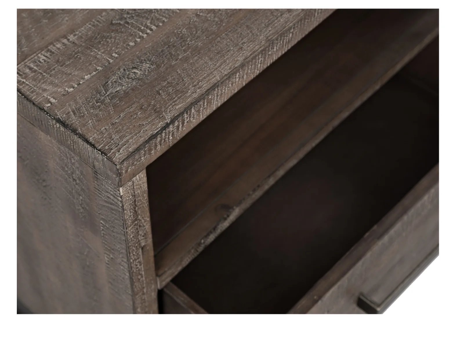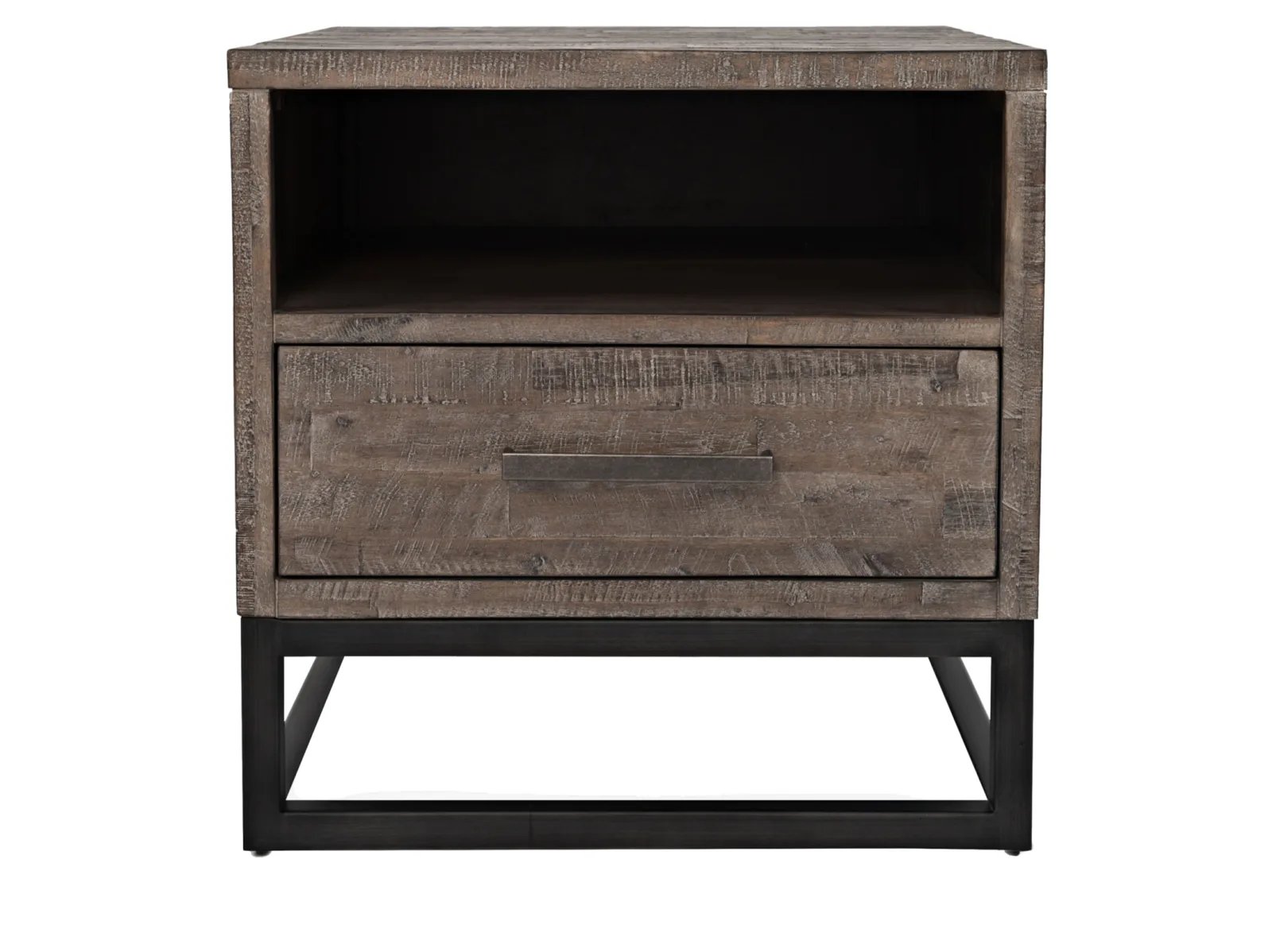 & Free ShippingJofran’s Esterby collection is an attractive balance of natural and industrial materials. Distressed wood tops with solid metal bases create a look that is easily at home in living spaces. This end table features one drawer and open storage.