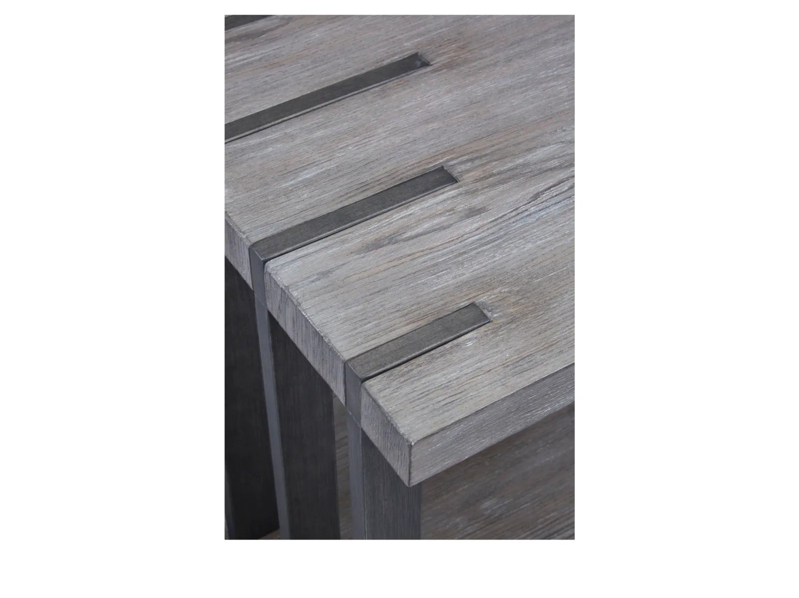 & Free ShippingFunctional, stylish and versatile the Everson table collection offers a new twist on refined rustic styling. Designed with plenty of room for storage and display, its eye-catching silhouettes boast an intriguing mix of wood and metal elements that make a bold statement in mixed materials. Crafted with open sides and vertical metal supports, its industrial charm is brought to life with a Weathered Gravel finish over primavera veneers and metal accents in Satin Bronze. Seamlessly marrying wood and metal to stunning effect, this distinctive table collection will add visual texture and dimension to any home décor.