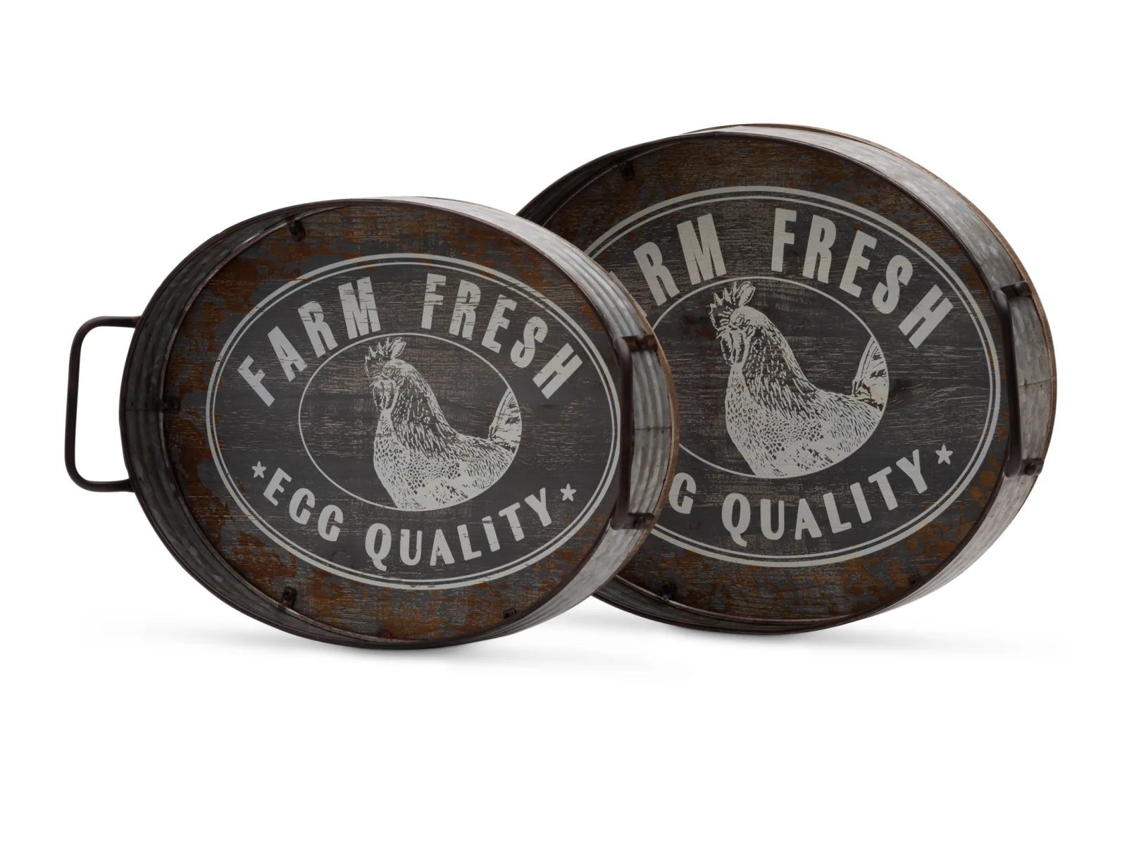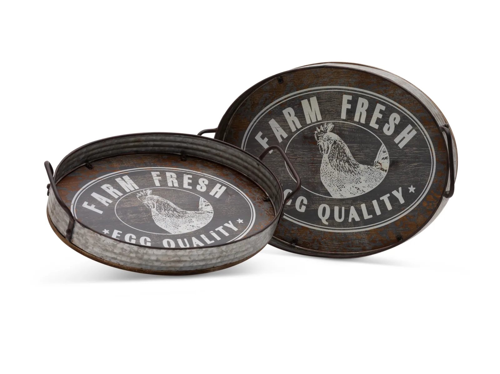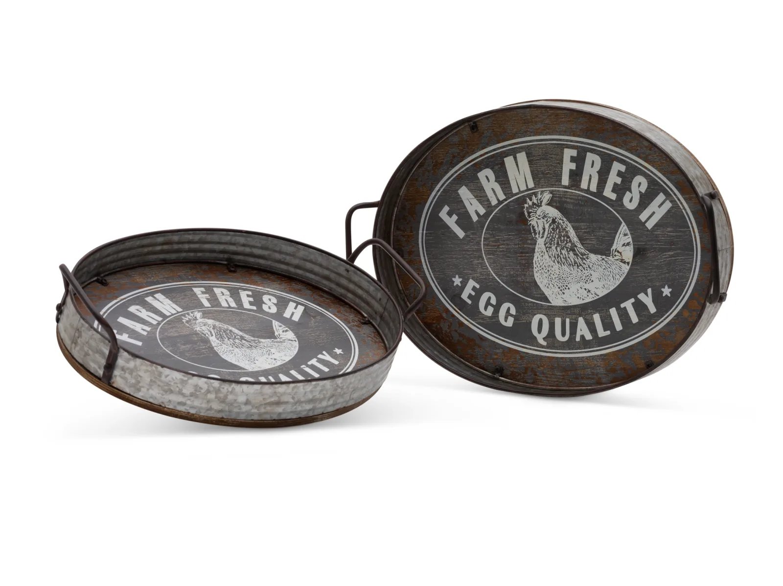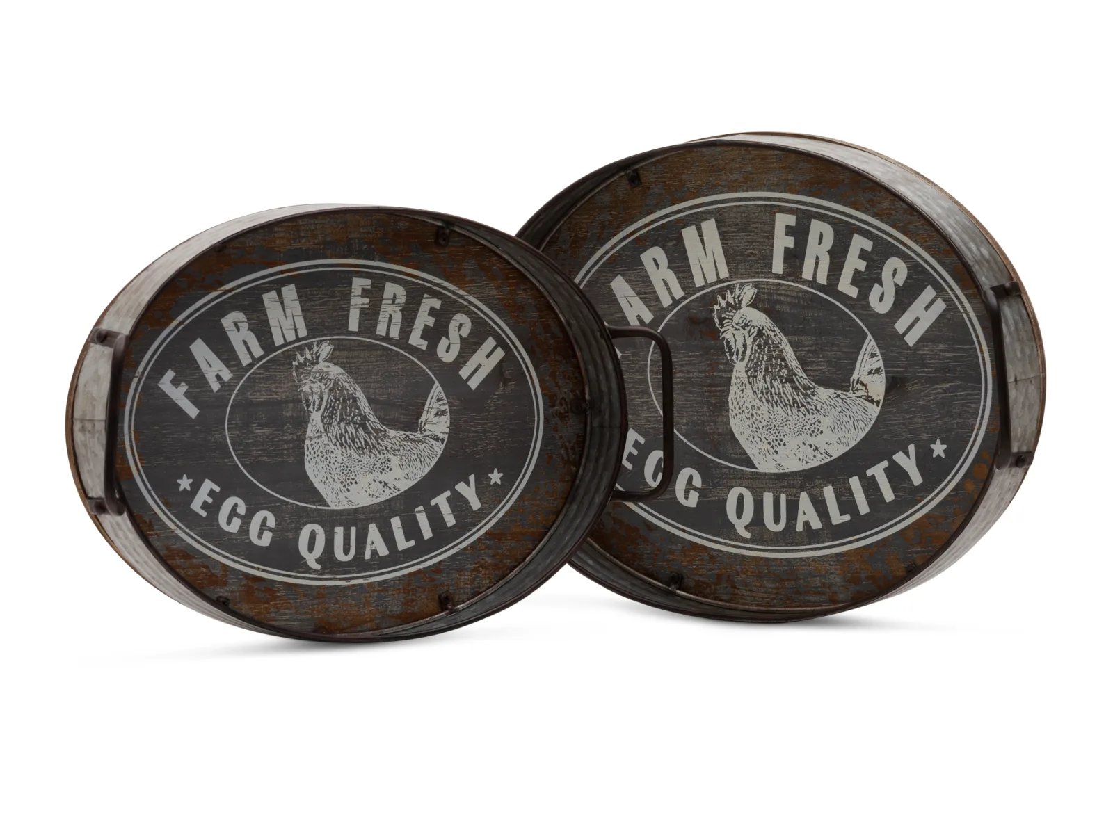 & Free ShippingTake home the Farmhouse Trays and infuse your home with charming farmhouse appeal. Each tray in this beautiful 2 pc. set features vintage metal sides, homespun bar handles, and wooden bases displaying beautiful farm fresh imagery. Add the Farmhouse Trays to your collection today.