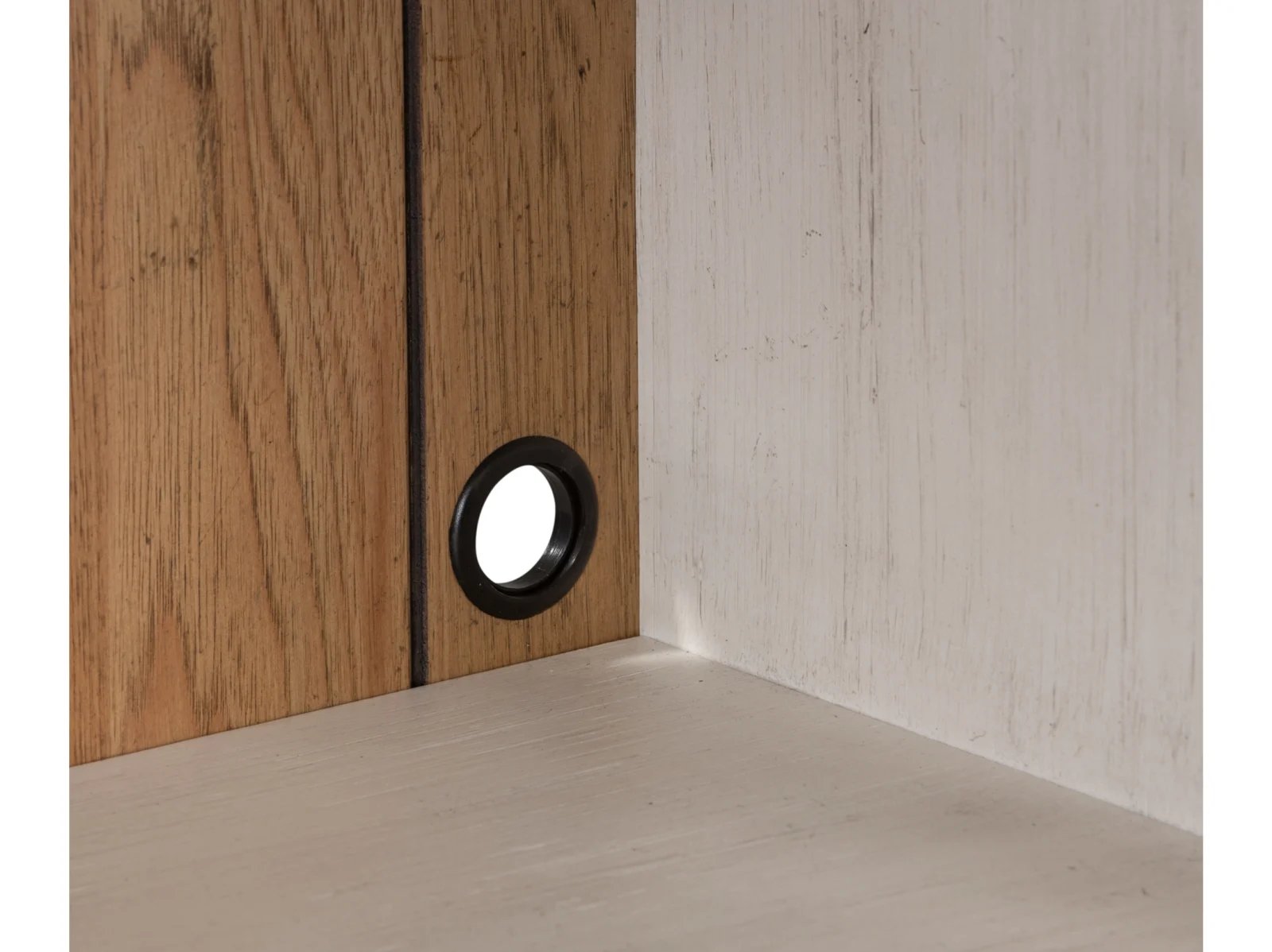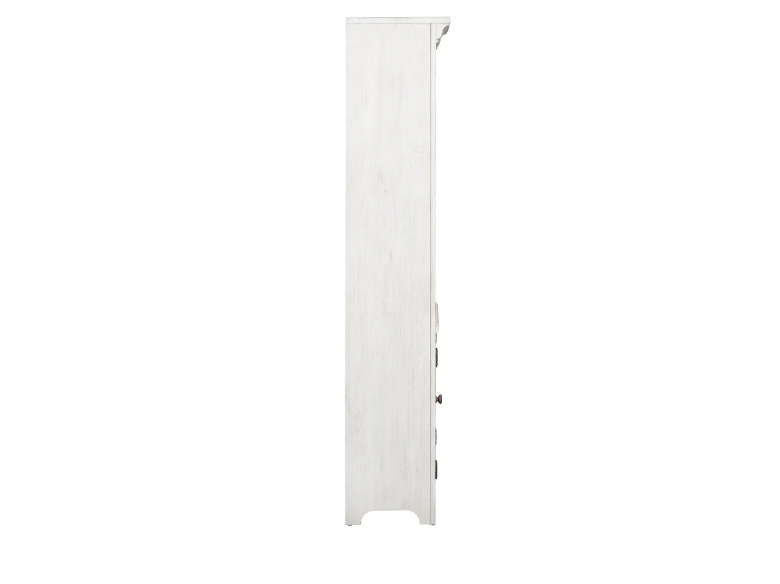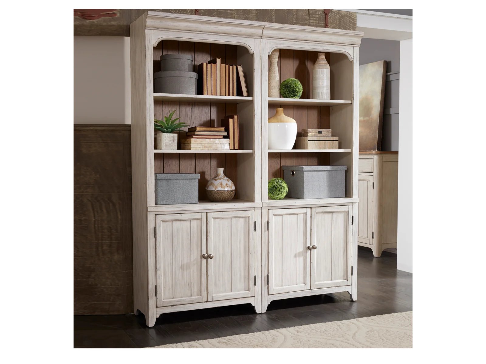 & Free ShippingCreate a classic look with a casual feel using the FarmLand Bookcase. Crafted with pine solids with hickory and pine veneers, this piece features heavy distressing, wire management access, and a planked back panel in the chestnut finish, accented by antique brass knob hardware. Storage abounds with three adjustable shelves, one located behind the planked doors. The antique white finish with chestnut accents results in a look that is compatible with today’s homes.