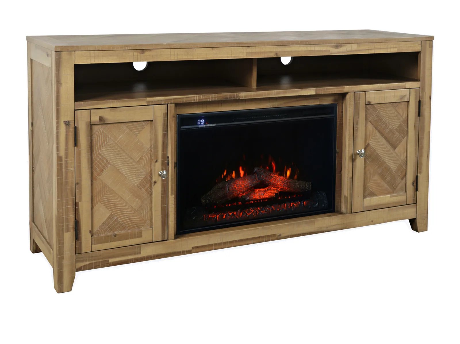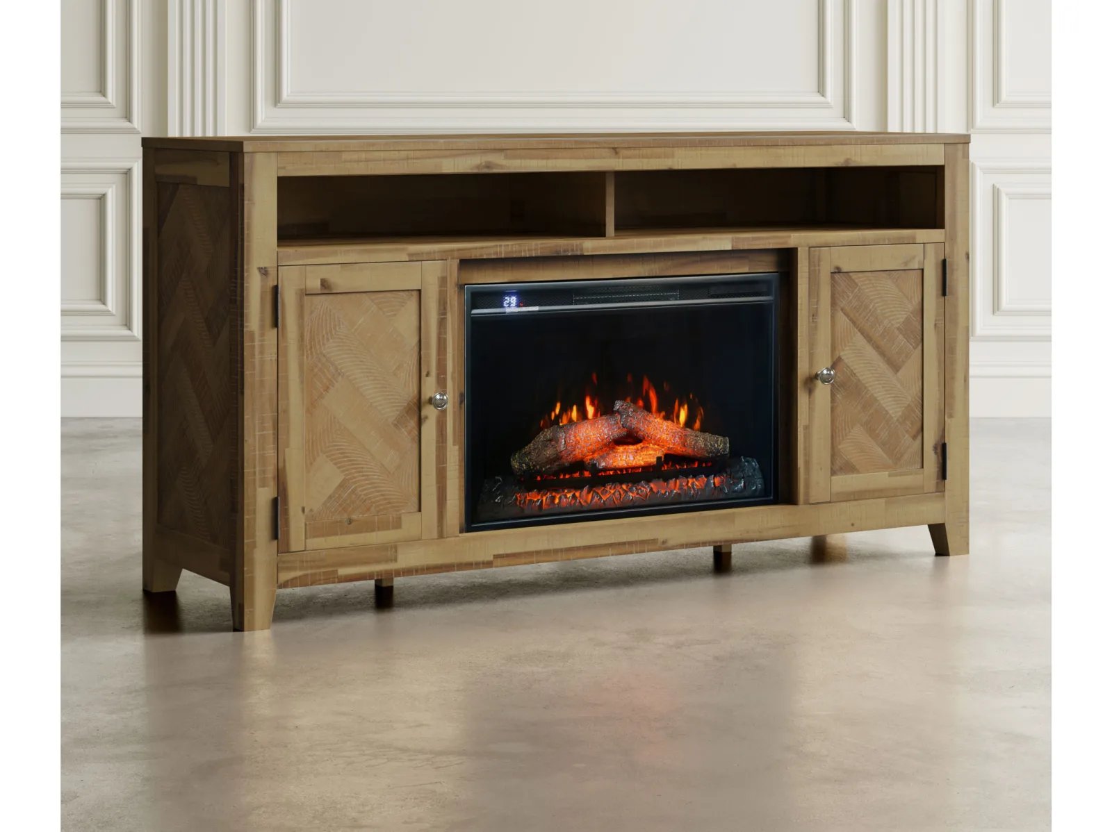 & Free ShippingCreate an inviting living space with the Fenville Electric Fireplace TV Stand, a perfect blend of modern design and cozy functionality. Crafted from acacia wood and veneers, the Fenville’s bold chevron pattern and distressed finish add character and contemporary charm to any room. The electric fireplace features captivating faux wood logs with glowing embers, tempered glass, and real heat to create a warm, inviting ambiance. With ample storage for media essentials, the Fenville Electric Fireplace TV Stand is as practical as it is stylish, making it an ideal centerpiece for your home.