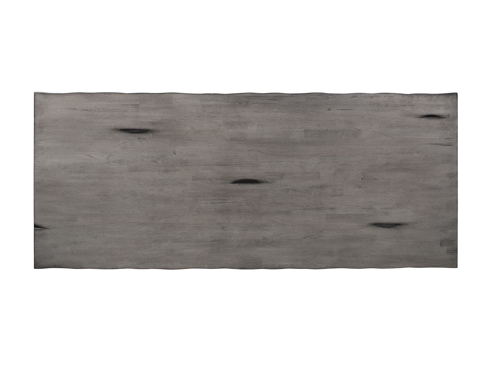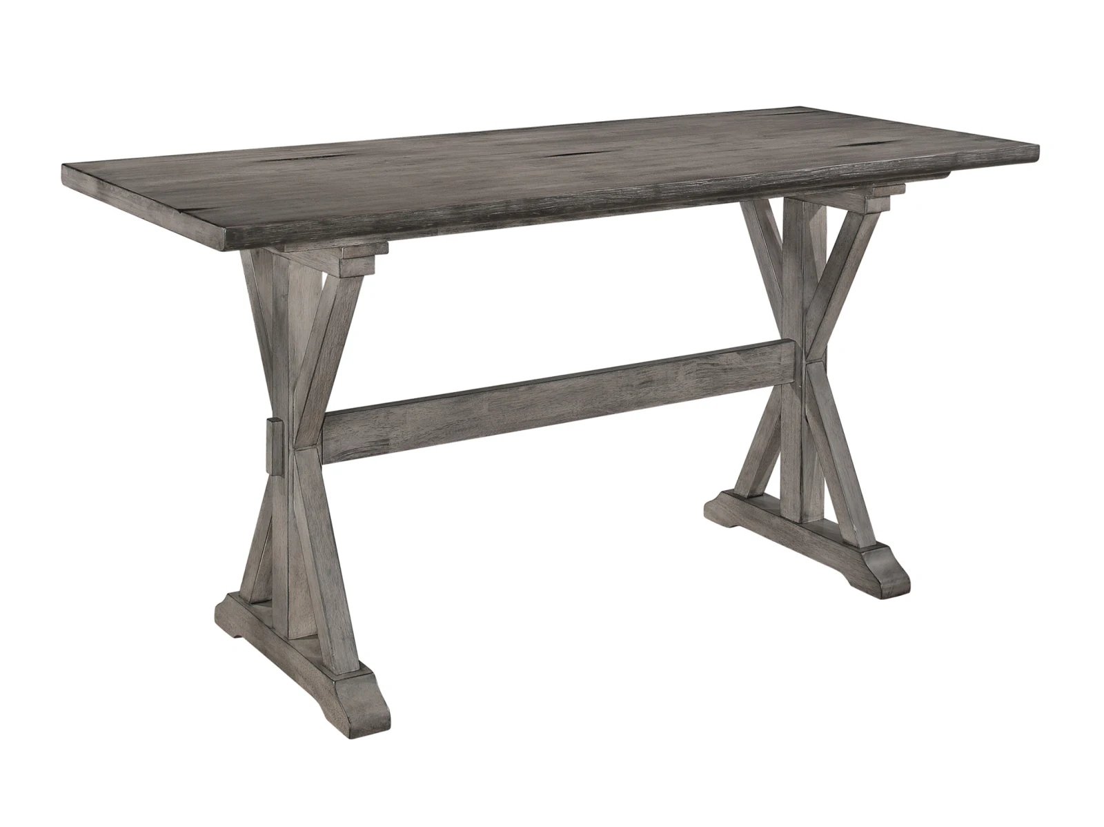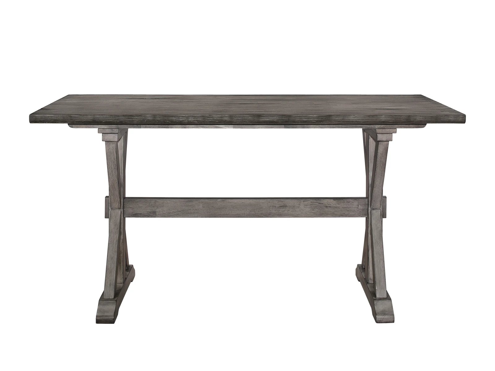 Creating a subtle rustic look is the design of the Fideo Collection. A gray finish graces the solid rubberwood dining group highlighting the veneer. Providing visual interest beyond the classic styling, are the alternate finishes of the accompanying chairs, offered in black sand–though and white sand–through. The chairs also feature a swivel mechanism, lending to ease of motion while seated.
