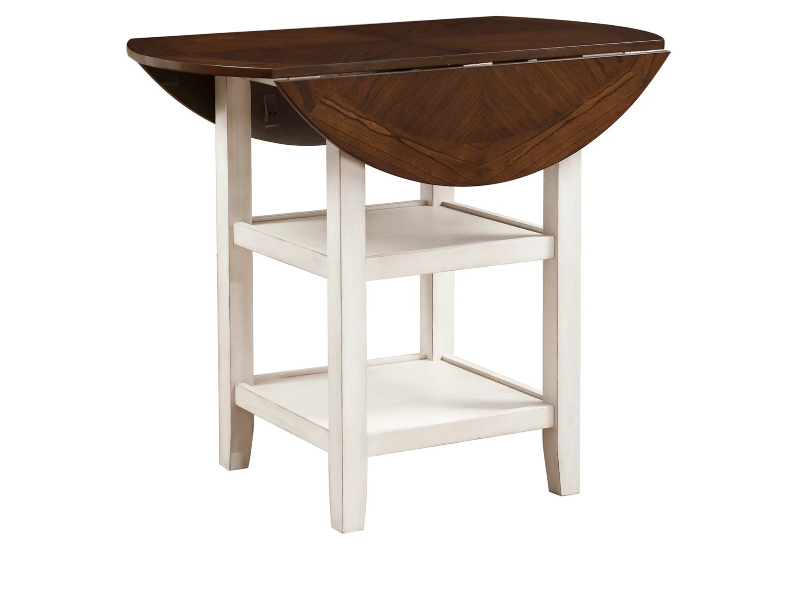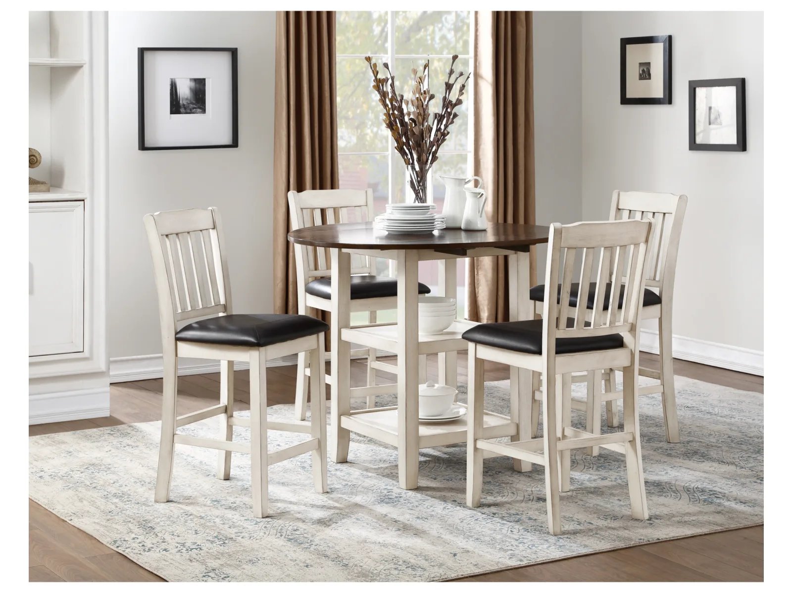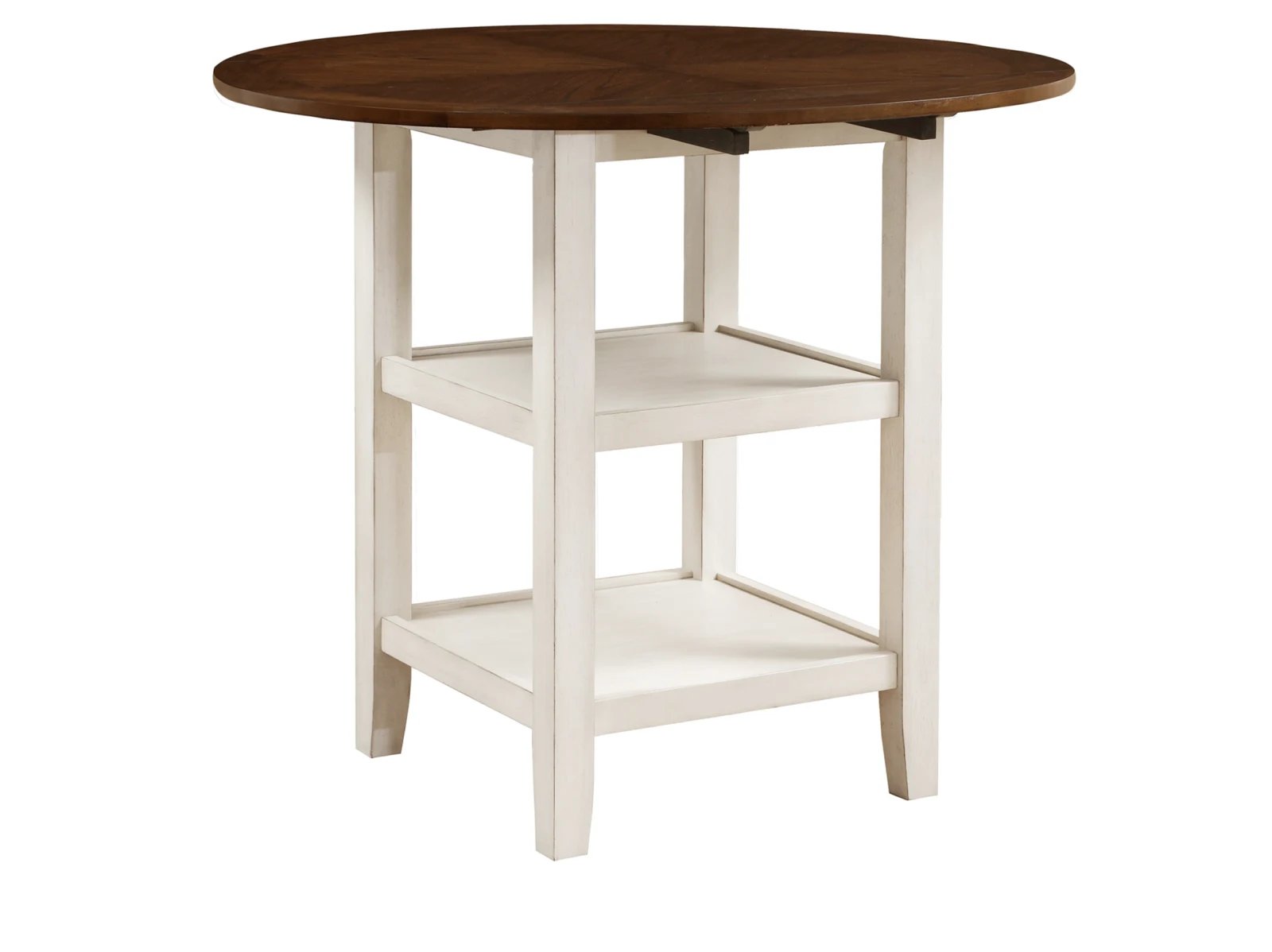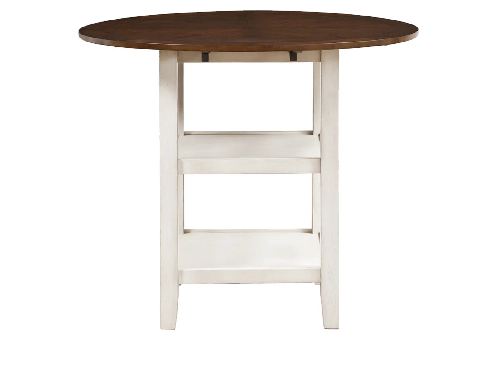 - includes two 9″ drop leaves that change table from 42″ round to 24″ across